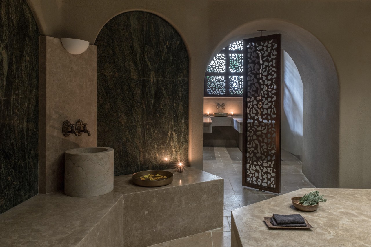 Our Bath House has been inspired by the archaic notion of hammams with their original concept: places of rejuvenation and cleanliness, where purifying the body went hand-in-hand with purifying the soul. The architecture of the space, the energy that flows and the several wellness treatments are created in such a way to motivate you towards self-appreciation, wellbeing and letting the weight of the world off your shoulders.