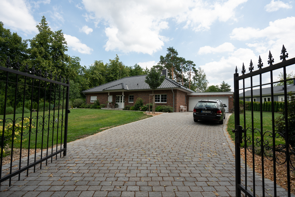 This classic brownstone family house in the south of Berlin evokes notions of classic Americana like few others in this region. Built on the proverbial hill and surrounded by a beautiful, spacious green lawn with a driveway leading up to the double garage, it's easy to forget that this is still Germany - not the American East Coast.