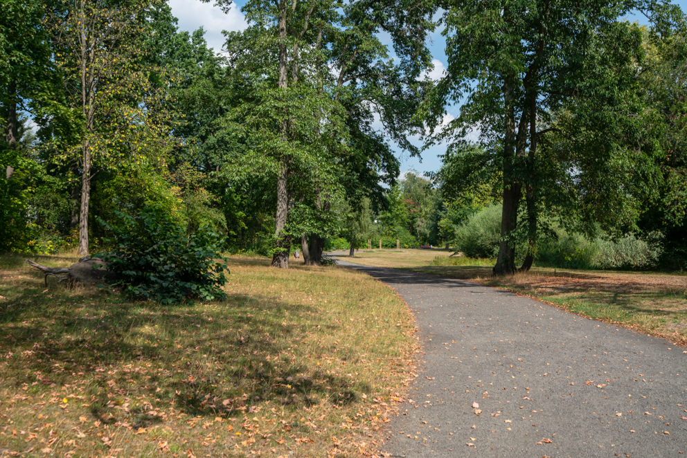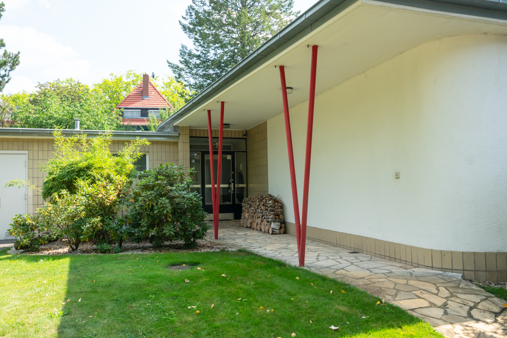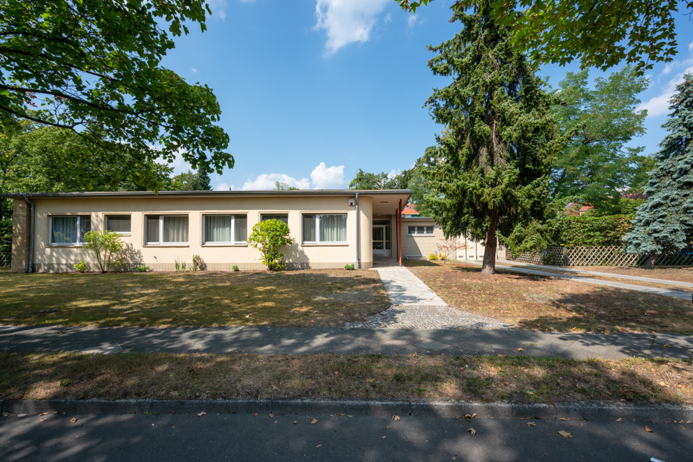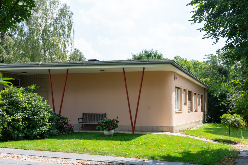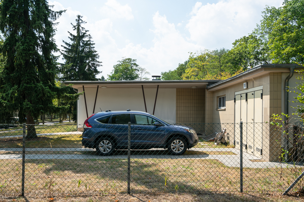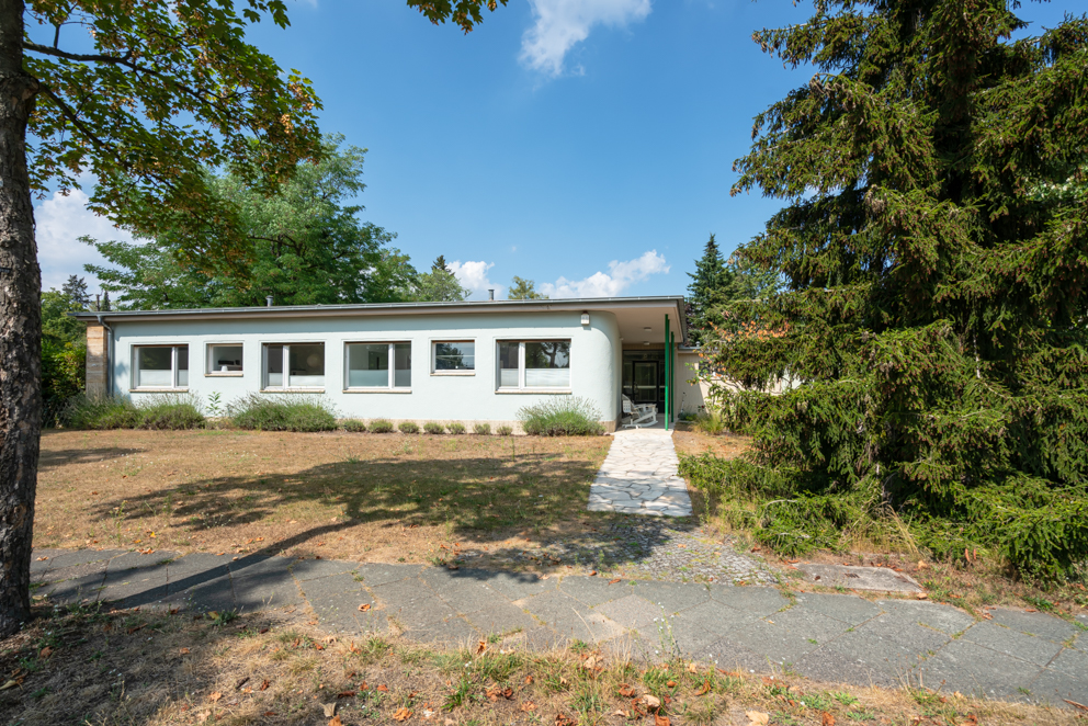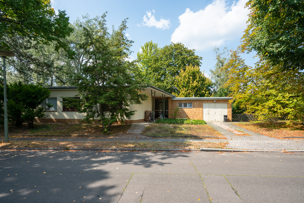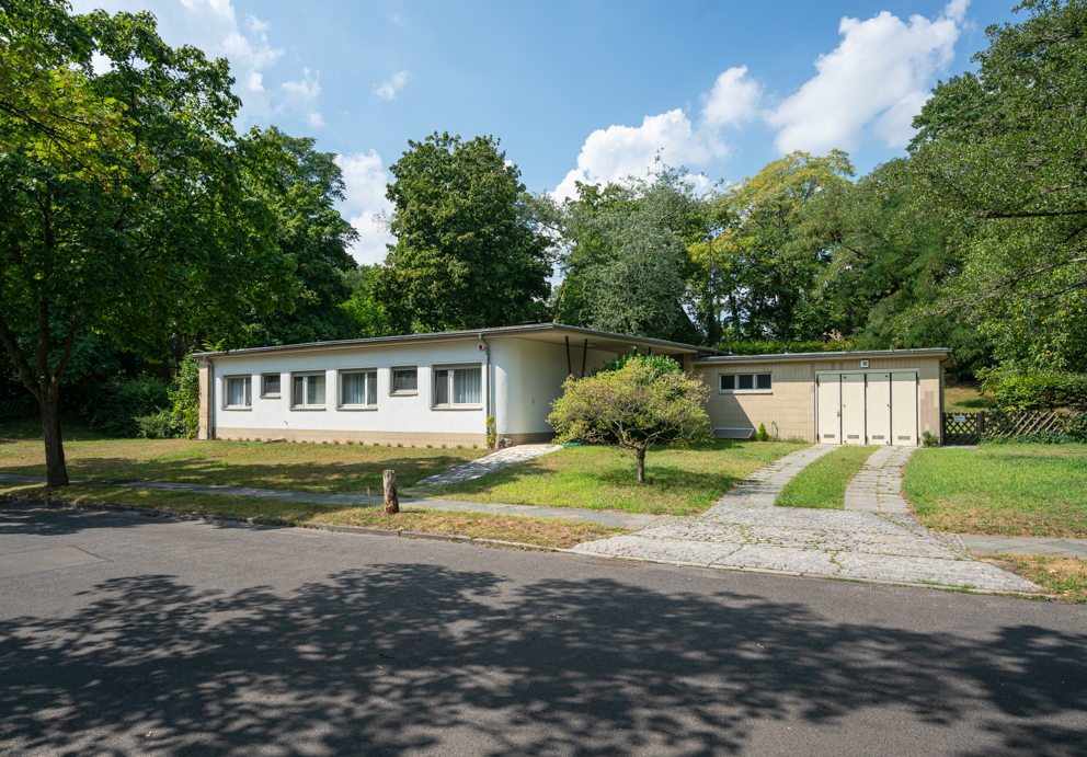 The bungalows built around the park are flat-covered, ground-level type buildings with typical wide driveways and open front gardens designed according to the American model and by the Berlin architect Willy Ehrlichmann.