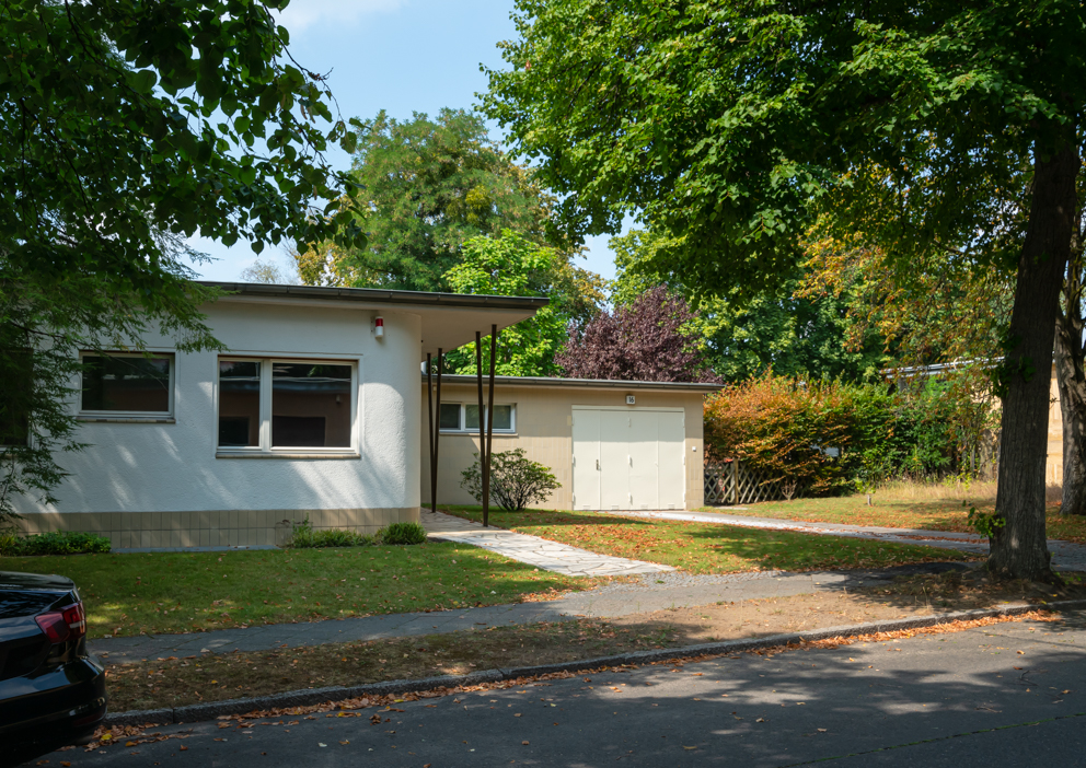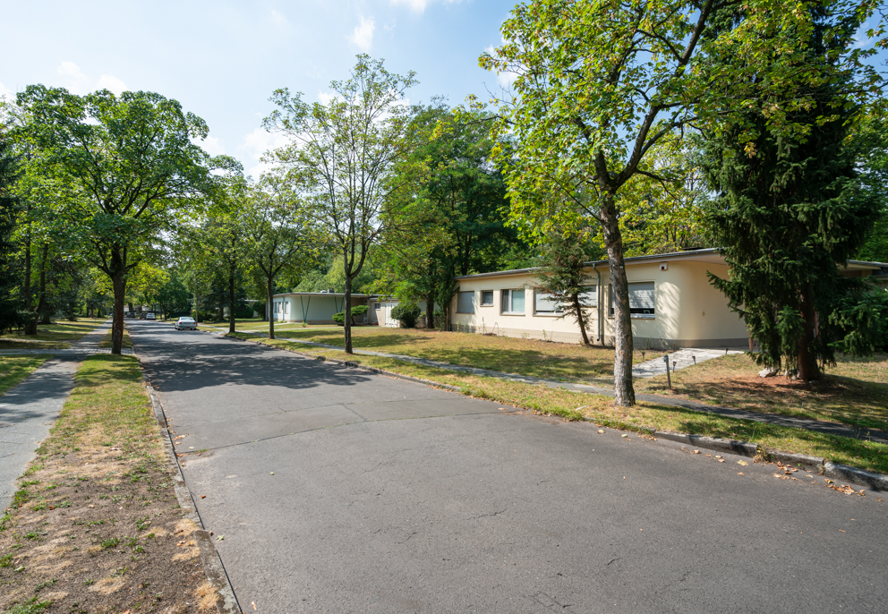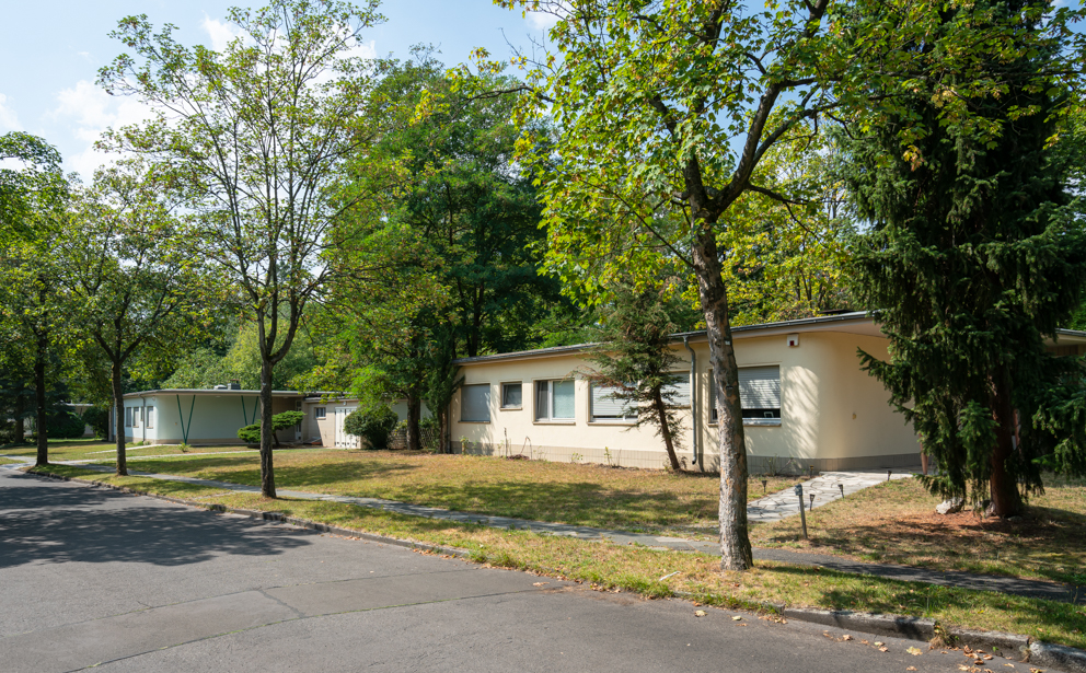 In 1956-57 thirty comfortable single-storey buildings - American bungalow style were built for officers of the American armed forces after the settlement of the Cold War, spatially separated and hierarchically differentiated. After their withdrawal, a large part of the houses became privately owned. Nevertheless, the uniform appearance has been preserved to this day.