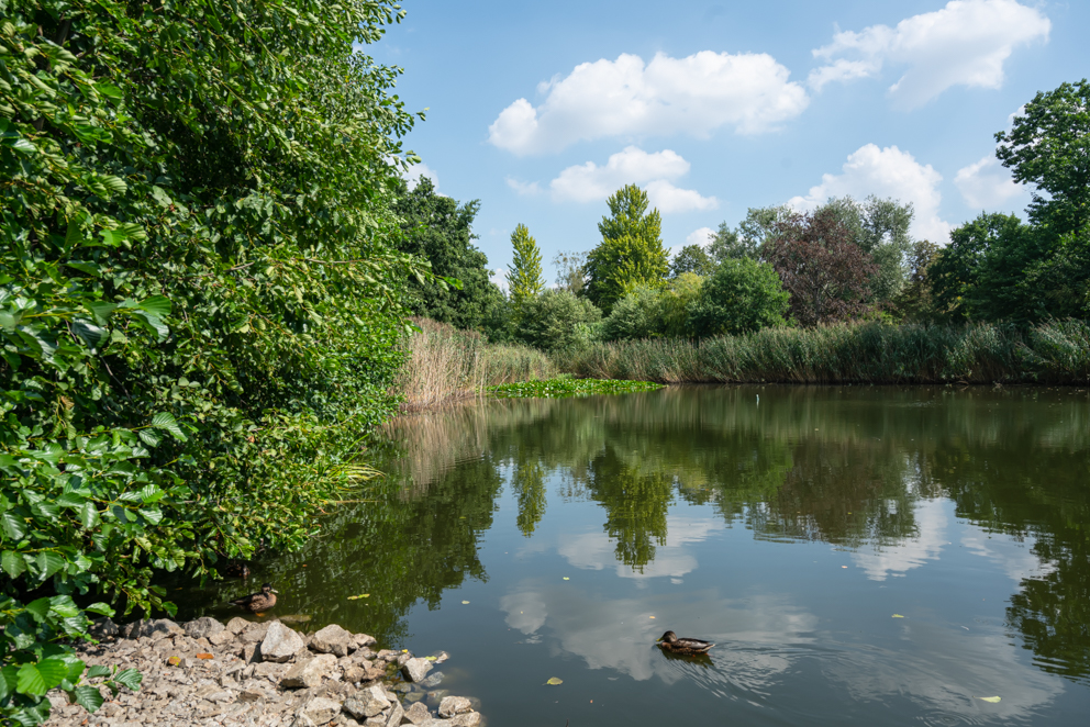Away from the hustle and bustle, South of Berlin, a horseshoe-shaped road hugs the edges of the park Dreipfuhlsiedlung and the Dreiphul lake of 6000 m2.