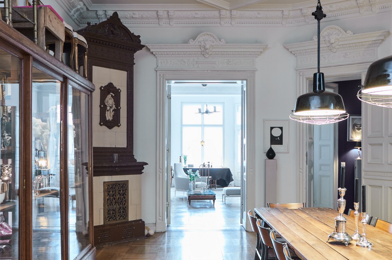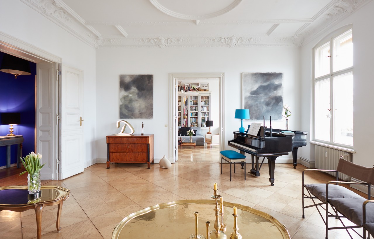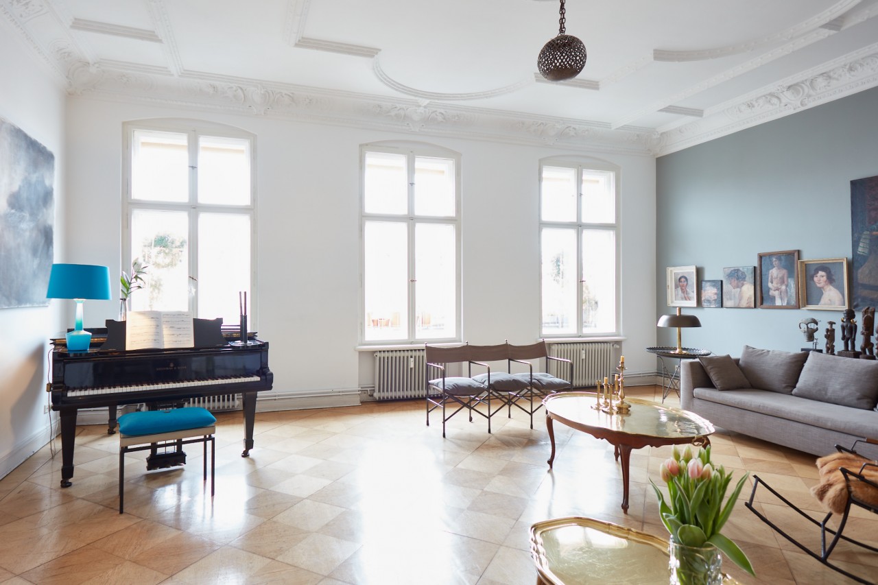 The setting: a Wilhelminian style flat from the 1880s of lavish layout (190sqm) with extraordinary ceiling heights (3.80). Four rooms, kitchen, bathroom, balcony.