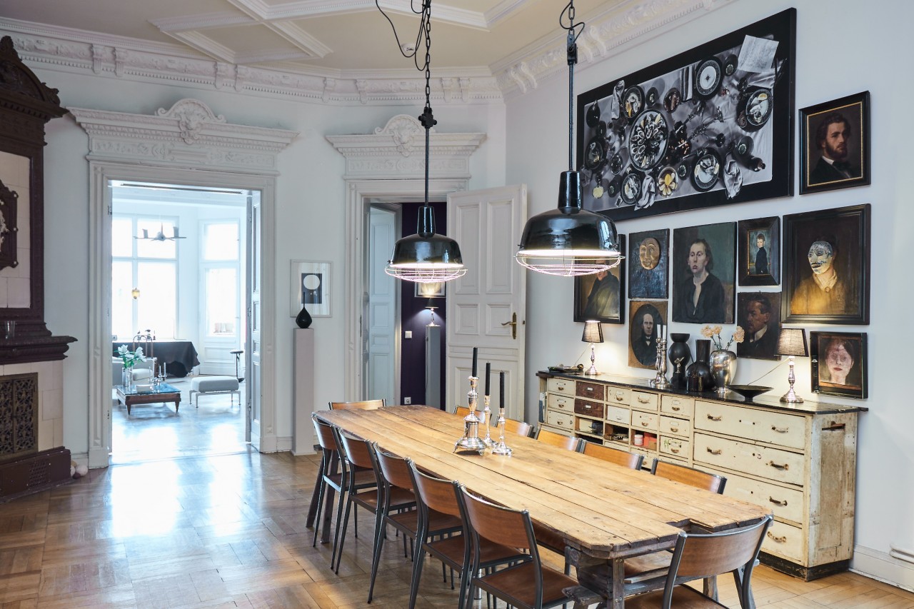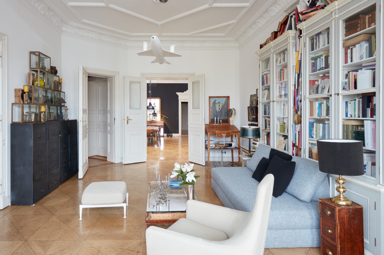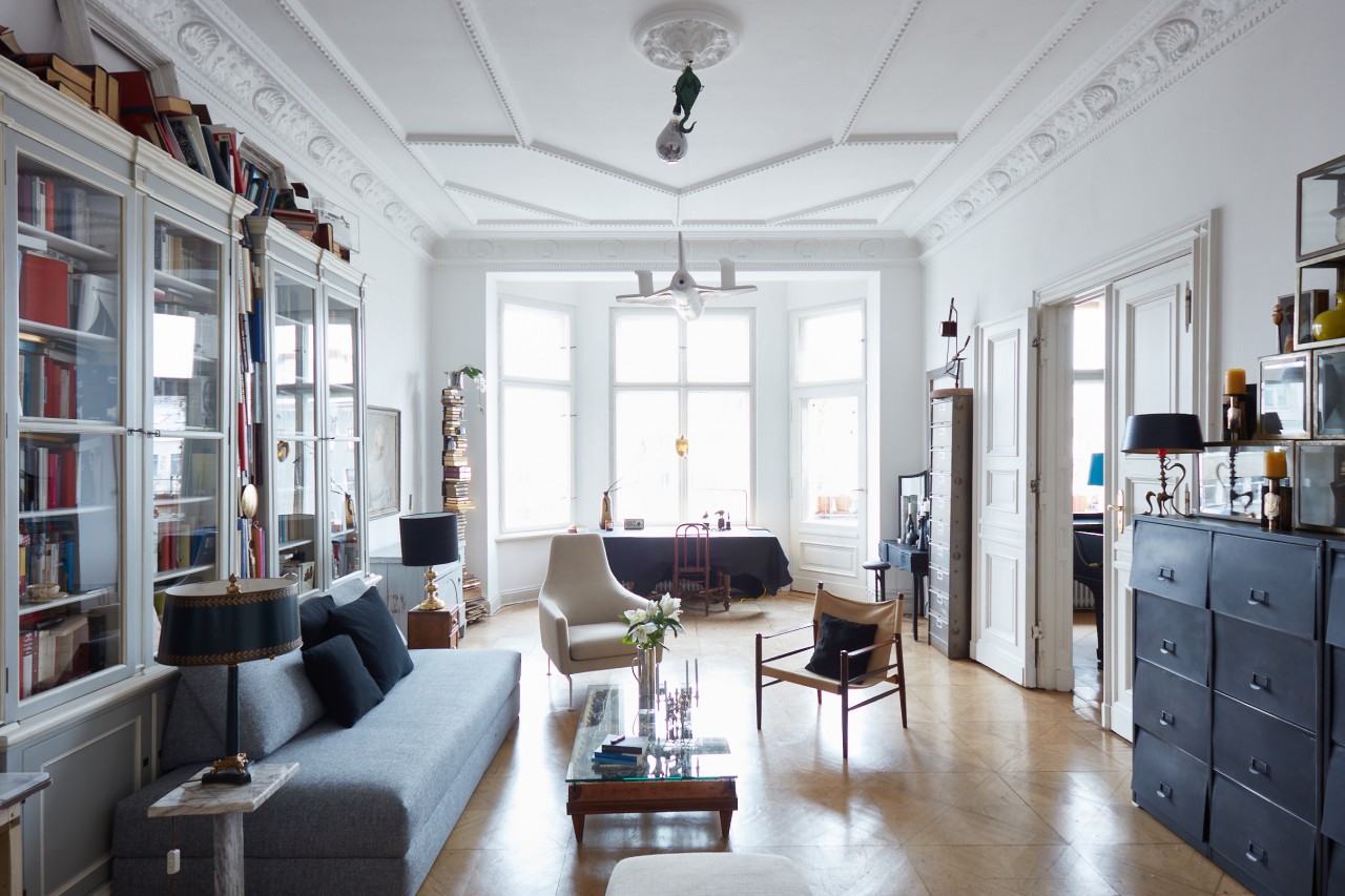 The setting: a Wilhelminian style flat from the 1880s of lavish layout (190sqm) with extraordinary ceiling heights (3.80). Four rooms, kitchen, bathroom, balcony.