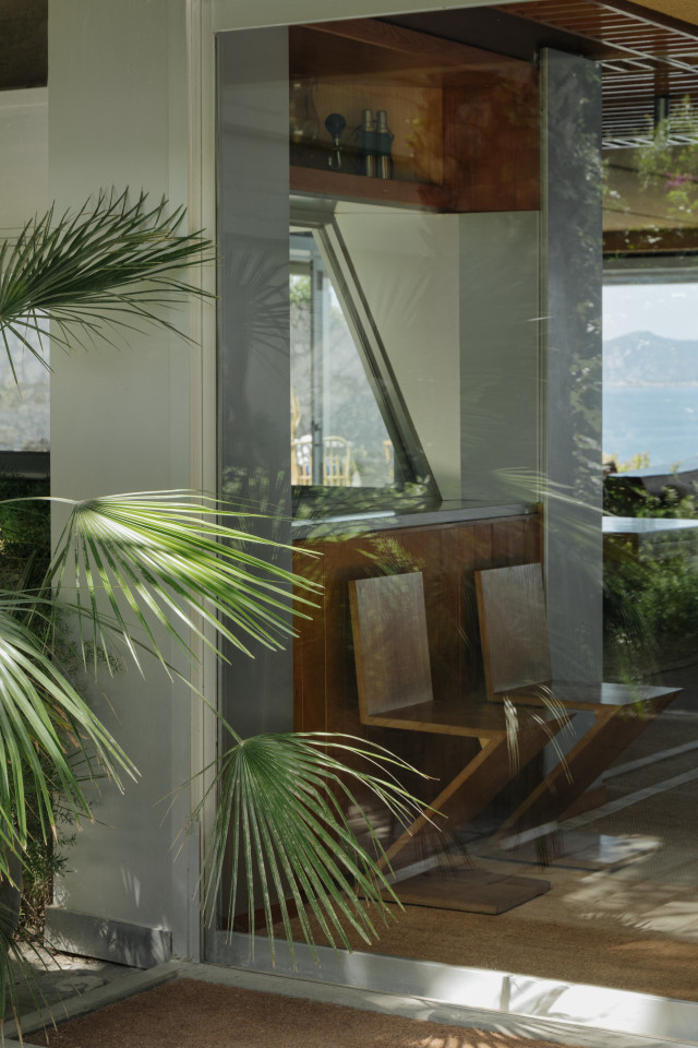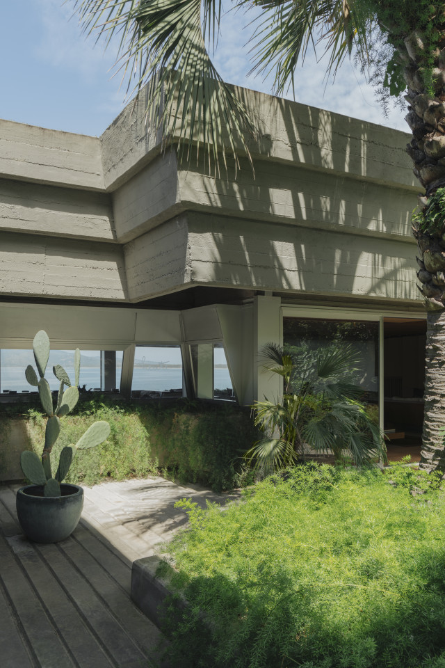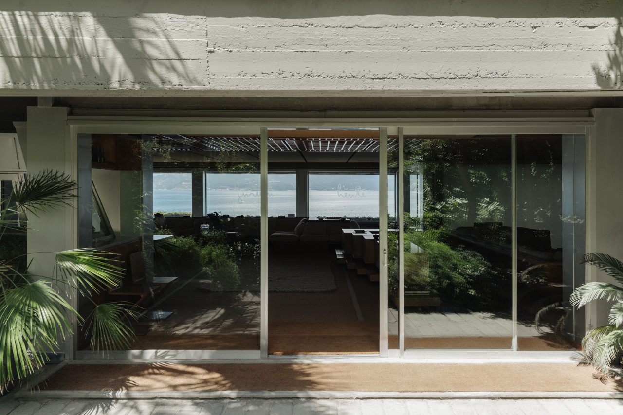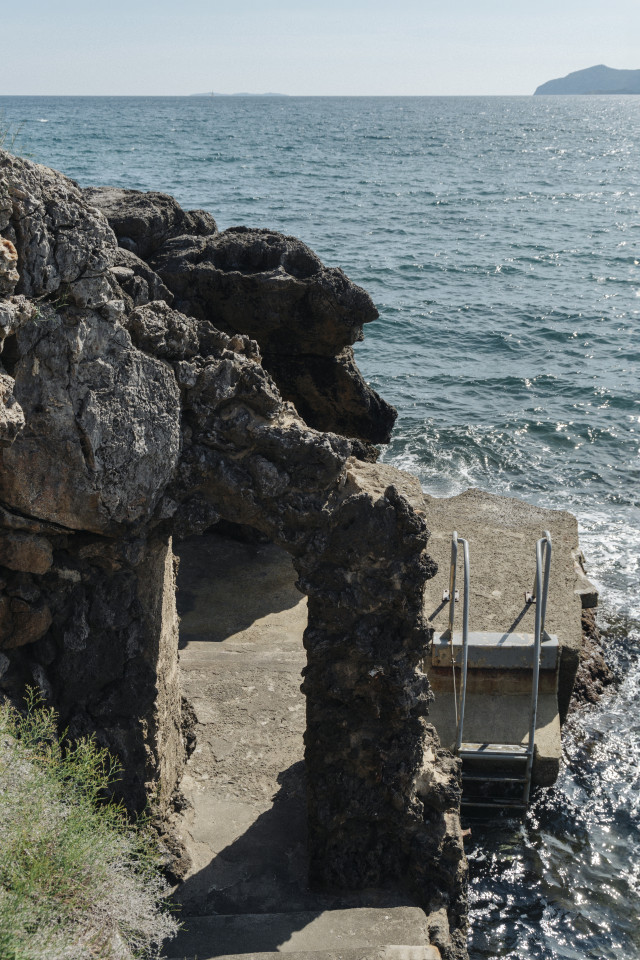 The exterior architecture continues this story—aged plaster façades reveal traces of time and weather, while the surrounding gardens and terraces form a seamless extension of the building’s spatial language. This is a location of sculptural forms and timeless materials, where architecture itself becomes a visual subject.