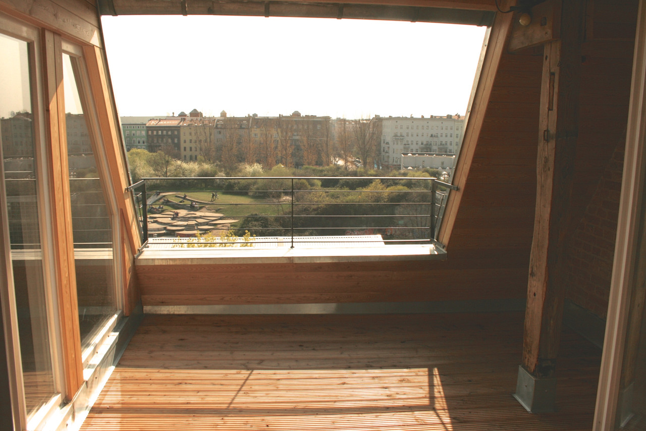 The loft is located on the sunny side of Görlitzer Park. Since it is on the top floor it gives you a spectacular view over the city.