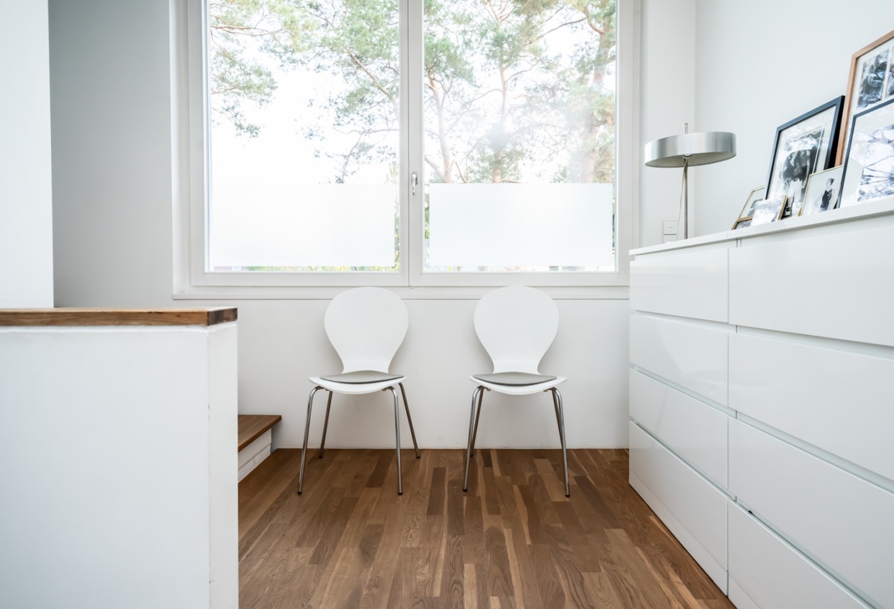 With 330m2, three floors and five rooms, the main area is on the ground floor whilst the floor above has two more bedrooms and a large bathroom. In addition, a day-lit basement and an also very bright garage, or hobby room lies adjacent to the house, serving as an ideal base for styling and make-up.