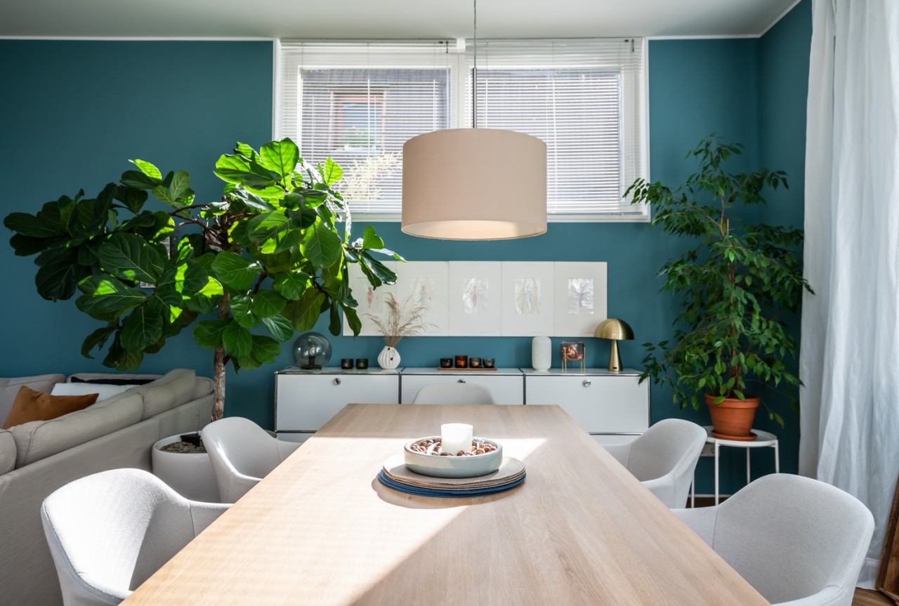 The main areas merge smoothly and the open kitchen can be perfectly photographed and filmed from two sides. The furnishings are a mix of nordic design classics with a bohemian flair that can be easily arranged to fit all sorts of shoots and the floor-to-ceiling sliding patio doors to the garden allow for targeted lighting.