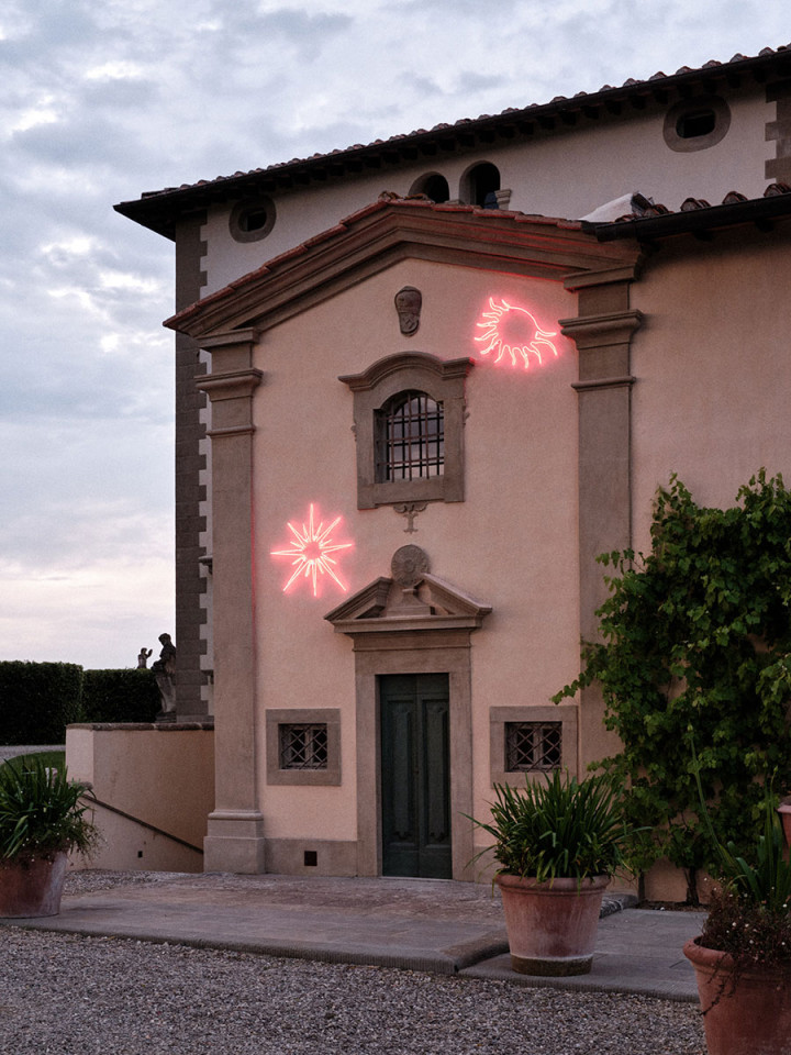 Our location is an old Palazzo on the hills of Florence overlooking the duomo and surrounded by olive grove and cypresses. The palazzo has been entirely restored with exceptional frescoes on the wall in addition to a contemporary art collection. 13 bedrooms in total, a spectacular swimming pool, a luxurious garden designed by French architect Louis Benech. A true Italian dream.