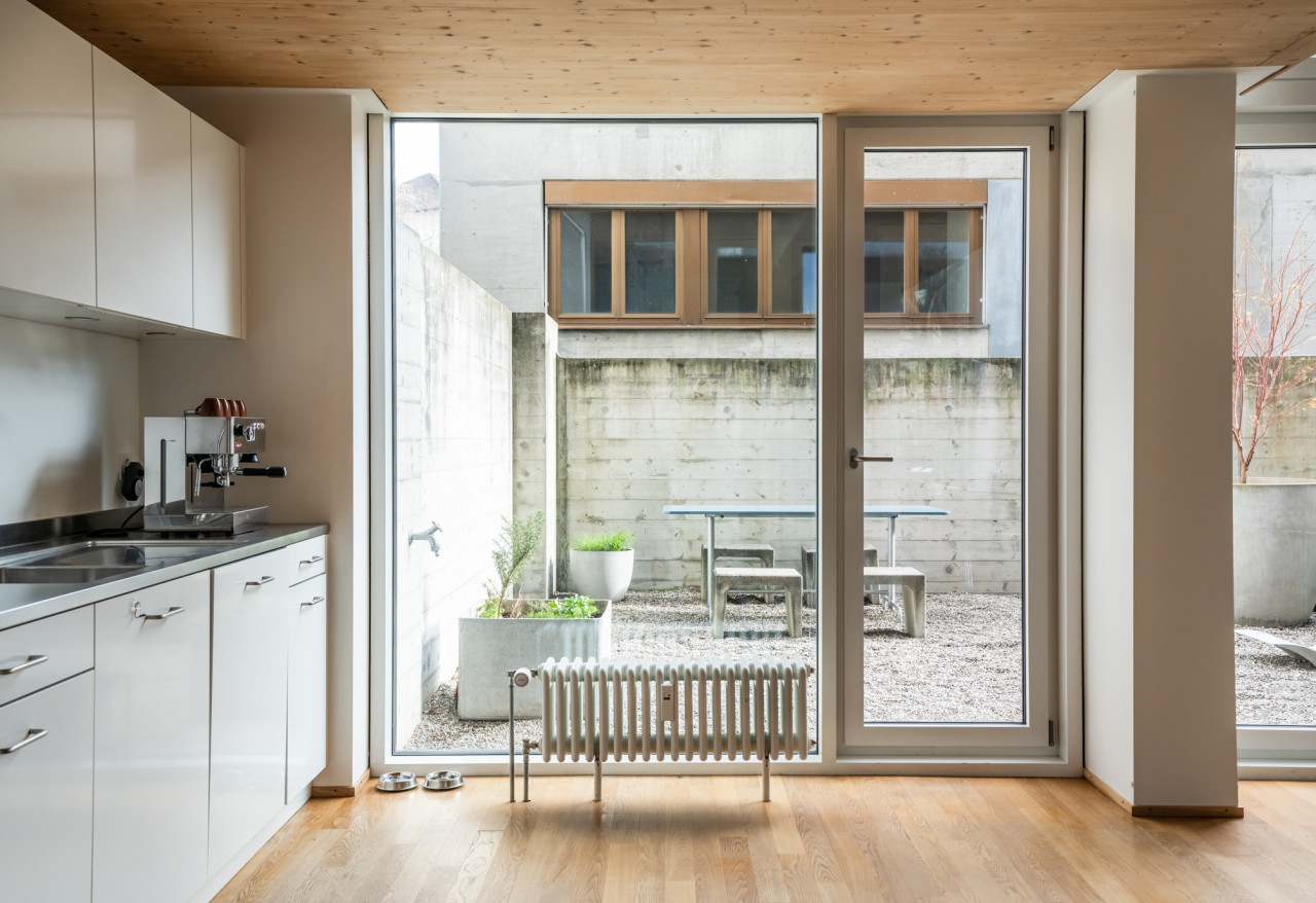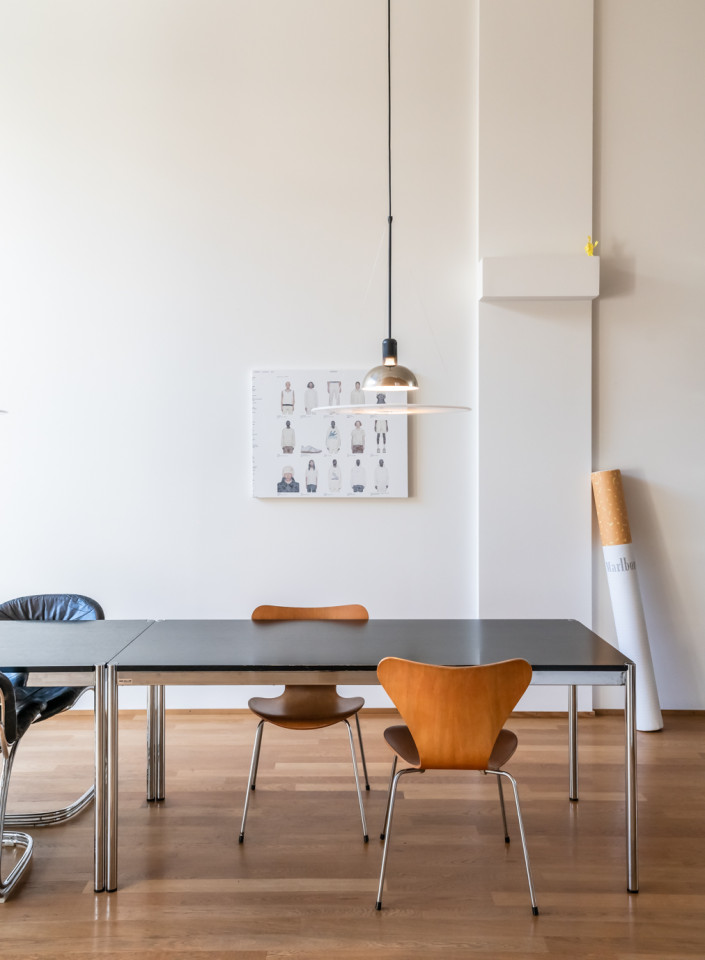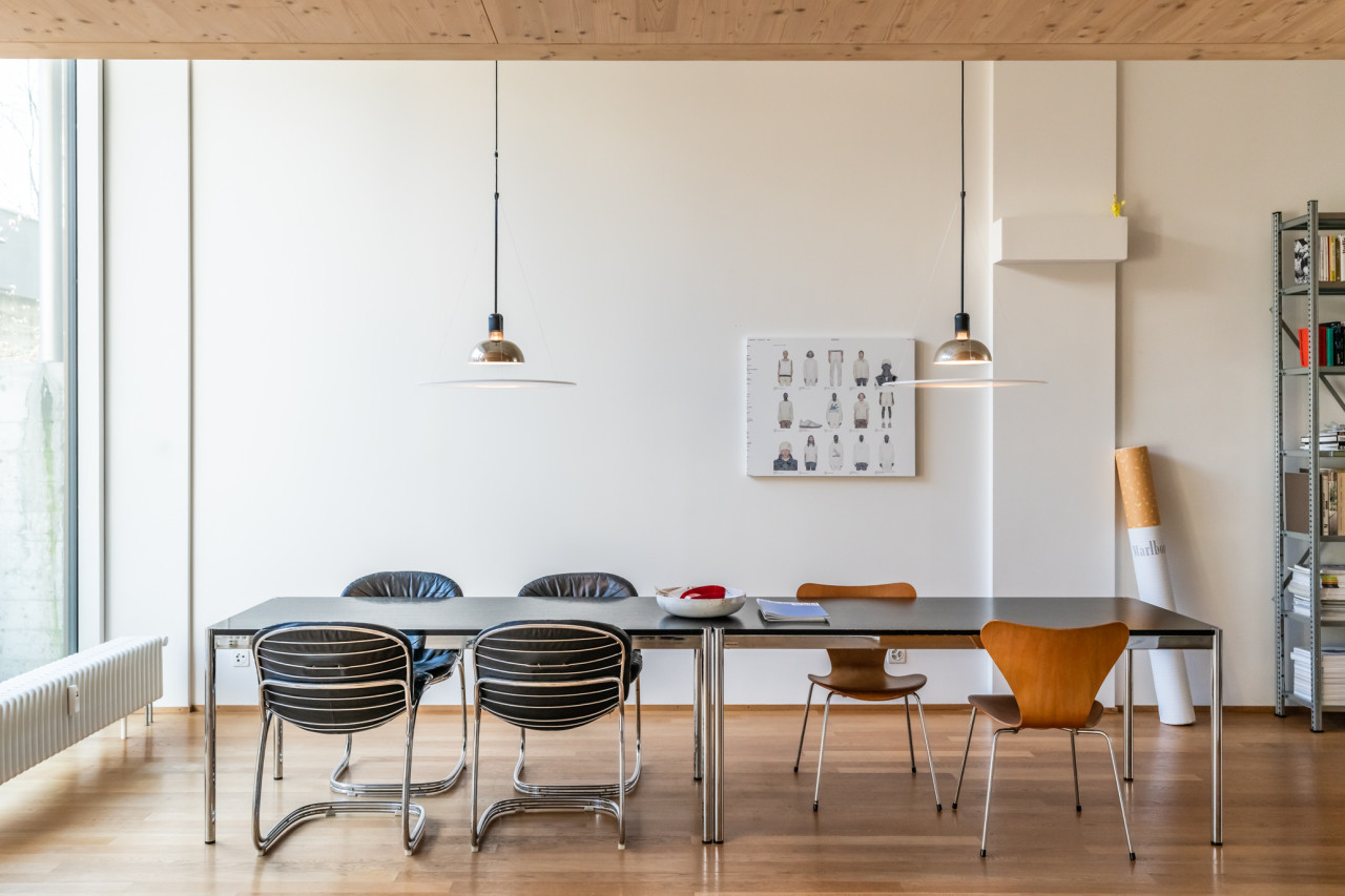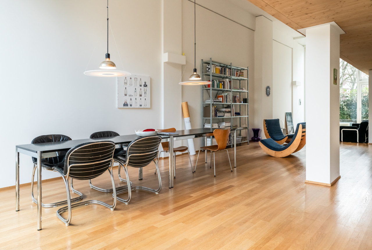 This loft in Basel, designed by Herzog & de Meuron, covers 140 sqm and features high ceilings, big windows, and an open layout with a courtyard garden and private entrance. Furnished with vintage pieces and contemporary art, it's in the Wettstein district, close to Messe Basel and the Rhine. A great choice for hosting events, photoshoots, or film projects, its location combines the area's cultural atmosphere with a unique setting.