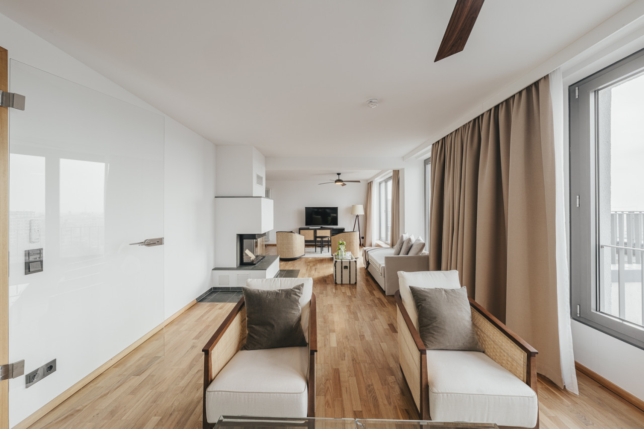 Located just a 3-minute walk from Potsdamer Platz, this penthouse provides unparalleled convenience while offering a serene retreat above the bustling city.