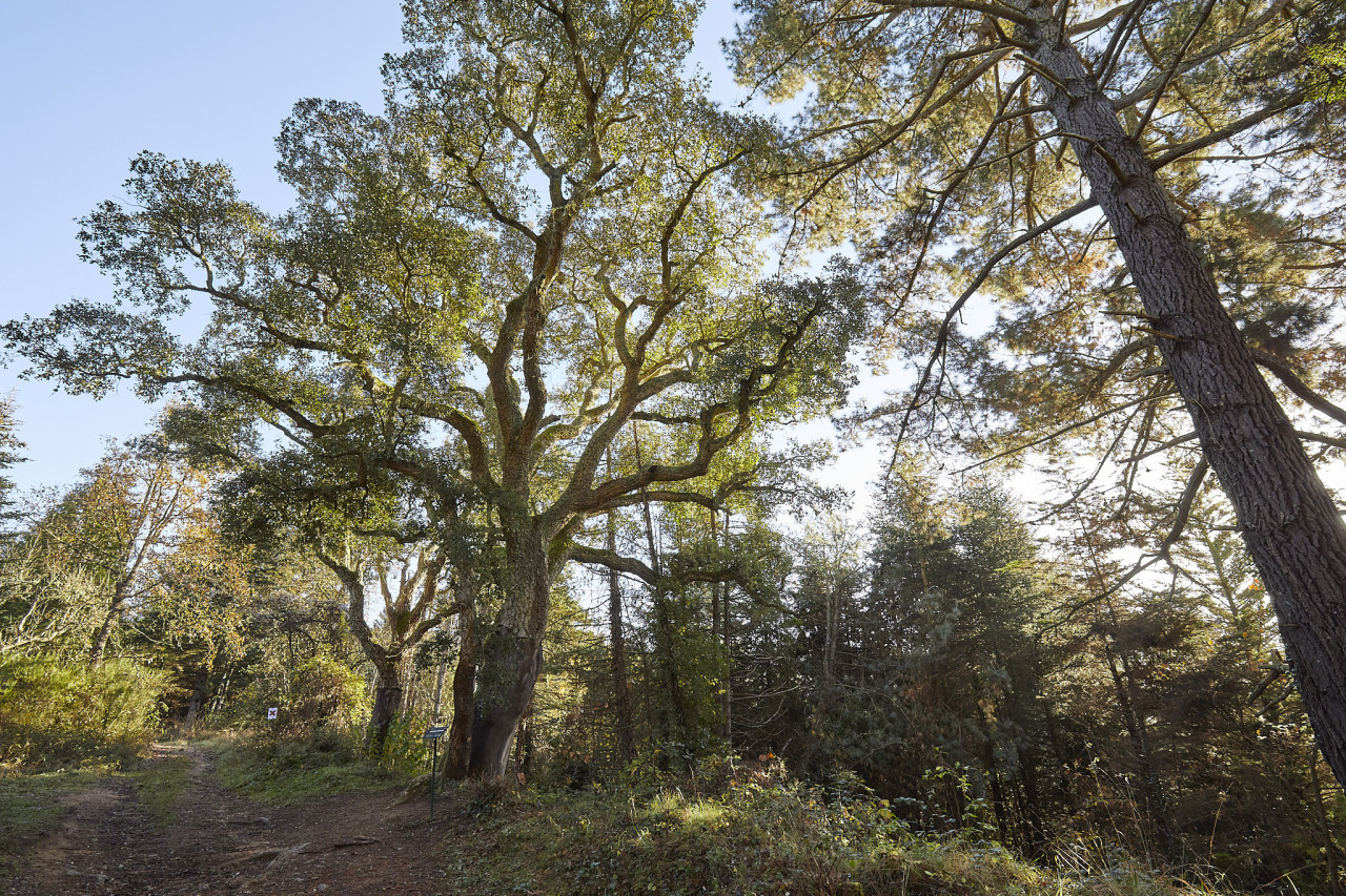 Bosque J is an atmospheric woodland located in a serene natural setting, characterised by tall, slender pine trunks, a dense forest floor, winding paths, and soft, filtered sunlight. The landscape offers a rich mix of textures — from moss-covered roots and fallen leaves to undergrowth, ferns, and subtle slopes that create depth and visual interest in every direction.