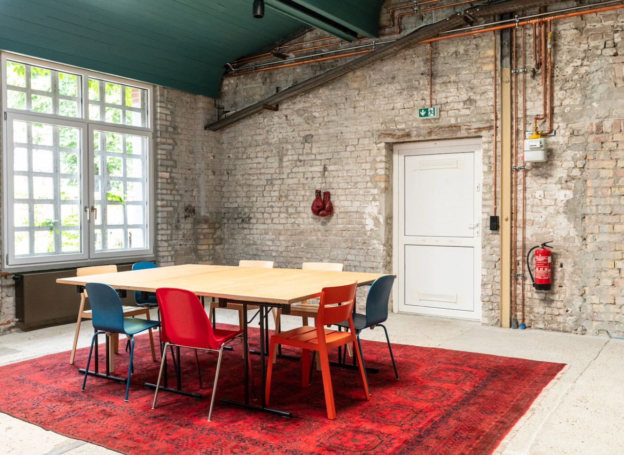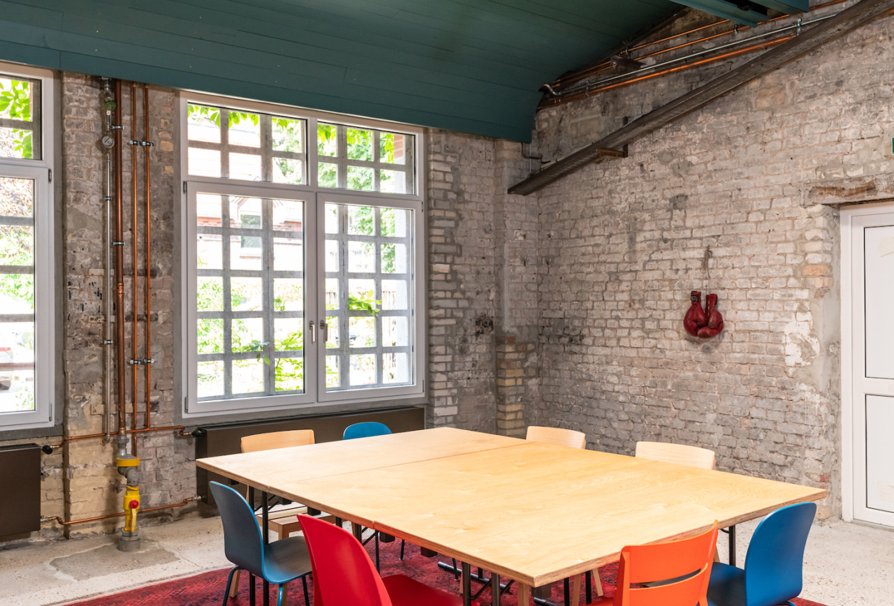 This vibrant event space has 230 square meters of indoor and 100 square meters of outdoor space. With plenty of vivid colours an brick walls, It offers beautiful rooms with plenty of space for your ideas and individual event formats - Ideal for corporate events, offsite workshops and business meetings, coachings, shootings or network lunches and dinners!