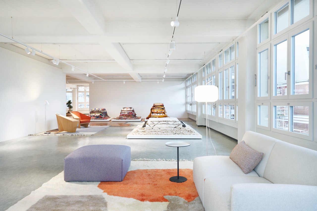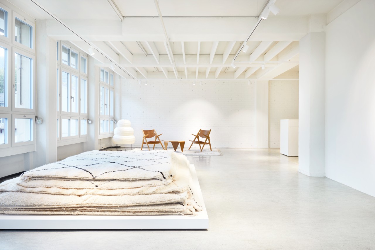 This space is the number one brand for original, handmade Berber carpets from Morocco. In a former embroidery building from the 1950s, we have nested in a light-flooded 400m2 industrial building. The location can be rented for shoots, events or exhibitions.
