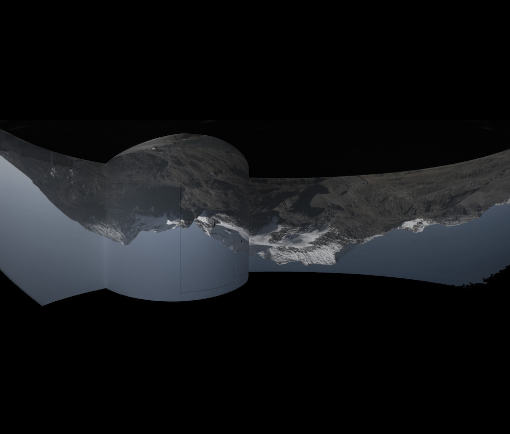 The "black chamber" on the tower of the silo facility of the maintenance base is a windowless room, light falls through a hole in the wall onto the concave inner wall and thus reflects 'the image' of the landscape - an unexpected way of viewing the landscape. The original form of the camera obscura works without a lens. Alone a hole in the housing of a dark room creates an image of the outside world on the inner wall. In doing so, its angle of view captures towards 180° in all directions, a kind of 'optical blank'. The situation on the Bernina Pass is a phenomenal constellation of optical primal method, arctic landscape and the function of the base in the context of the seasons.