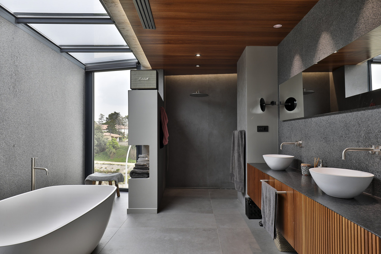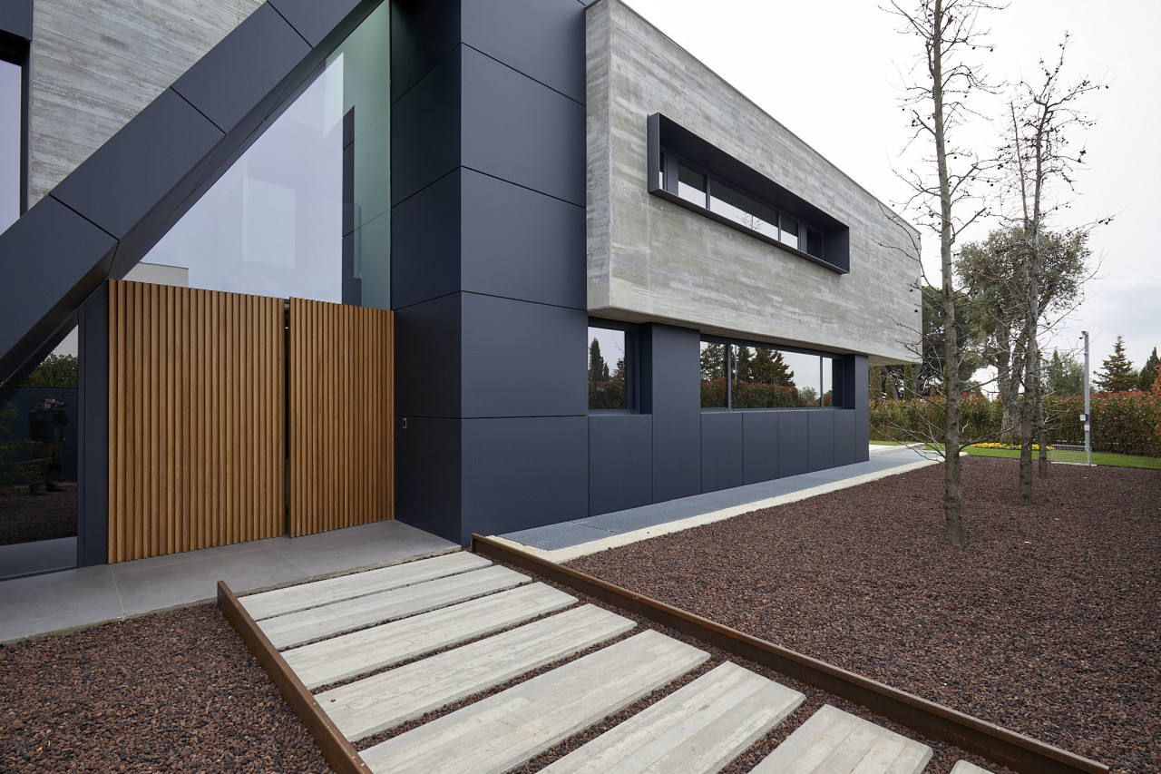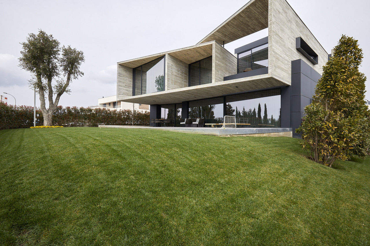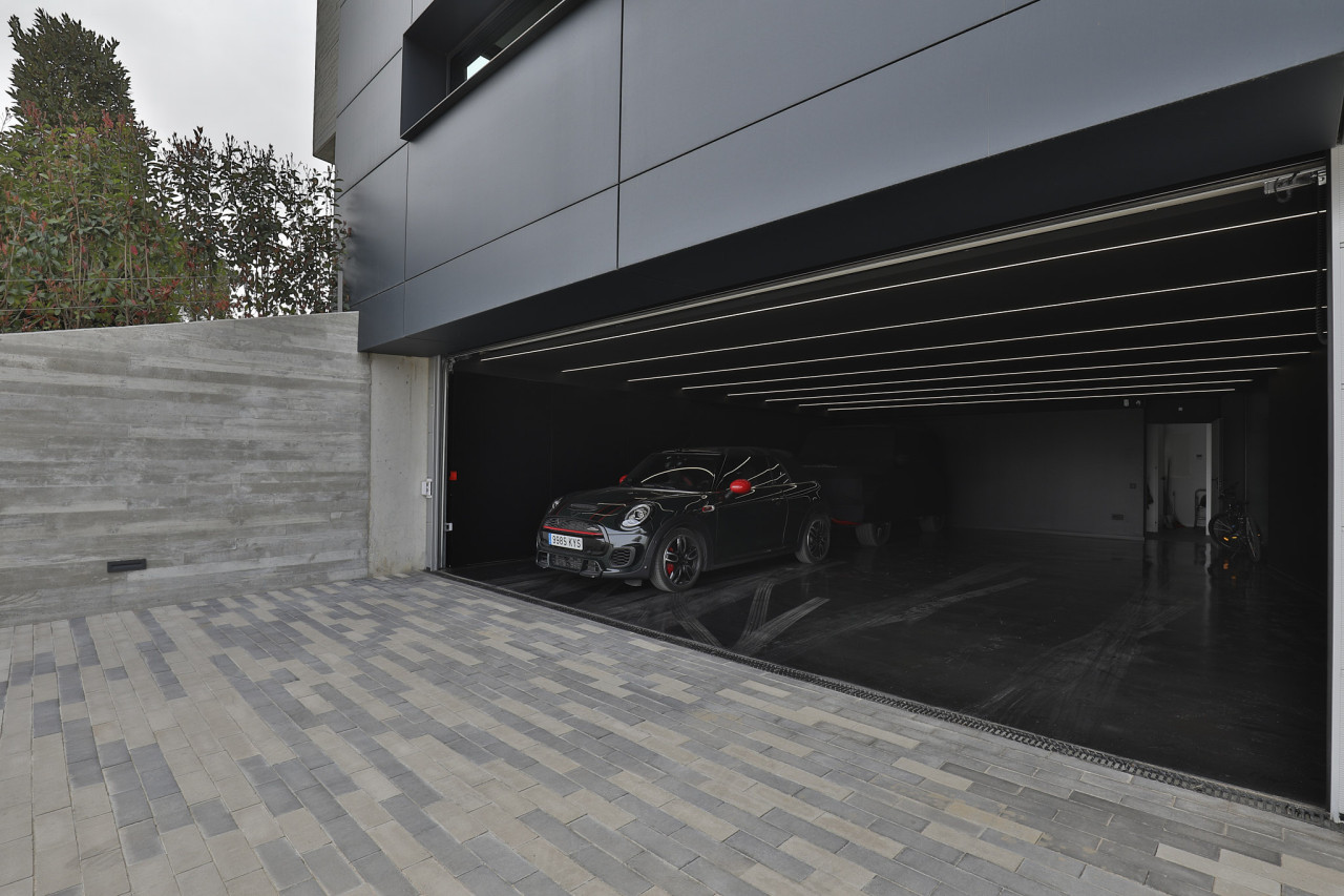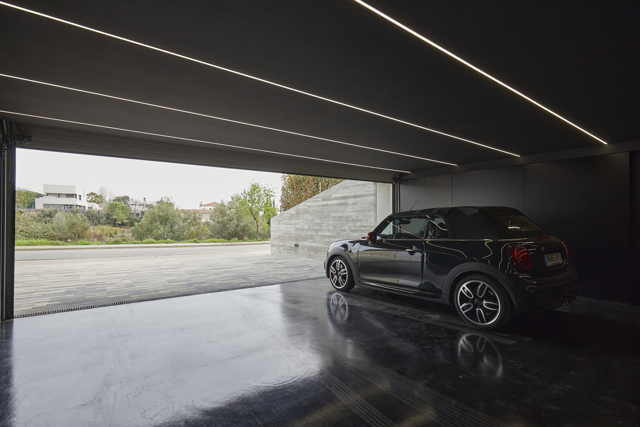 Casa Antonio is a striking modern house in Terrassa, combining brutalist concrete forms with warm contemporary interiors. Floor-to-ceiling glazing, slatted wood details and clean architectural lines create a premium setting ideal for film, photography and commercial production. The home features a sleek minimalist kitchen, expansive living area with integrated lighting, and a sculptural indoor pool surrounded by raw concrete textures. A dramatic garage with LED strip lighting adds a cinematic environment perfect for automotive or editorial shoots.