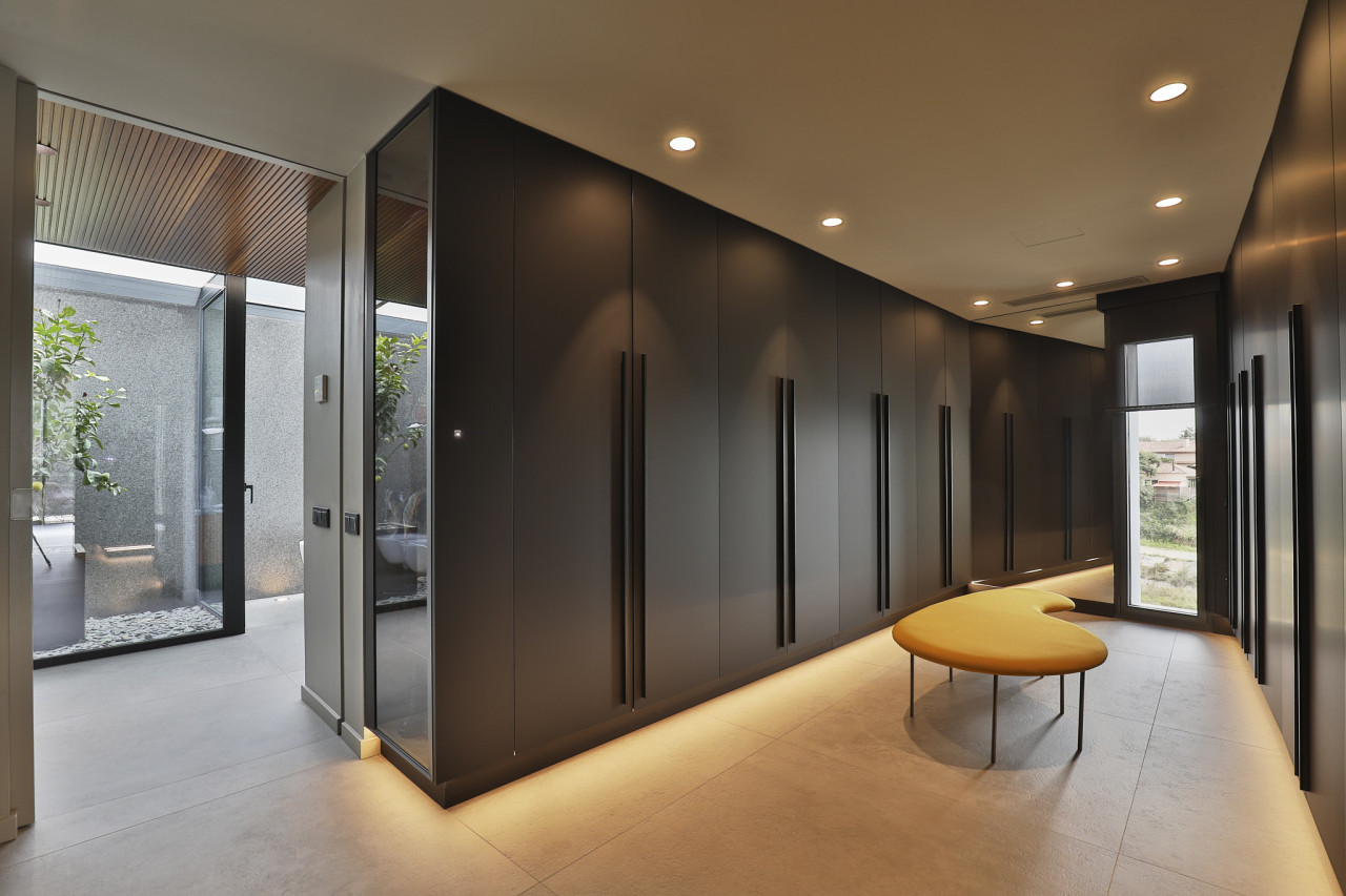 The master suite offers a floating bed design, onyx-lit headboard and direct terrace access, while additional rooms provide colourful lounges, wardrobe corridors and refined architectural transitions. With its spacious layout, strong natural light and high-end design, Casa Antonio is an exceptional location for luxury campaigns, fashion stories, product shoots, lifestyle content and high-production film scenes near Barcelona.