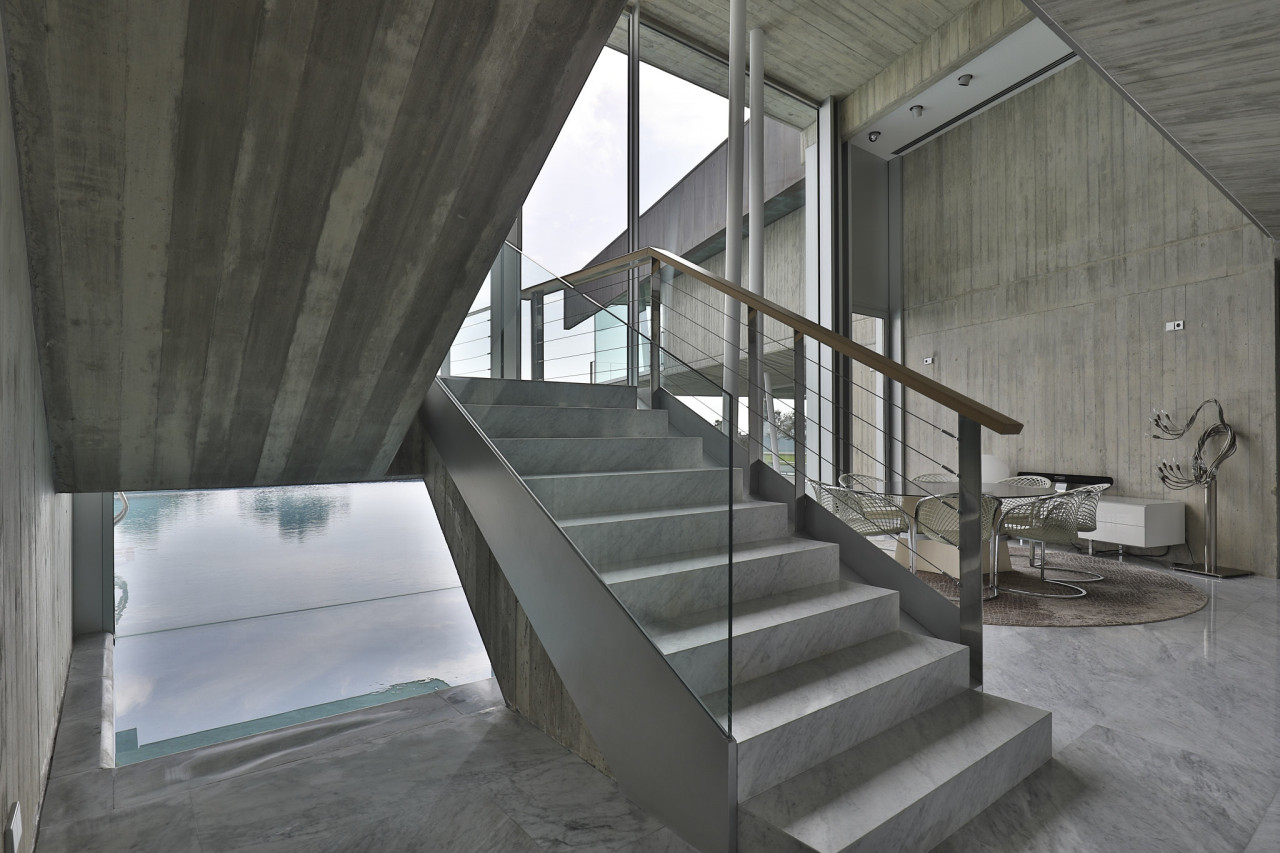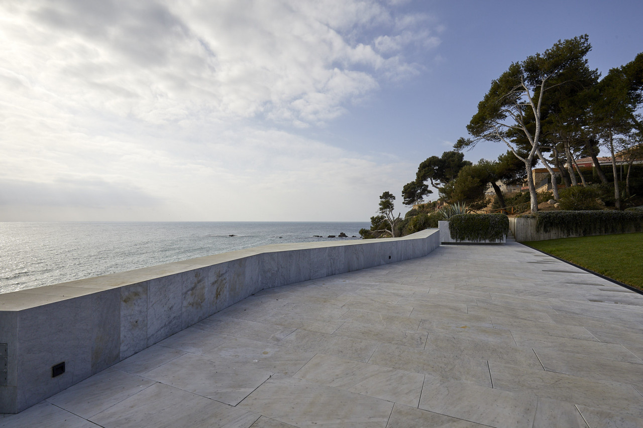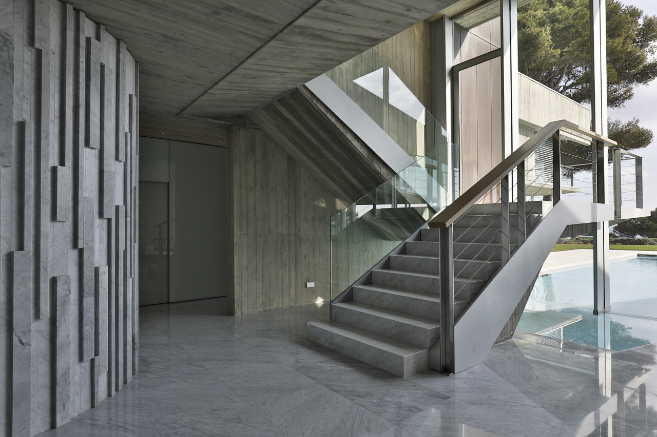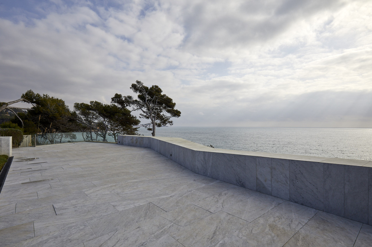 Casa Elle is an extraordinary seafront architectural masterpiece that blends sculptural design with understated luxury, creating a setting that feels both cinematic and profoundly serene. Vast panes of glass frame uninterrupted views of the Mediterranean, allowing the shifting colours of the sea and sky to become a permanent backdrop to daily life. Inside, polished stone floors, exposed concrete ceilings, and precise geometric forms create a gallery-like calm, softened by curated furnishings and the natural daylight that pours through every angle. The home flows around reflective water features and an interior courtyard pool, where a sculptural figure stands like a quiet centrepiece, reinforcing the property’s art-forward identity. Elegant corridors lined with wooden slats, dramatic staircases framed in glass, and open-plan living spaces form a continuous play of texture, light, and perspective. Outdoor terraces appear to hover above the coastline, offering sweeping panoramic views and generous space for entertaining. The poolside area connects effortlessly with the surrounding landscape, capturing the essence of Mediterranean indoor–outdoor living. Every corner of Casa Elle feels intentional, architectural, and deeply atmospheric — a bold, modern retreat made for high-end productions, editorial shoots, and clients seeking an iconic location that delivers visual impact from every angle.