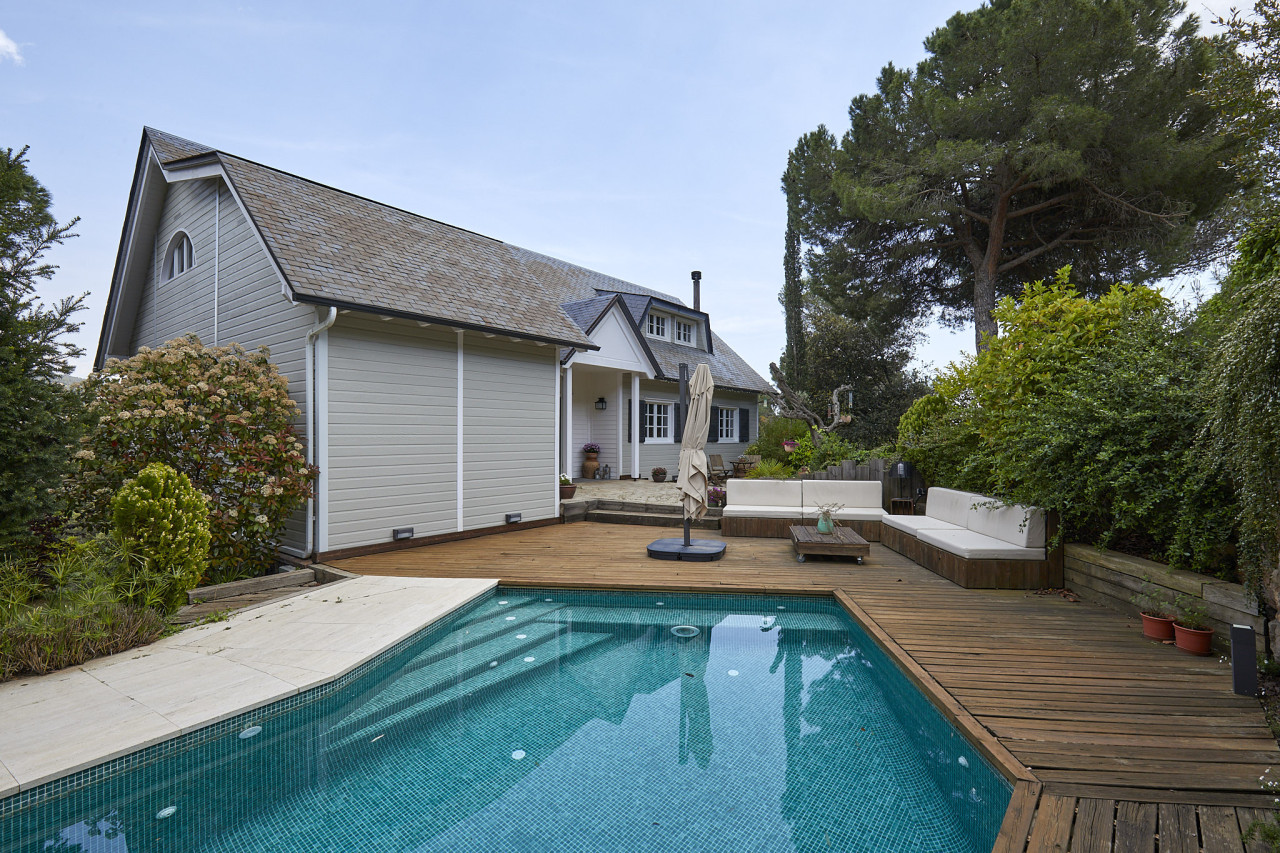 Casa Gretzky is a charming, character-rich home in Matadepera that blends the warmth of a countryside retreat with the practicality and comfort of a family residence. The property stands out with its New England–inspired architecture: pitched roofs, soft grey siding, shuttered windows, and natural stone accents that add timeless appeal. Surrounded by lush greenery and mountain views, the house feels private, peaceful, and deeply connected to nature, making it an ideal setting for lifestyle productions, family-oriented campaigns, editorial shoots, or any project seeking a cozy, lived-in aesthetic.