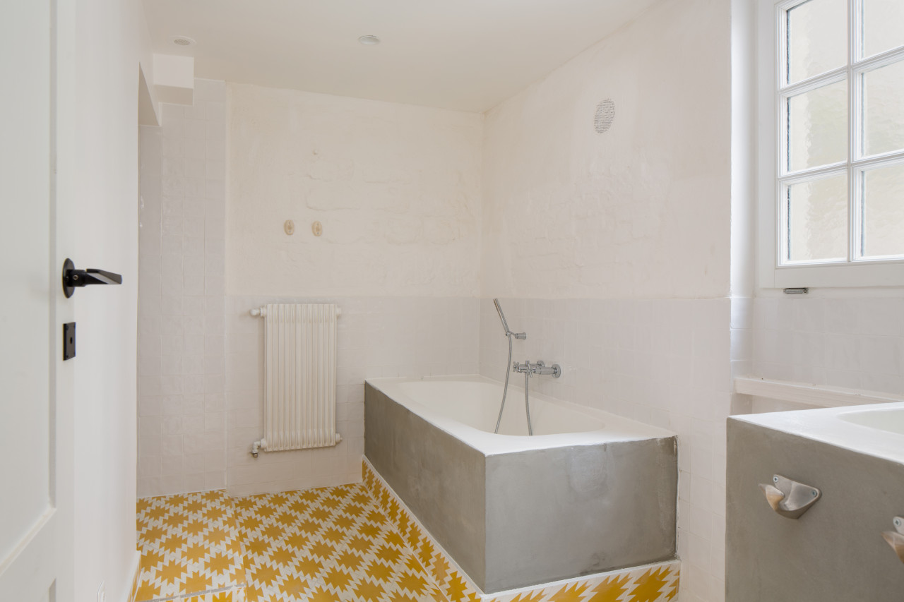 Spanning across 152.6 m2, you will find a double living room with fireplace and a fitted kitchen on the raised ground floor. On the first floor, a master bedroom with exposed beams, a balcony, a dressing room and a superb bathroom with mezzanine, bath and shower will welcome you. Near the courtyard, are two bedrooms with storage space and garden access, as well as a bathroom.