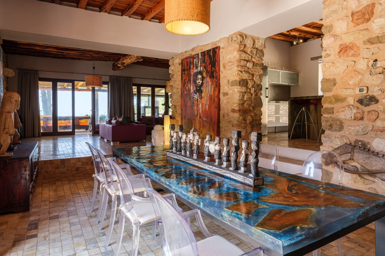 A 500 years old renovated finca located minutes from mediterranean sea with astonishing views and plenty of space to unwind, relax or celebrate any occasion. This funky villa offers a large variety of lounge places, exterior swimming pool combined with an astonishing view of the Mediterranean Sea, which also gives the guests the most perfect ambiance on the terrace for breakfasts with sunrise or BBQs with sunset. Suitable for events with up to 120 guests. Features include: