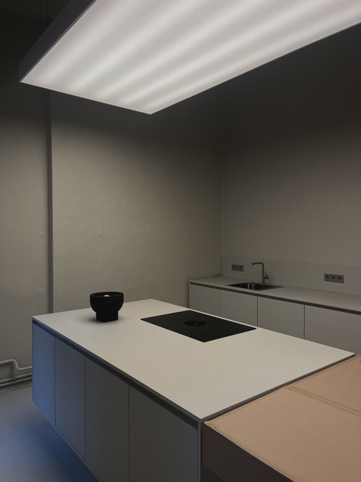 The space available is the studio's own gallery space with a total of 170 square meters, two bathrooms, a huge show kitchen with light ceiling, an office/dinning rooms situation and of course the huge gallery space. The whole gallery space has a beautiful front yard, wide open windows to the street corner and 3,90m high ceilings with stucco.