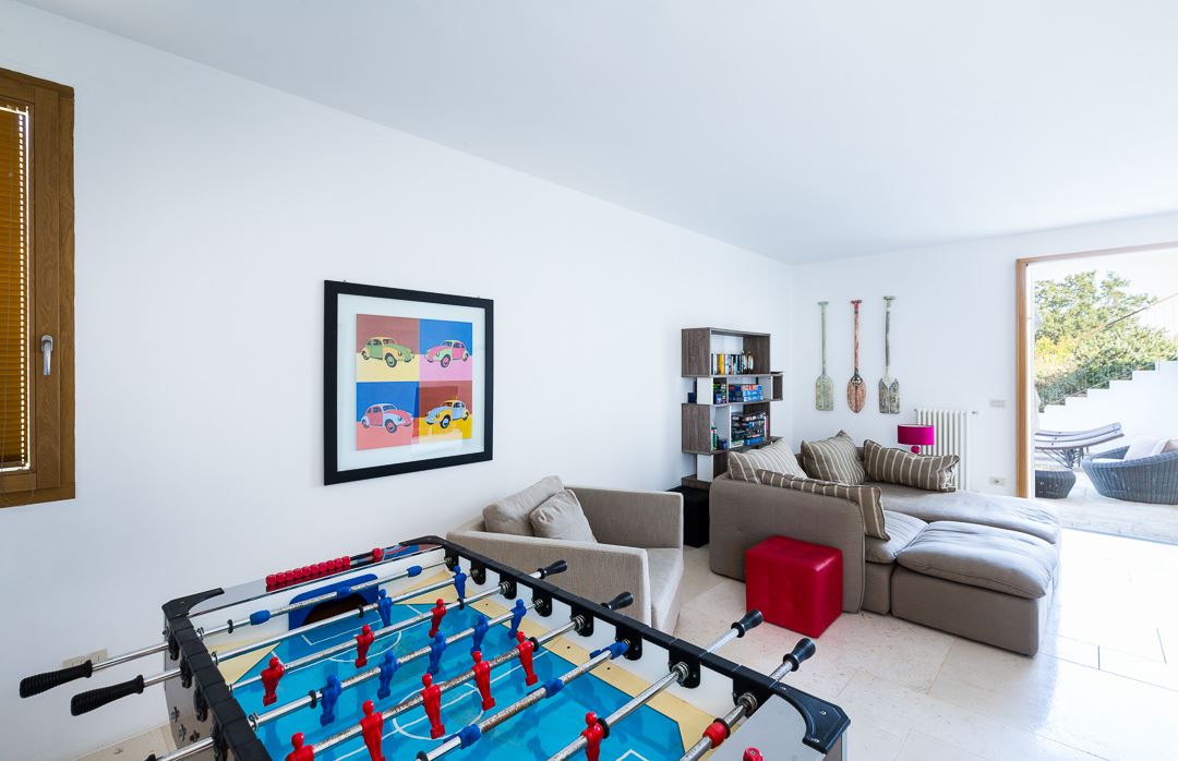 Discover the epitome of luxury living in this stunning modern residence, boasting an array of sleek architectural elements and refined interior design. The heart of the home features a state-of-the-art kitchen with expansive windows that frame the lush outdoor greenery, creating a serene backdrop for culinary creativity. Transition seamlessly into the spacious living room equipped with a vibrant foosball table, plush sofas, and striking artwork, ideal for both lively entertainment and tranquil relaxation. Large sliding glass doors reveal a breathtaking outdoor terrace, complete with stylish rattan furniture, perfect for evening gatherings under the stars. Each bedroom promises a private retreat, adorned with minimalist art and soothing color palettes, ensuring a space where comfort meets style. The luxurious outdoor area is crowned with a shimmering infinity pool, surrounded by a manicured lawn and an elegantly designed patio, offering a panoramic view of the picturesque rural landscape. Embrace a lifestyle of sophistication and leisure in this exquisitely designed modern home, where every detail is crafted for luxury and comfort.