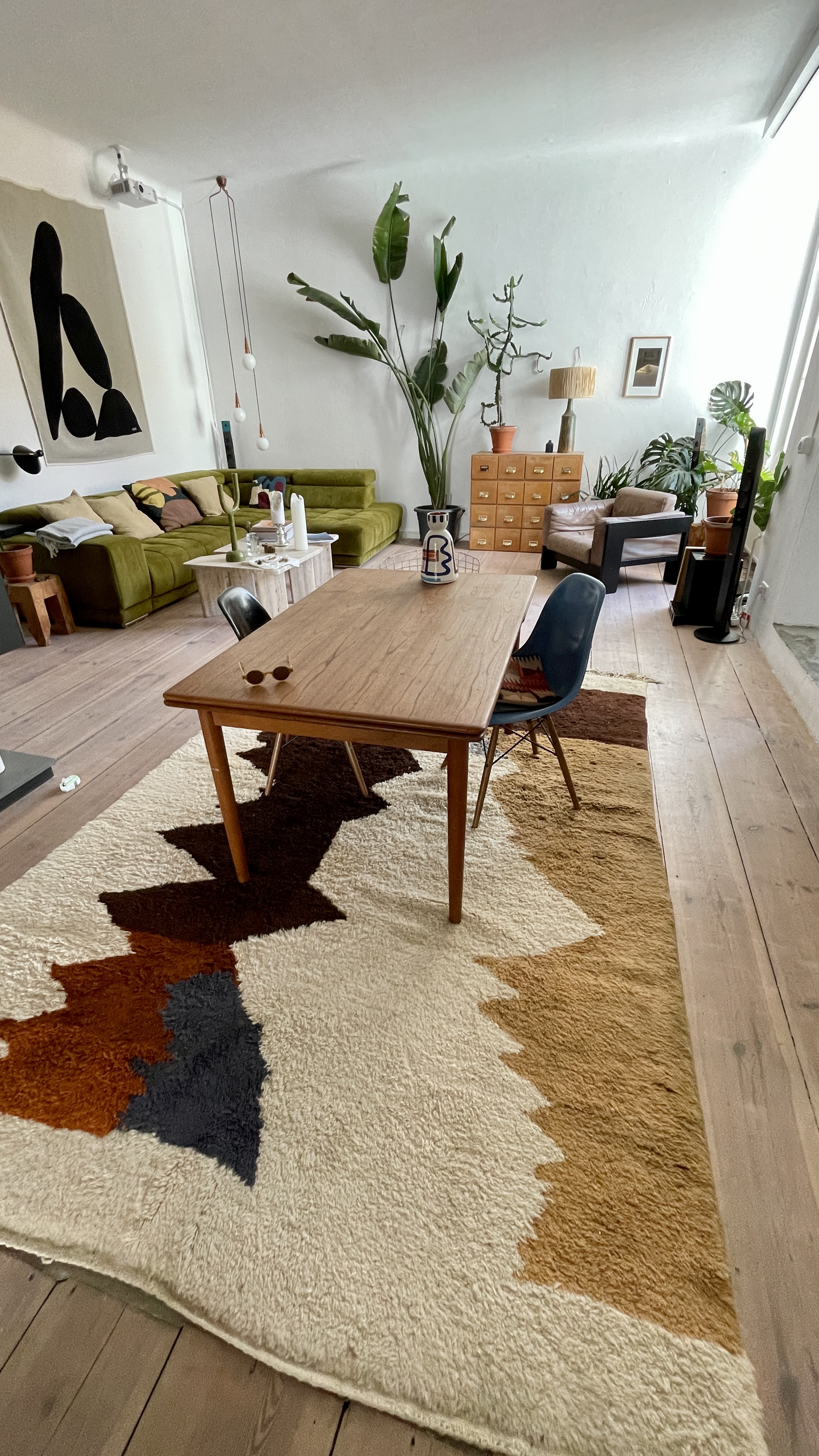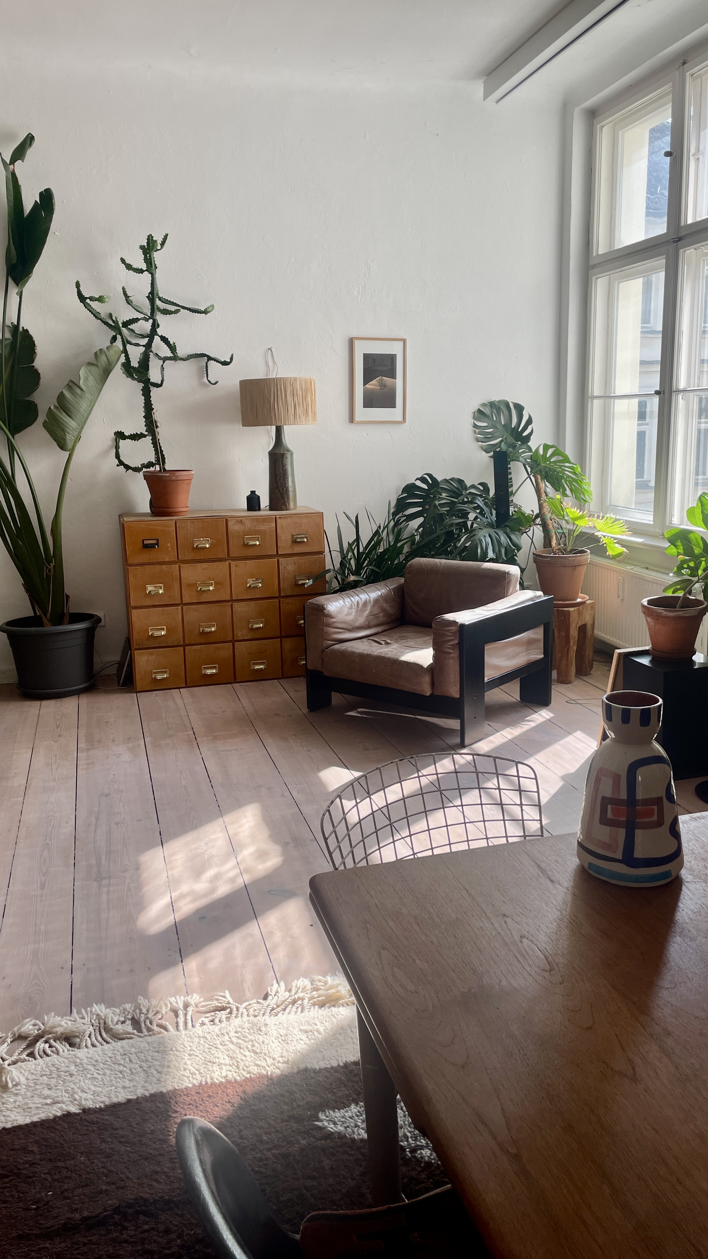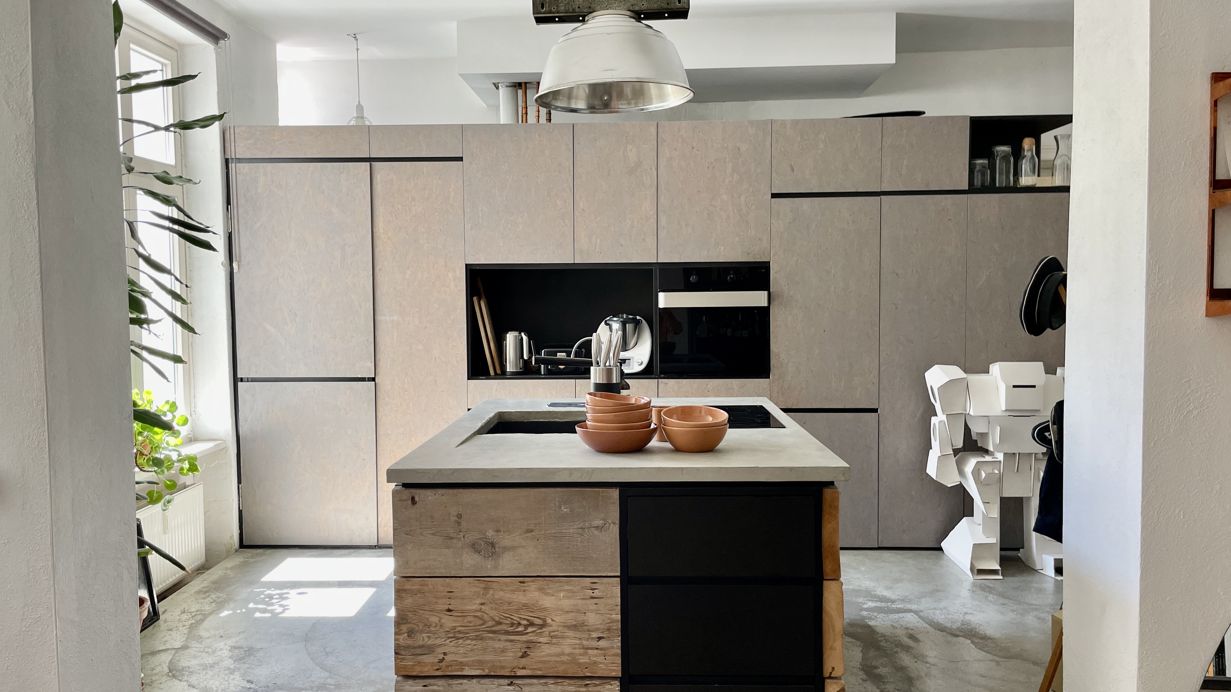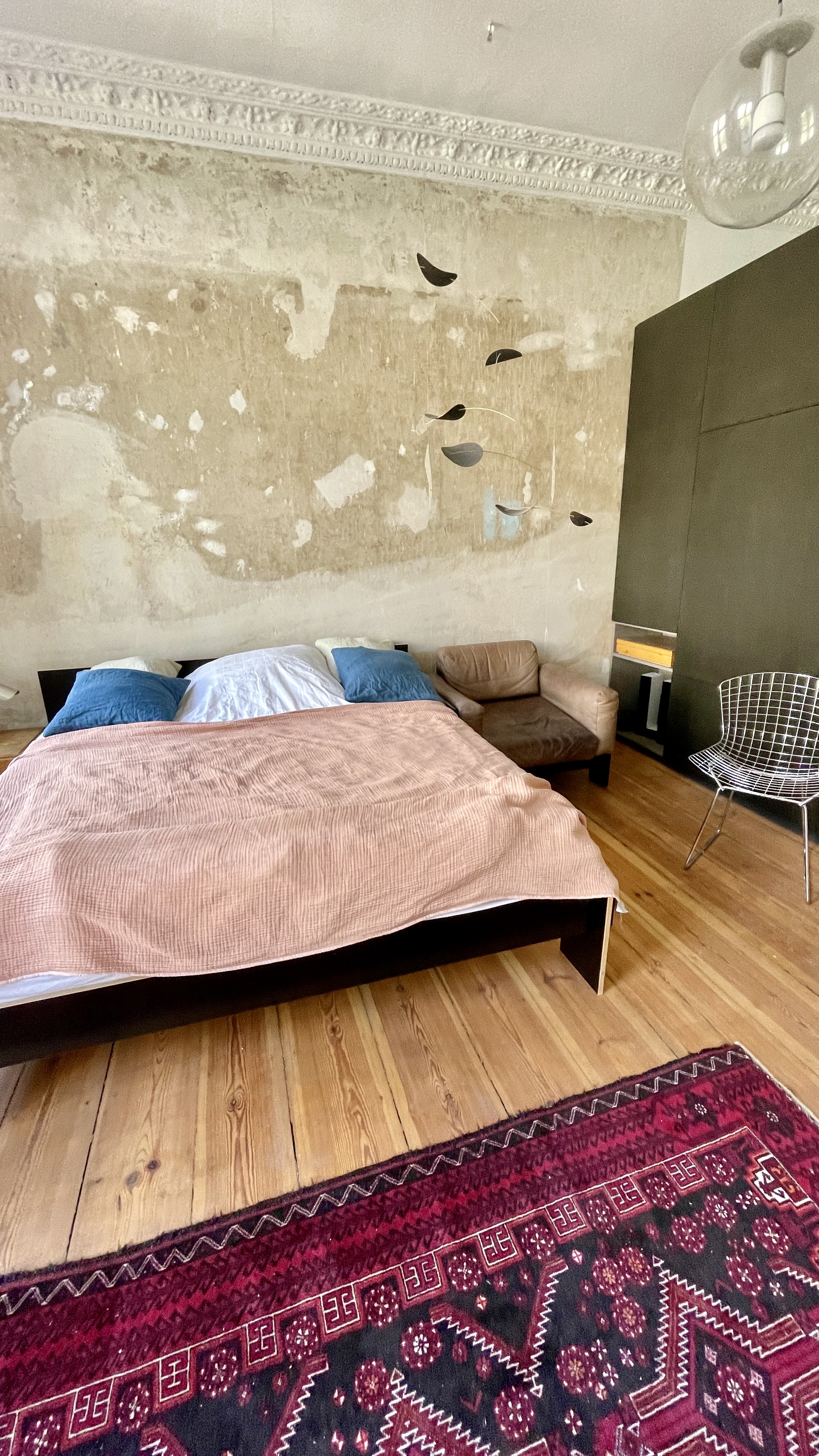 Nestled in the heart of the city, this contemporary apartment spans across multiple spacious rooms, each meticulously crafted to blend modern aesthetics with comfort. The living areas are designed with a seamless flow, featuring industrial-style bathrooms with sleek fixtures and brick walls, and a sunlit kitchen equipped with a concrete island and state-of-the-art appliances. Comfortable, yet stylish furnishings like a plush green sofa and terracotta bowls add a touch of warmth and sophistication to the space.