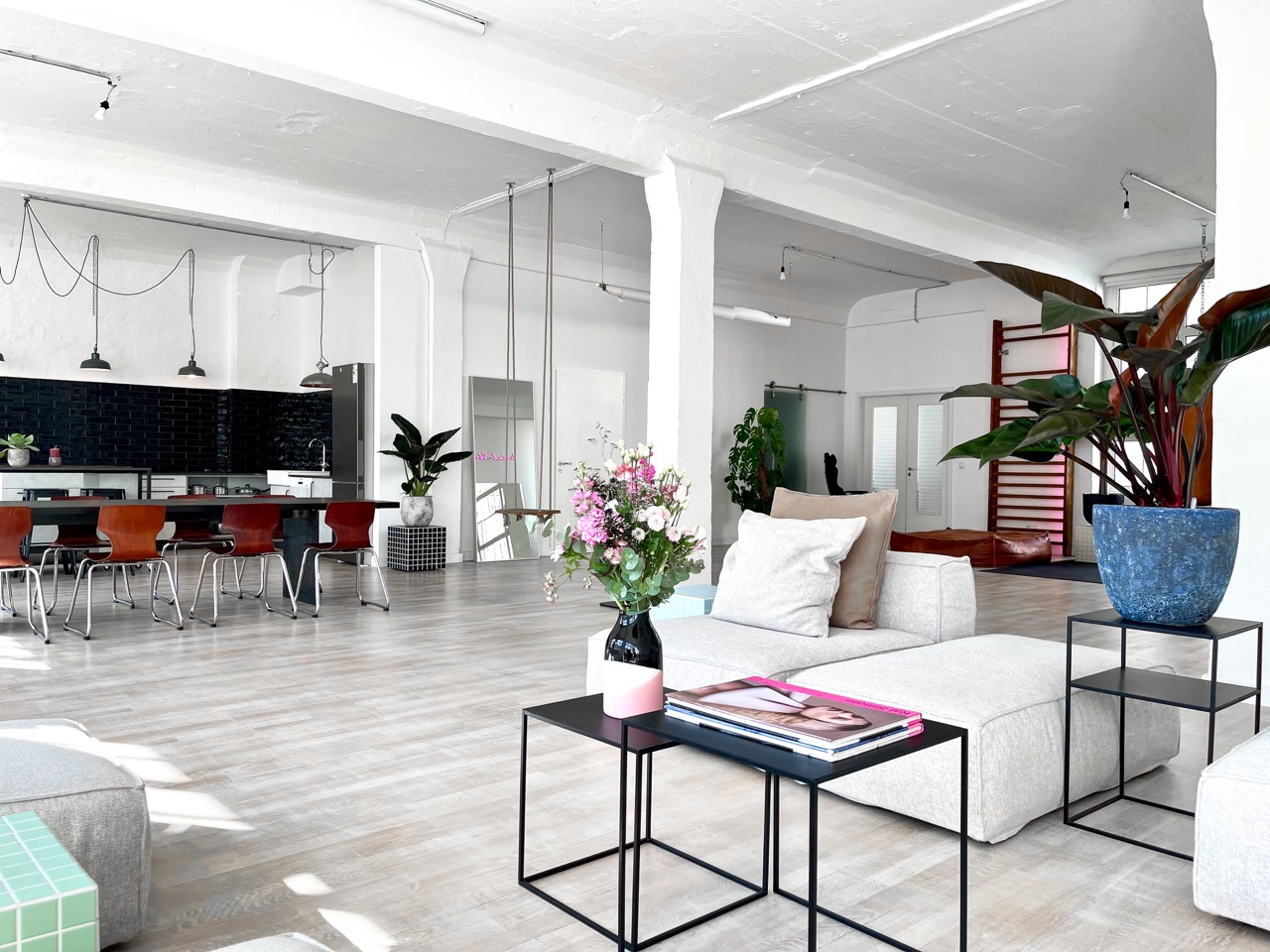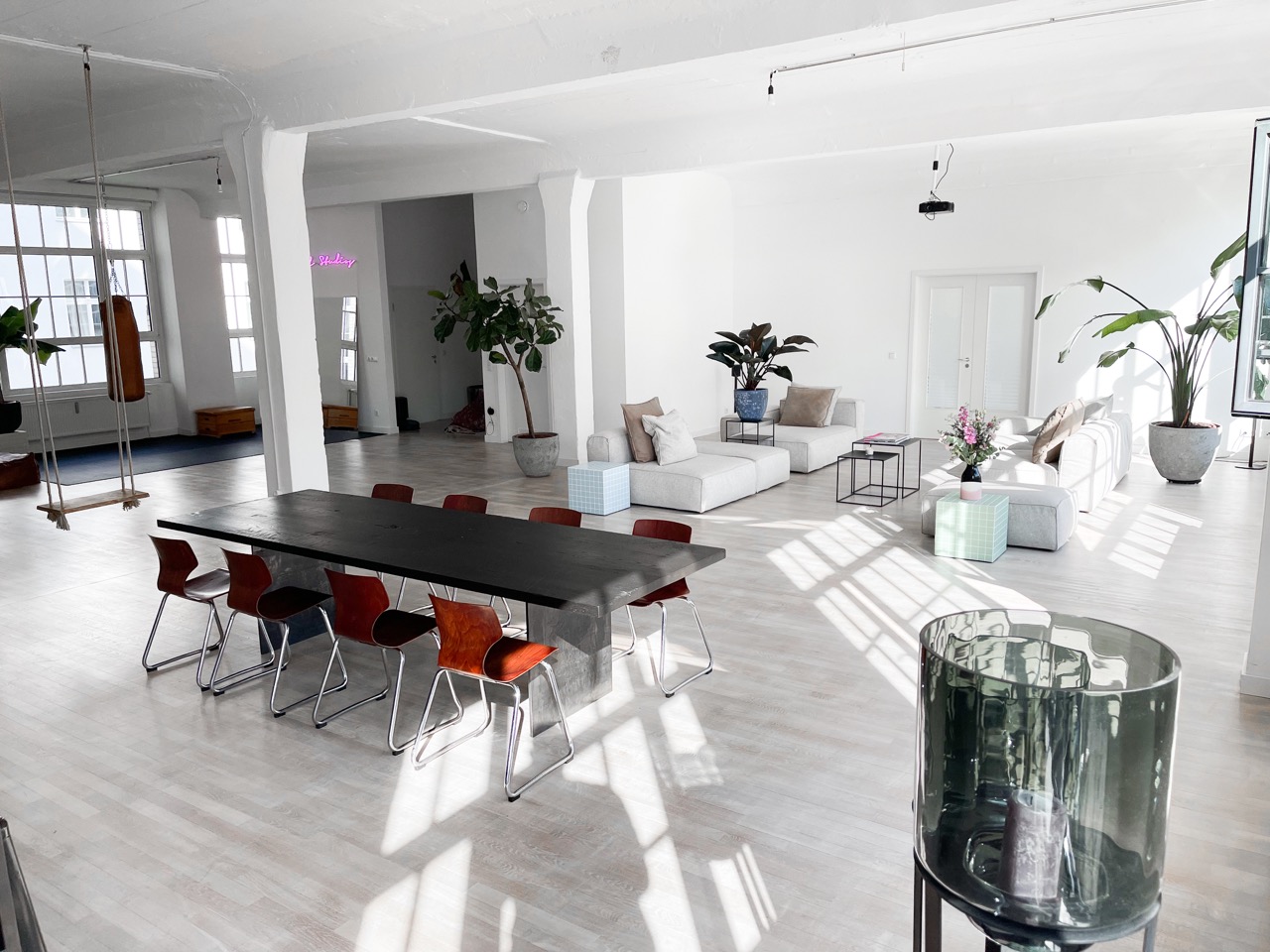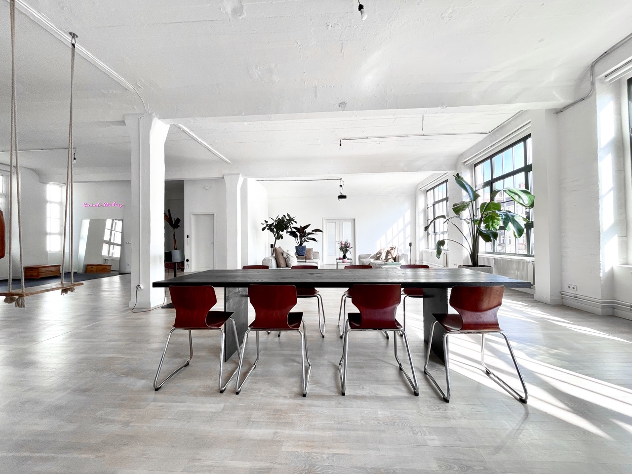 This studio is located in a building built around 1901 and directly on Paul-Lincke-Ufer. The large window fronts, 3.60m high ceilings and a large main room with open kitchen create a special atmosphere. The loft is 260sqm; besides the large main room which also includes a sports area and a back drop photo background, the studio offers two bedrooms, two walk-in closets, a small gaming/production room and 2 bathrooms. The entire interior can be rearranged in a matter of minutes. Thus, the studio offers a variable event & production space.
