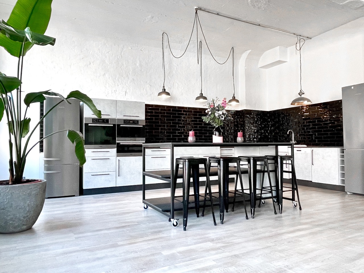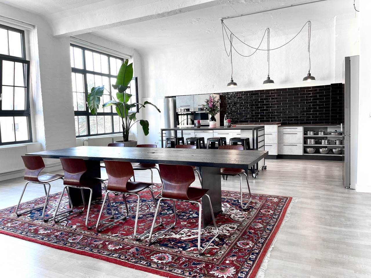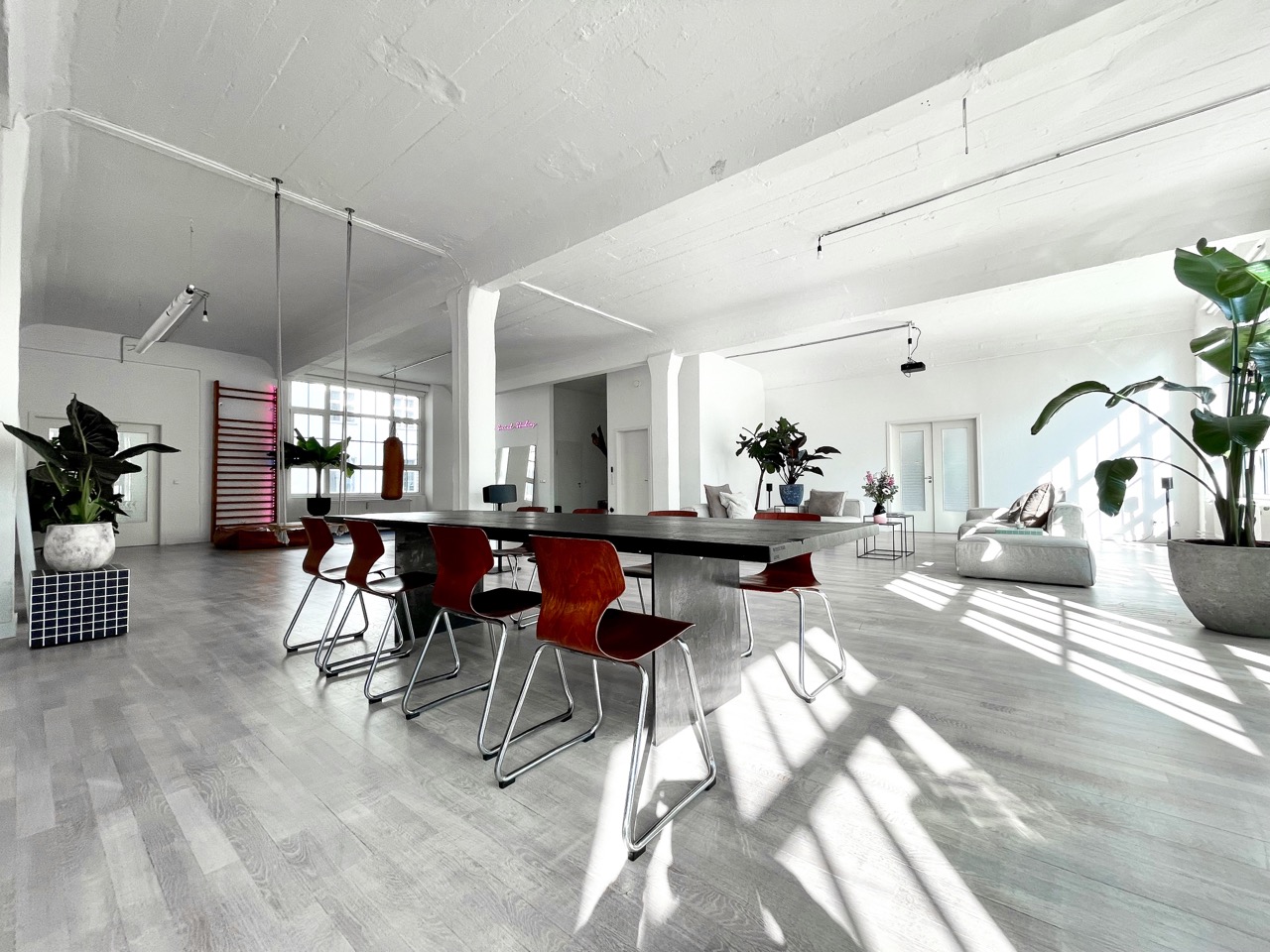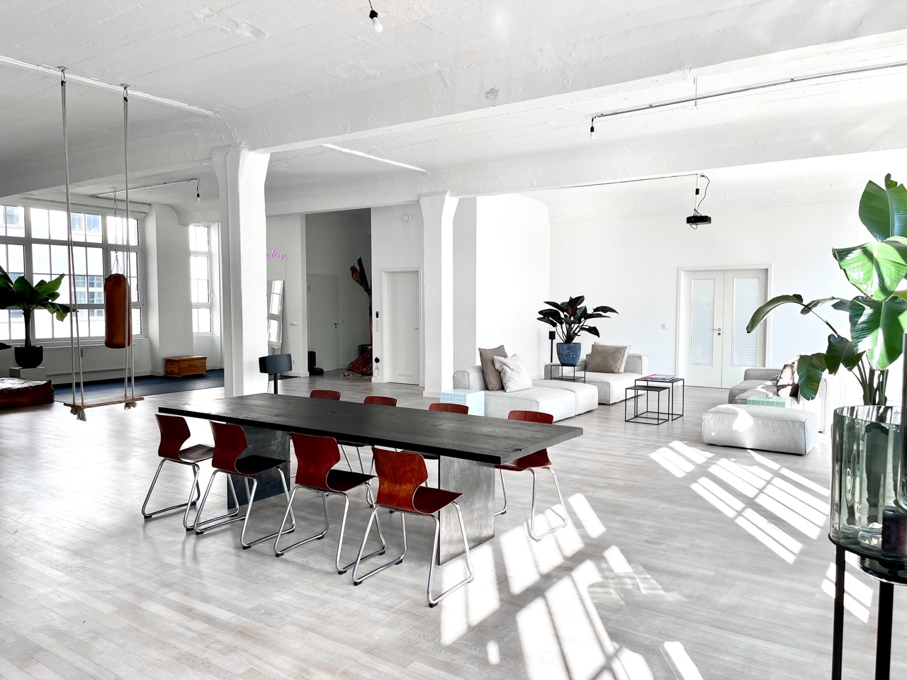 This studio is located in a building built around 1901 and directly on Paul-Lincke-Ufer. The large window fronts, 3.60m high ceilings and a large main room with open kitchen create a special atmosphere. The loft is 260sqm; besides the large main room which also includes a sports area and a back drop photo background, the studio offers two bedrooms, two walk-in closets, a small gaming/production room and 2 bathrooms. The entire interior can be rearranged in a matter of minutes. Thus, the studio offers a variable event & production space.