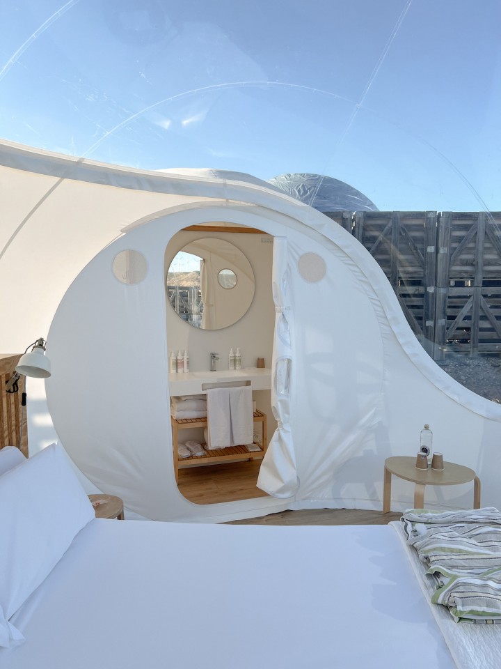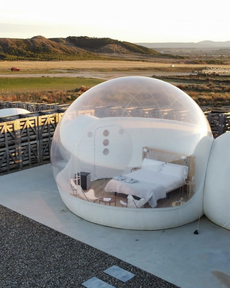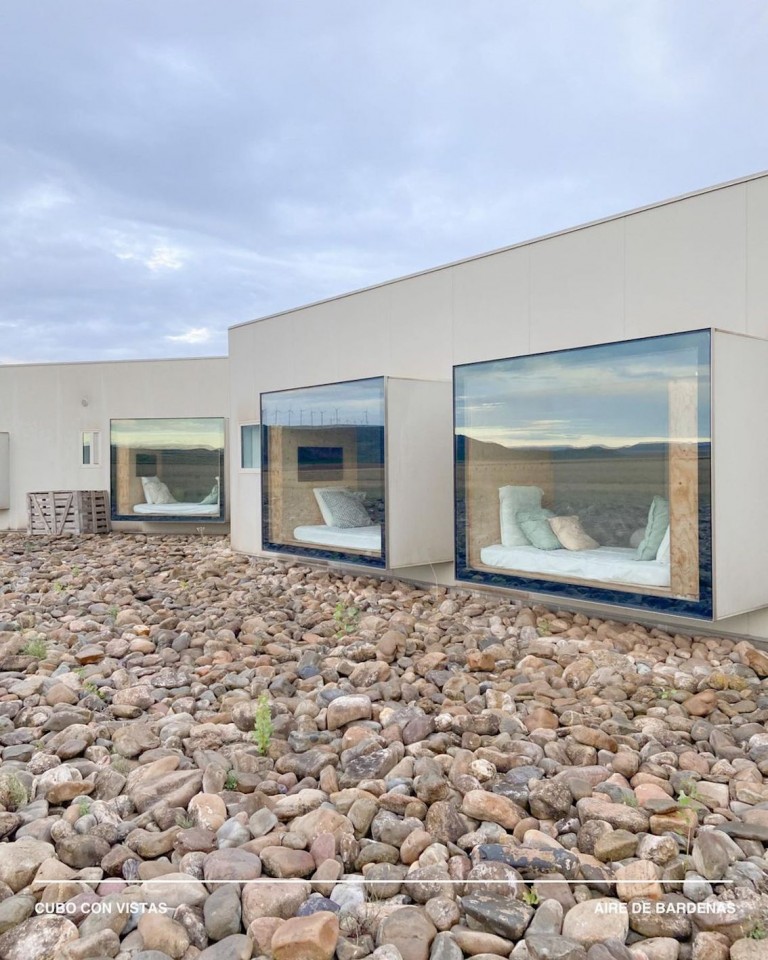 You can choose between 8 different types of rooms or cubes. Some combine a private patio and hot-cold water bathtub; others are cubes with views of the imposing semi-desert landscape of Bardenas; also bubbles to discover one of the skies with the least light pollution in Europe. Each room is unique and offers an unforgettable experience.