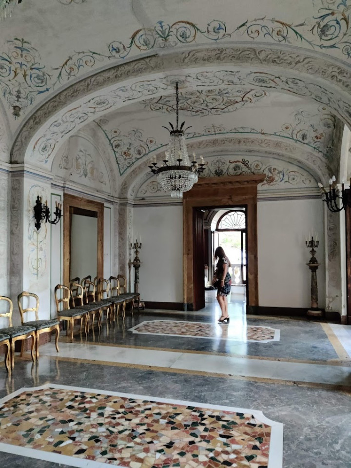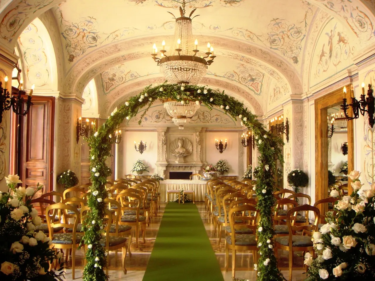 The interiors boast ornate ceilings, chandeliers, ceremonial halls, and refined dining rooms — ideal for capturing classic Italian elegance on screen or hosting sophisticated private events. Outside, guests and crews will find charming stone pathways, terraces, and lush greenery, providing natural beauty and cinematic appeal.