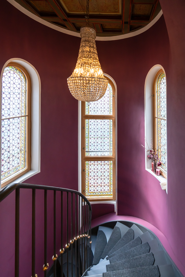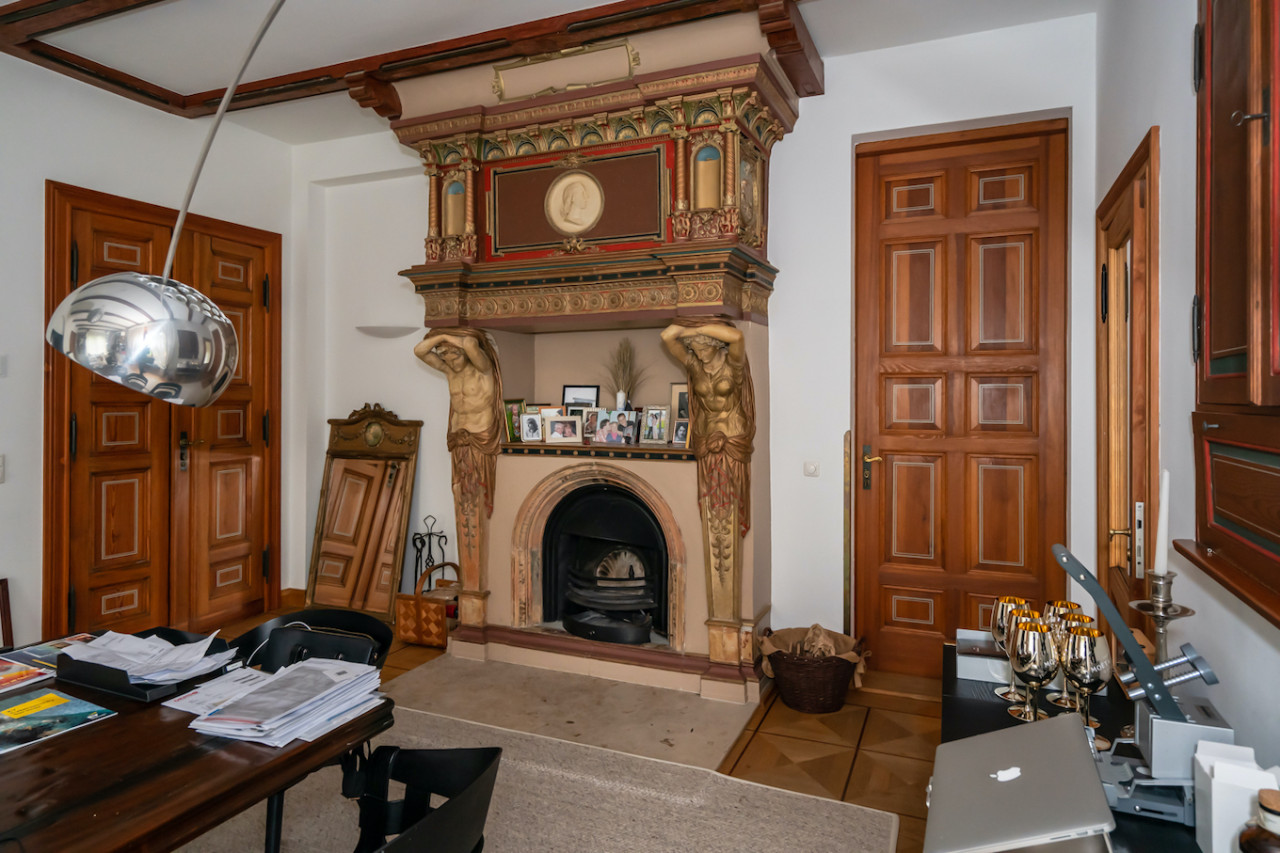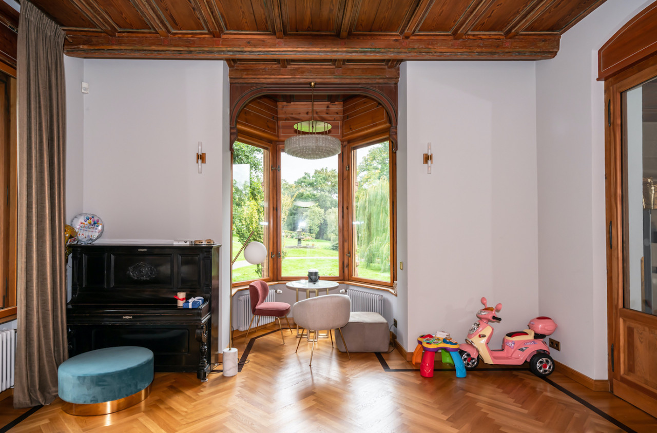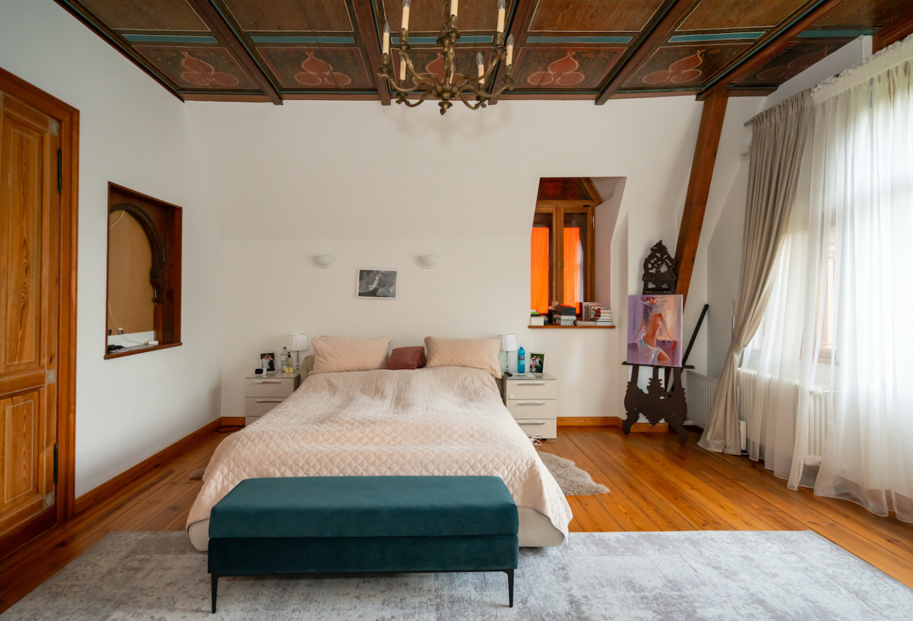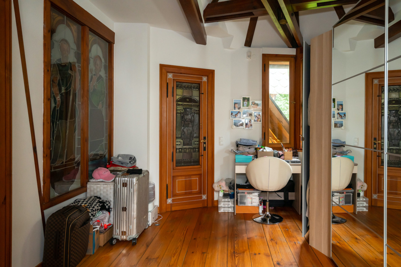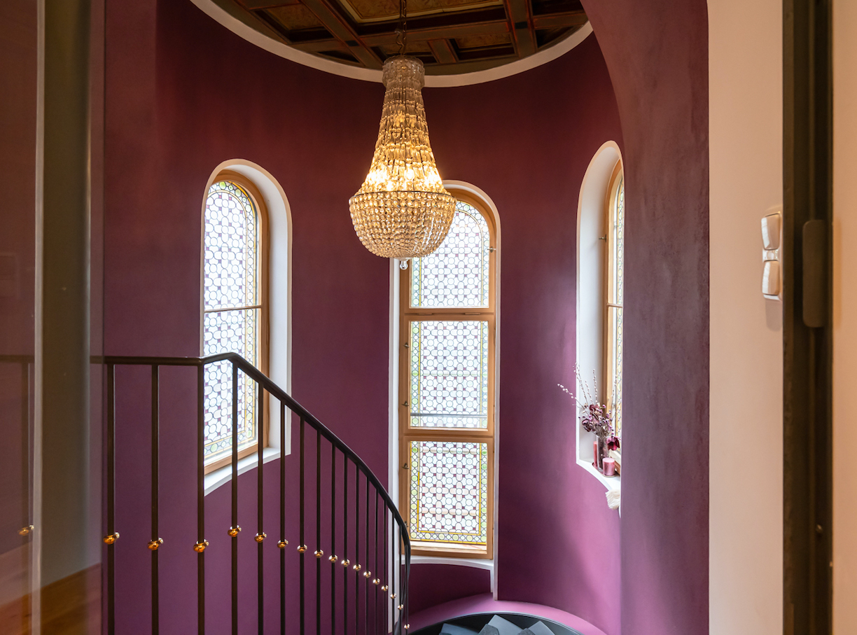 Inside, sweeping staircases—spiraling beneath grand stained glass windows and opulent chandeliers—connect a series of principal rooms curated with an eye for historical detail and modern comfort. Attic bedrooms with arched windows and exposed beams invite tranquil rest and atmospheric moments, while richly appointed living rooms—with classical fireplaces, carved mantelpieces, and a grand piano—suggest gatherings layered with character. Flexible spaces range from stately home offices with vintage-modern symmetry to creative children’s rooms and bright, carefully composed kitchens and dining areas. Architectural lighting, reflective surfaces, and curated furnishings imbue every space with an editorial edge, ensuring each room is photogenic, layered, and immersive for productions demanding authenticity and visual richness.