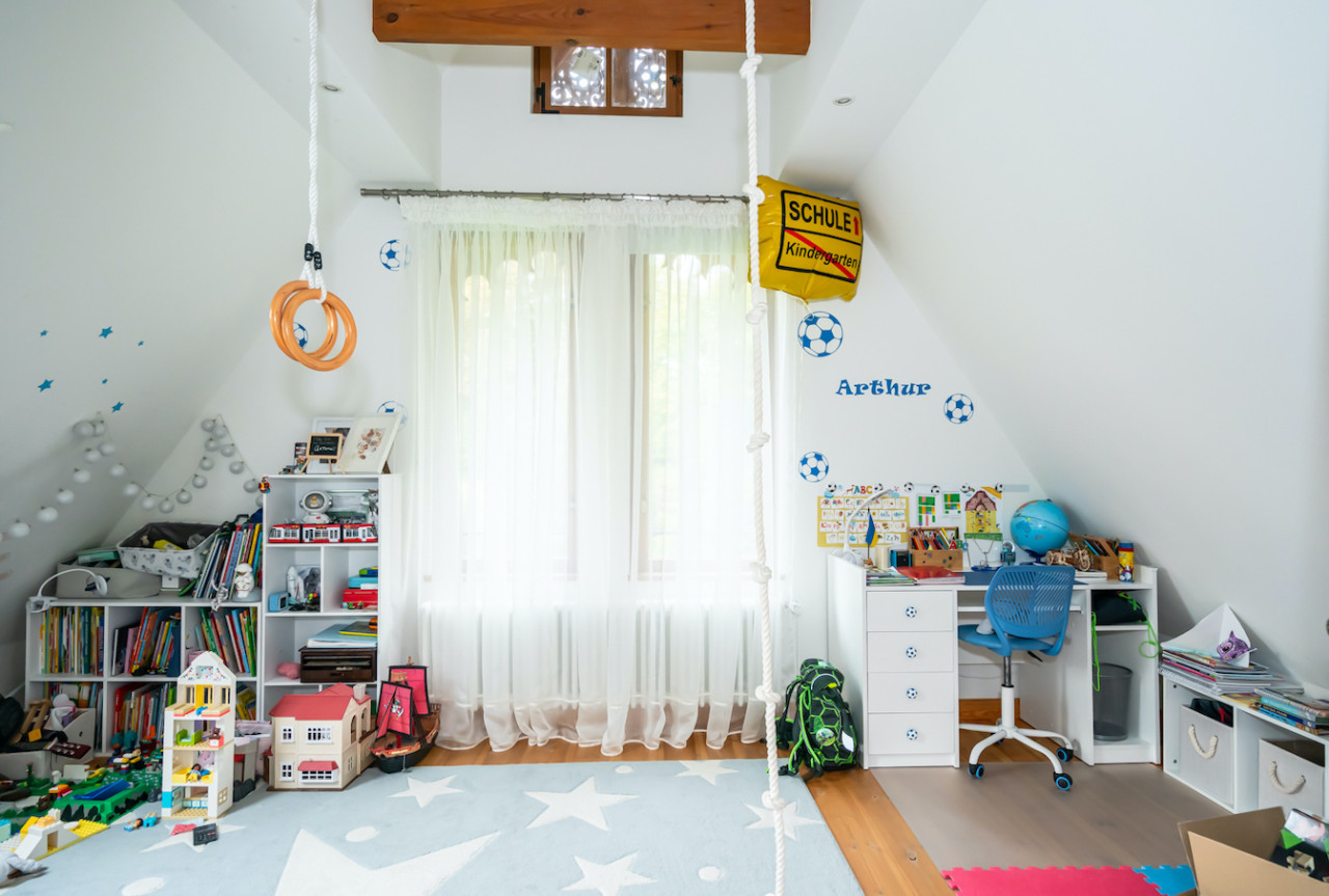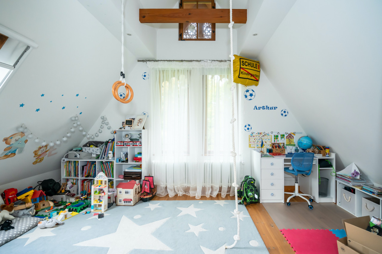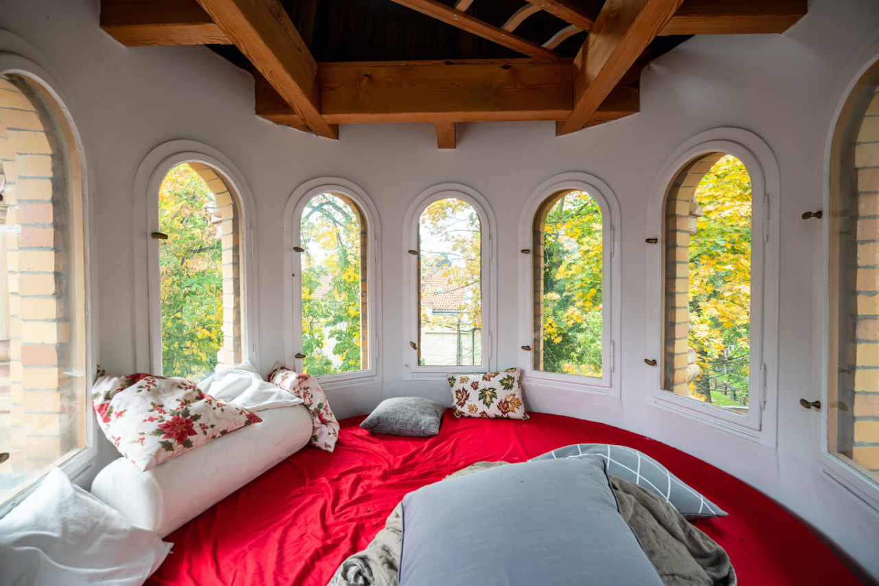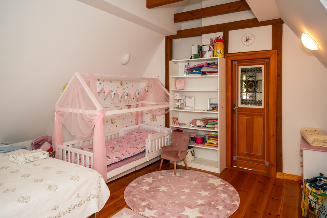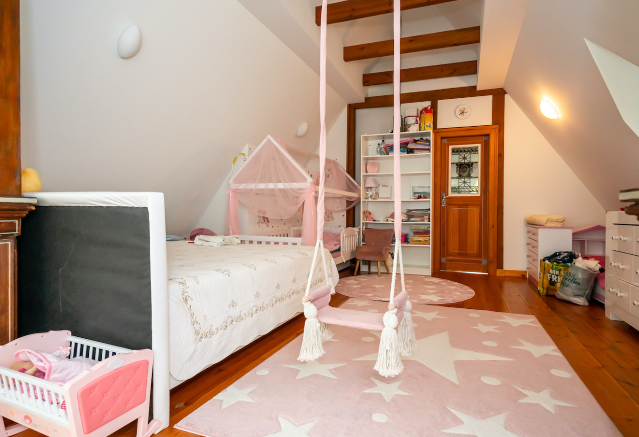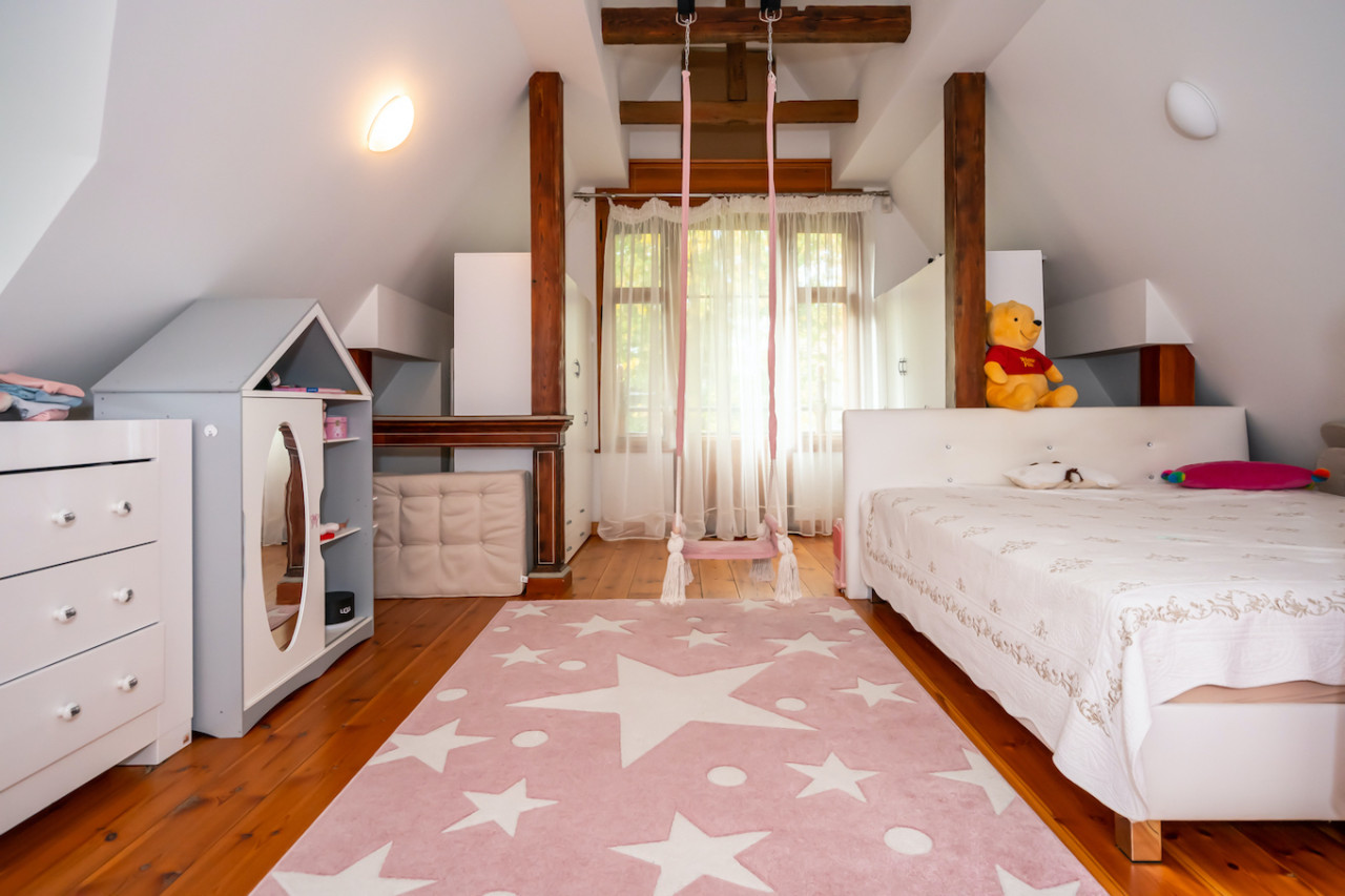 Inside, sweeping staircases—spiraling beneath grand stained glass windows and opulent chandeliers—connect a series of principal rooms curated with an eye for historical detail and modern comfort. Attic bedrooms with arched windows and exposed beams invite tranquil rest and atmospheric moments, while richly appointed living rooms—with classical fireplaces, carved mantelpieces, and a grand piano—suggest gatherings layered with character. Flexible spaces range from stately home offices with vintage-modern symmetry to creative children’s rooms and bright, carefully composed kitchens and dining areas. Architectural lighting, reflective surfaces, and curated furnishings imbue every space with an editorial edge, ensuring each room is photogenic, layered, and immersive for productions demanding authenticity and visual richness.