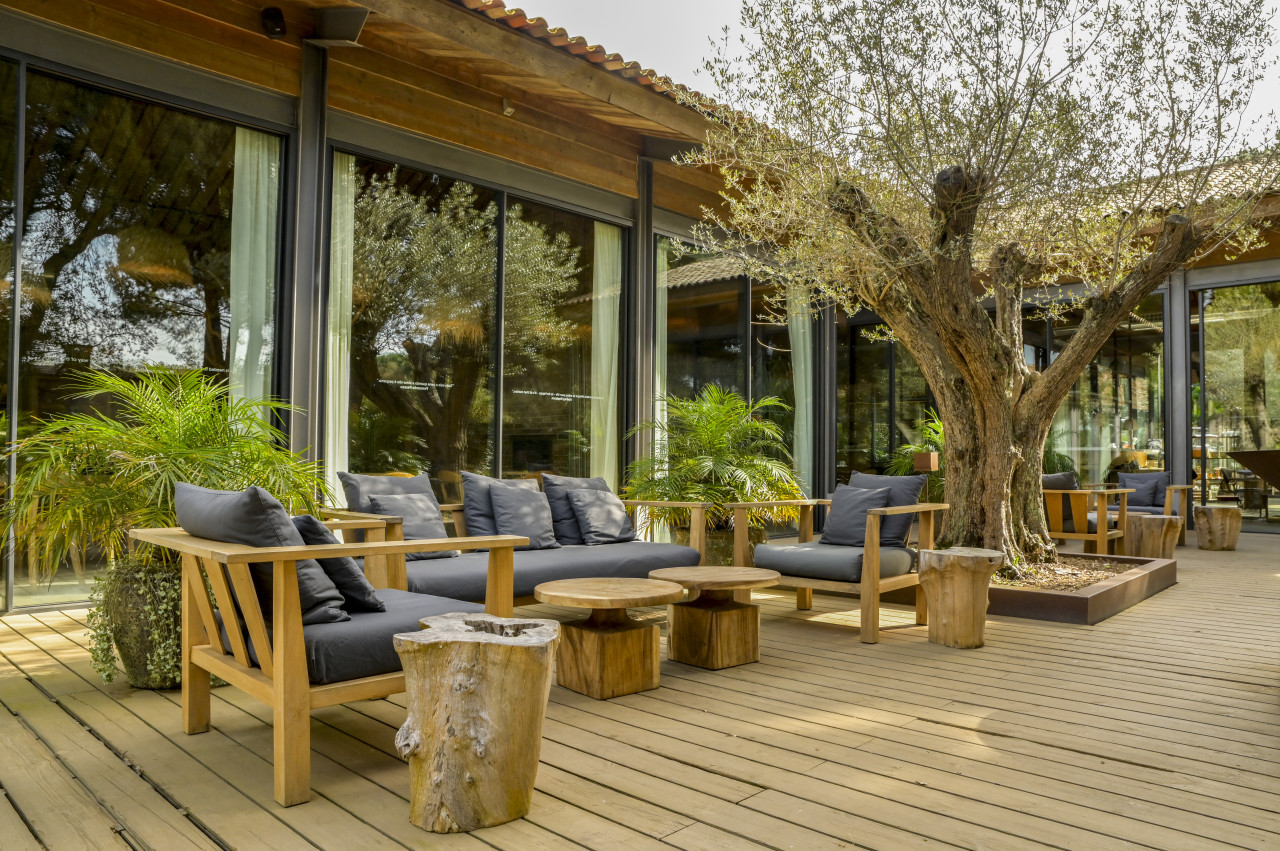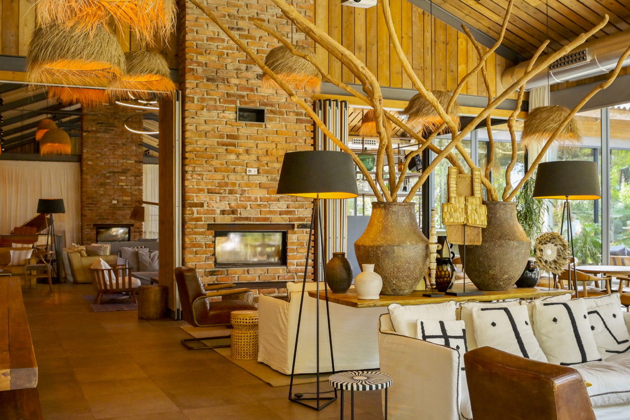 This Lounge is a premium space designed to blend indoor comfort with the beauty of the surrounding nature. Floor-to-ceiling glass windows provide abundant natural light and seamless views of the outdoors. The room features two wooden walls and a fireplace, creating a warm and inviting atmosphere. Ideal for intimate gatherings, creative productions, or relaxing retreats, the Sublime Lounge offers a perfect balance of elegance and coziness.