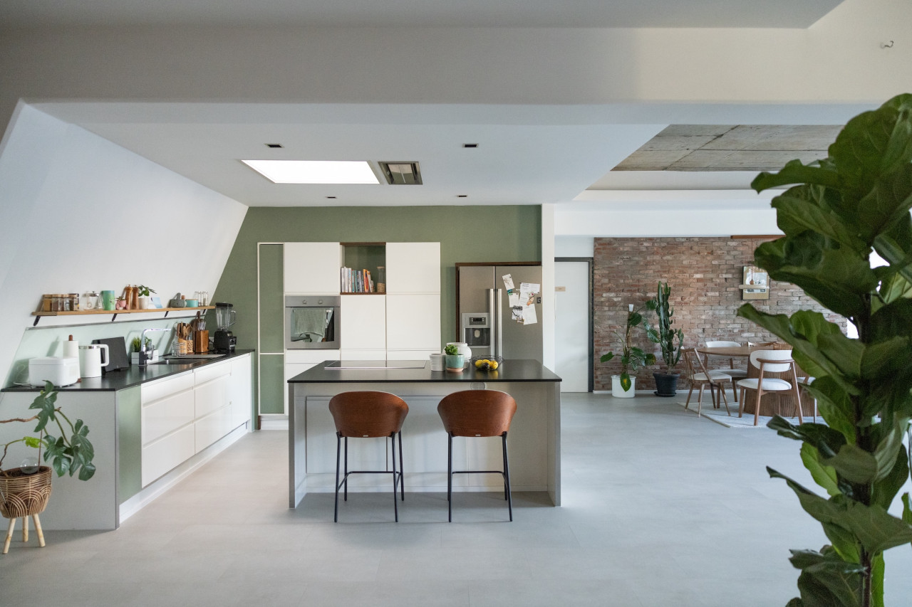 The second space is a spacious 130 sqm loft, ideal for larger productions or video shoots. With its exposed brick walls, raw concrete ceilings and plants, it offers a modern urban loft aesthetic with a warm, lifestyle-oriented feel.