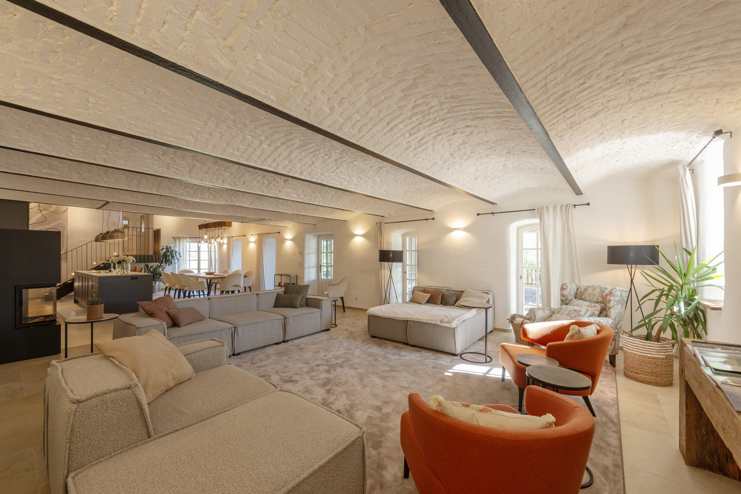 Discover serene living in this beautiful countryside house, nestled among lush green hills and sprawling forests. With its rustic charm and modern amenities, this property offers a spacious kitchen with wooden beams and modern pendant lights, alongside an open-plan dining area that seamlessly blends into the living spaces. The outdoor areas include a cozy wooden terrace offering breathtaking mountain views and a tranquil spa relaxation room, perfect for unwinding in nature's lap.