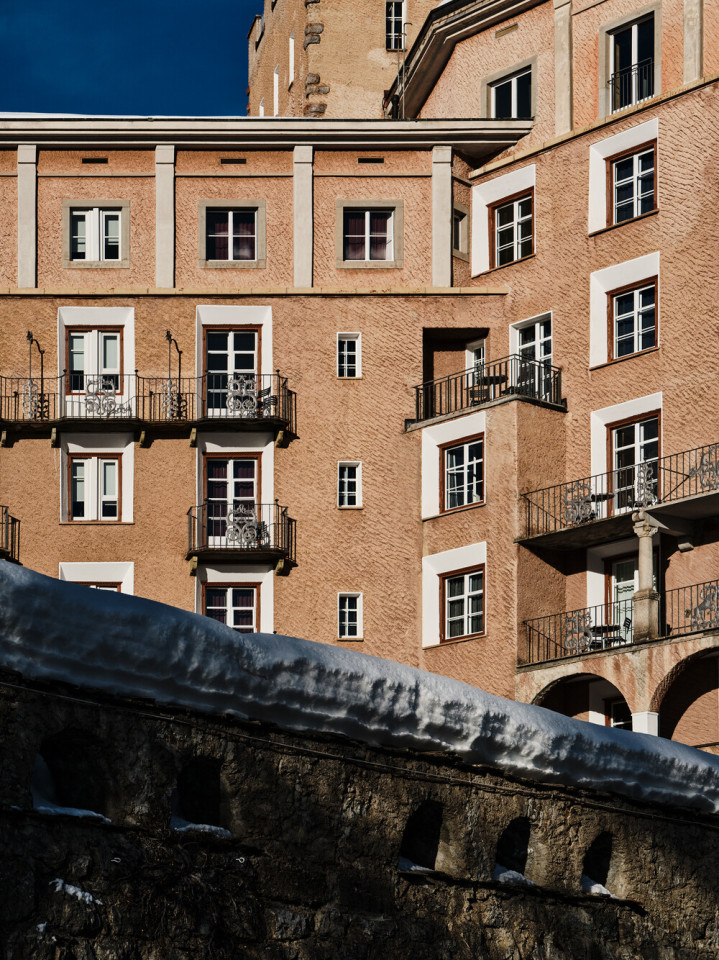 Perched at 1,900 meters, this exceptional hotel offers breathtaking views of the Engadin Valley. It seamlessly blends hospitality, contemporary art, and architecture, housing an extensive collection of modern artworks. A standout feature is the Red Bar, designed by Pipilotti Rist and Gabrielle Haechler.