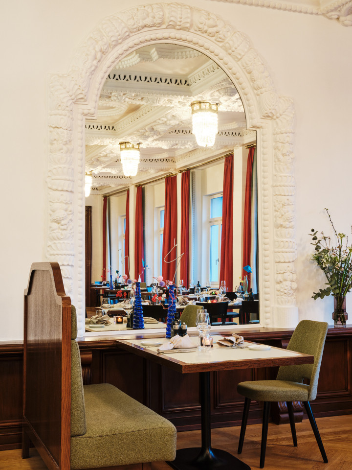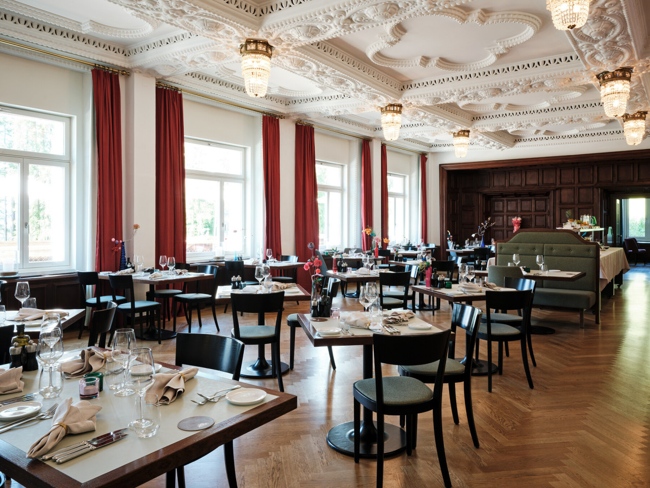The hotel offers 68 individually designed rooms, a spa and wellness center, and a Gault Millau-recognized restaurant.