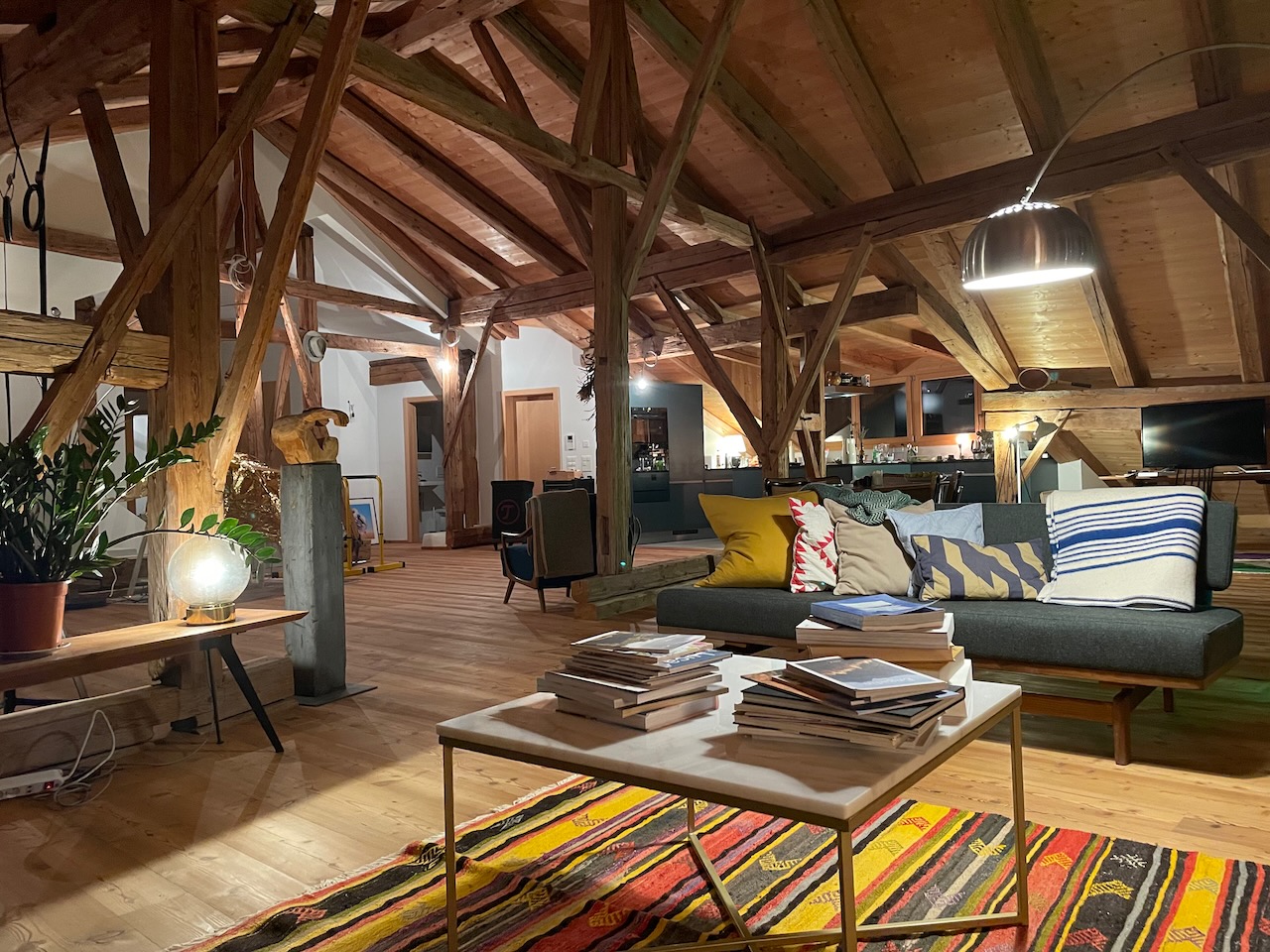Located on the top floor of a 300 year-old historic farmhouse, this carefully restored loft occupies much of the former hay barn of the building. It offers a quiet, generous space defined by traditional Engadin architecture and contemporary comfort.