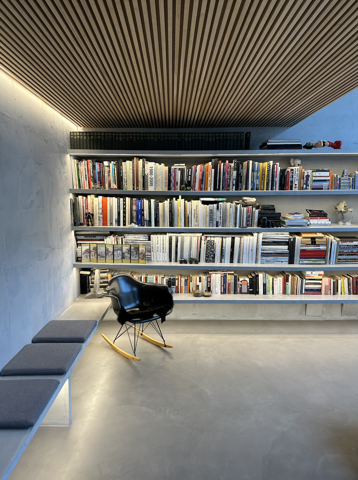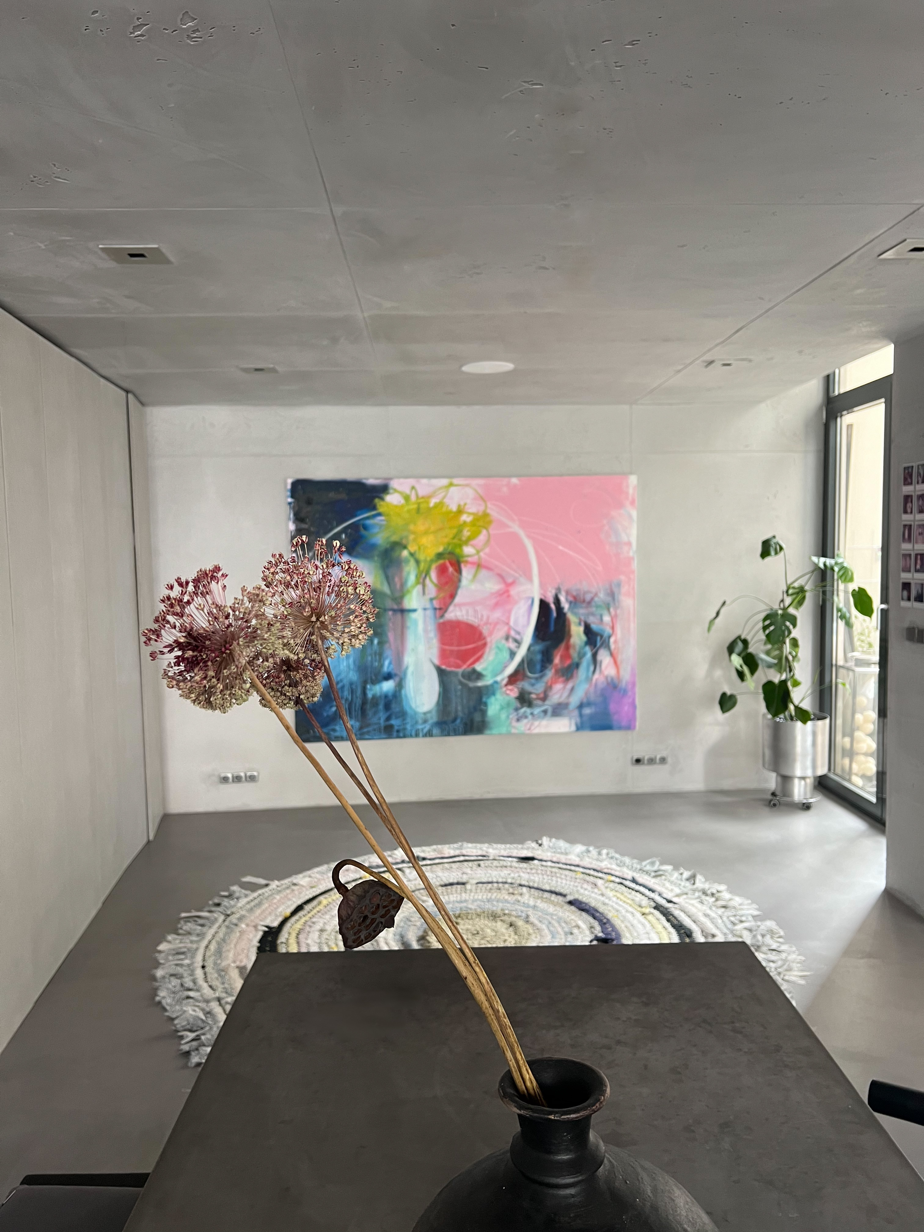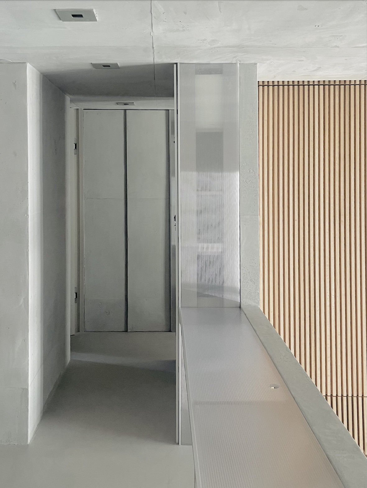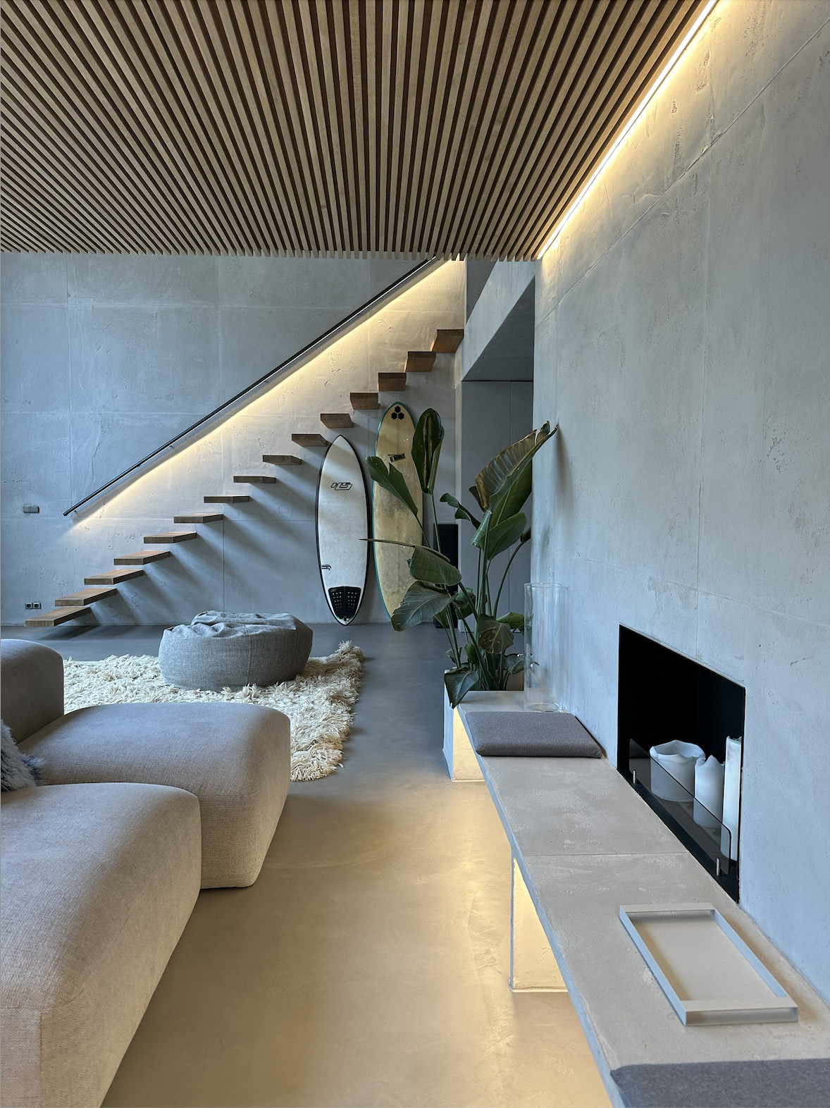Experience the epitome of urban living in this meticulously designed minimalist apartment. The heart of this home is a sunlit kitchen featuring stainless steel appliances, neat jar arrangements, and a stunning abstract painting, complemented by a chic round rug. Flowing into the living areas, you'll find plush gray sofas, expansive bookshelves, and tasteful green accents, creating a serene yet inviting atmosphere. Each room boasts an airy, open space design, with large windows that bathe the interiors in natural light, enhancing the modern aesthetic and tranquil vibes. The bedrooms and bathrooms follow a minimalist theme with sleek wooden paneling, soft lighting, and high-end fixtures. The master bathroom is particularly impressive with a large window and red-lit shower, providing a unique touch of luxury and drama.