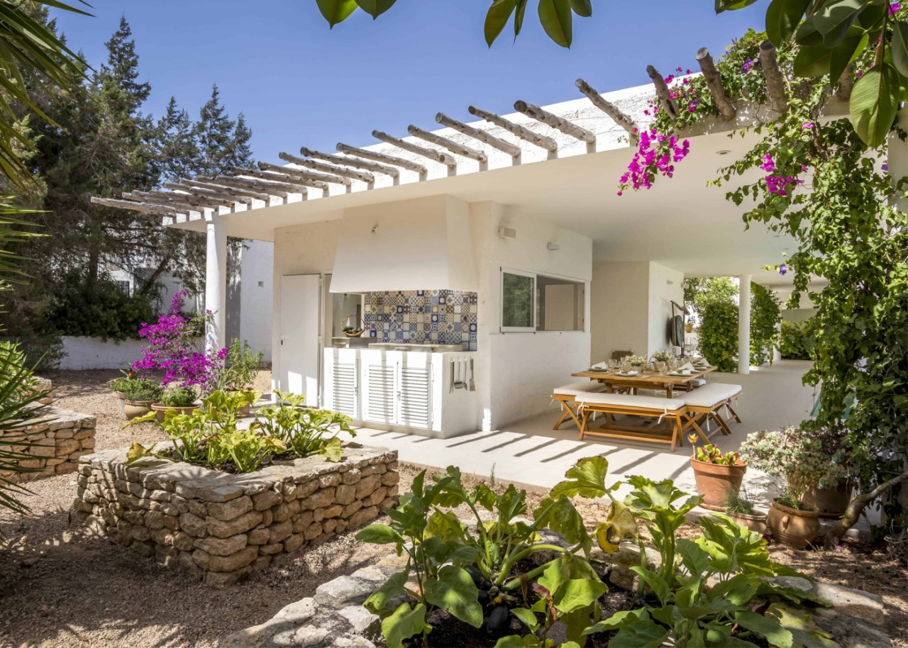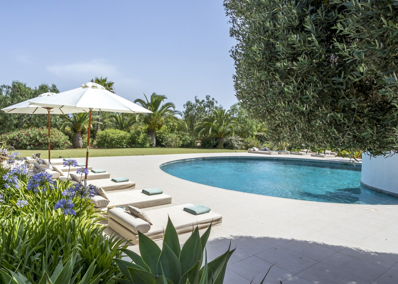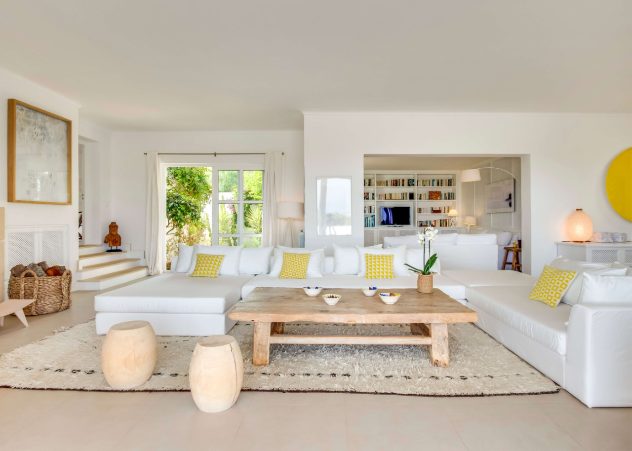 This lovely villa has a stunning large pool and a jacuzzi. There is also a playground for children and with views across the sea to the Island of Formentera. Inside it is light and airy, very comfortable with all the bedrooms having en-suite bathrooms and air conditioning. Features include: