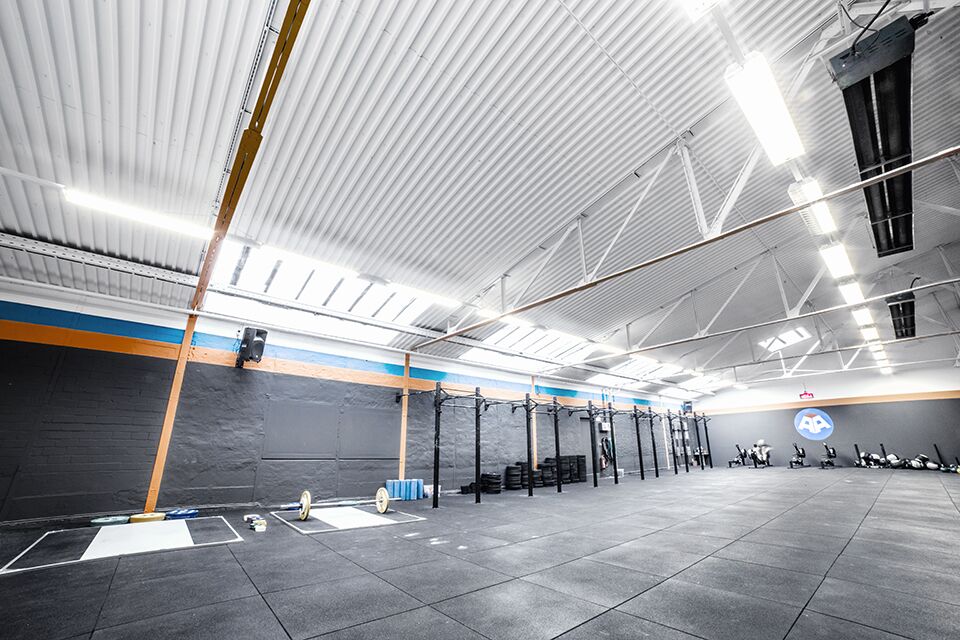 Functional Fitness hall (1x 800sqm, 1x 200sqm) in rough garage look.