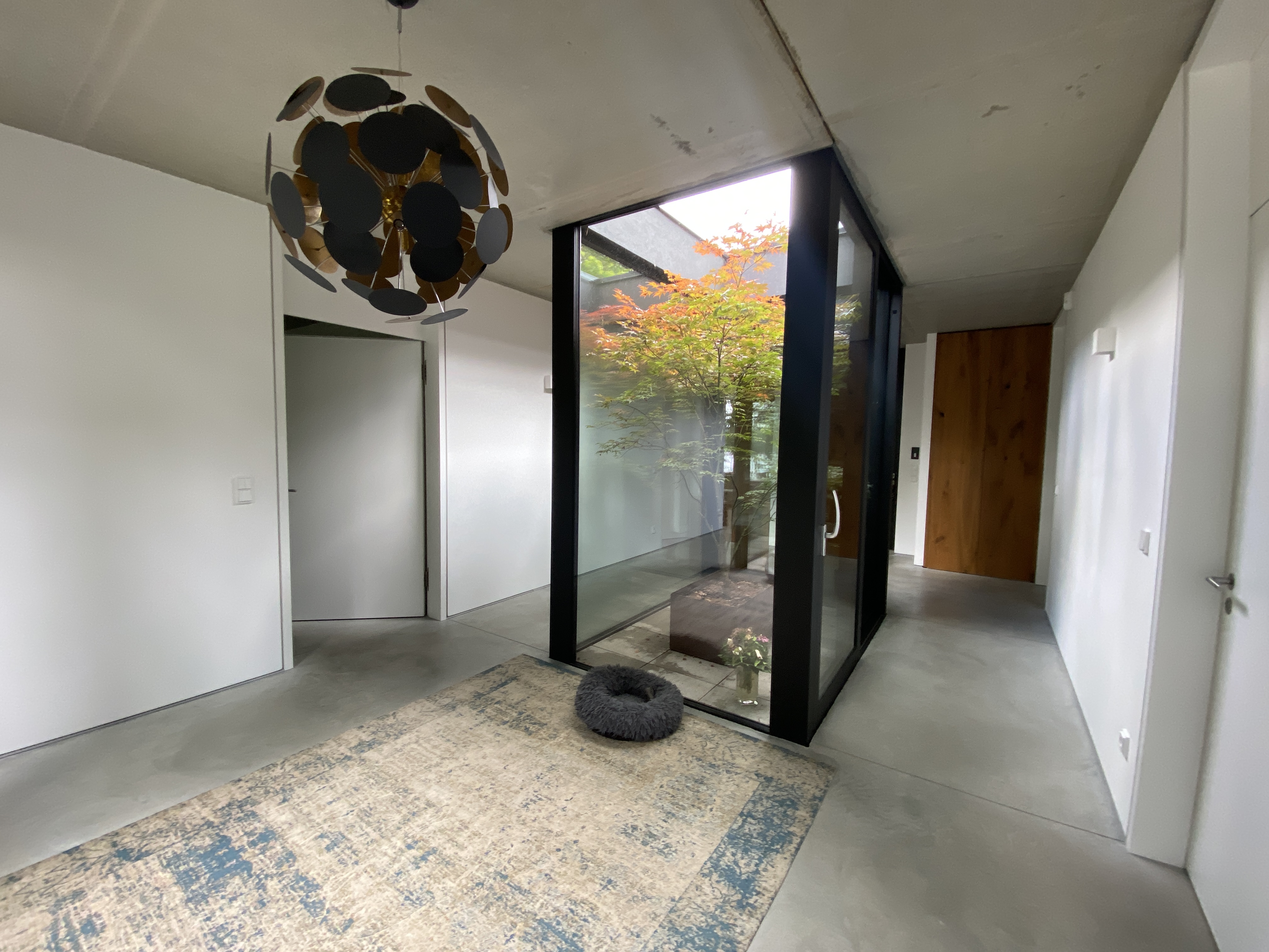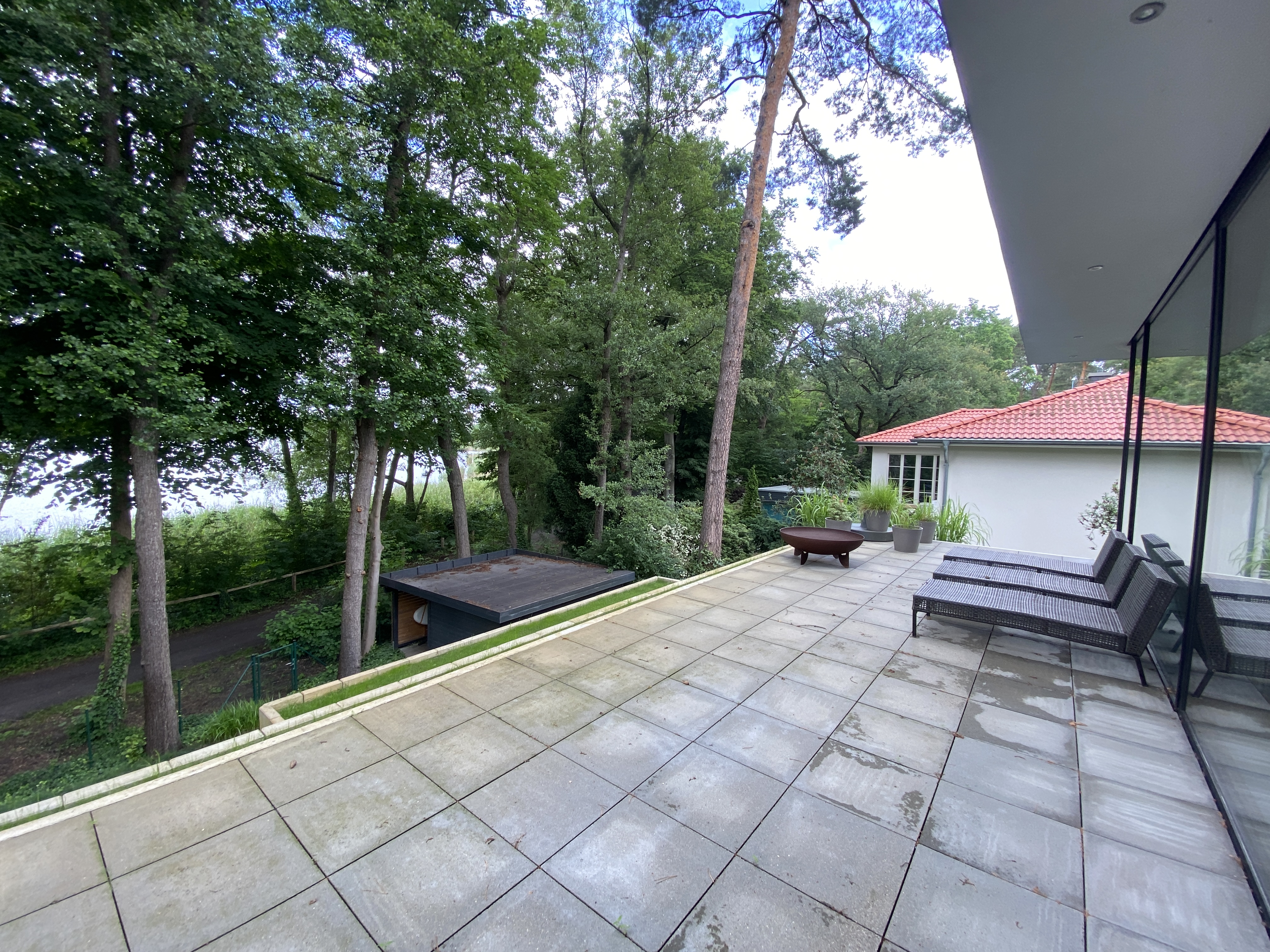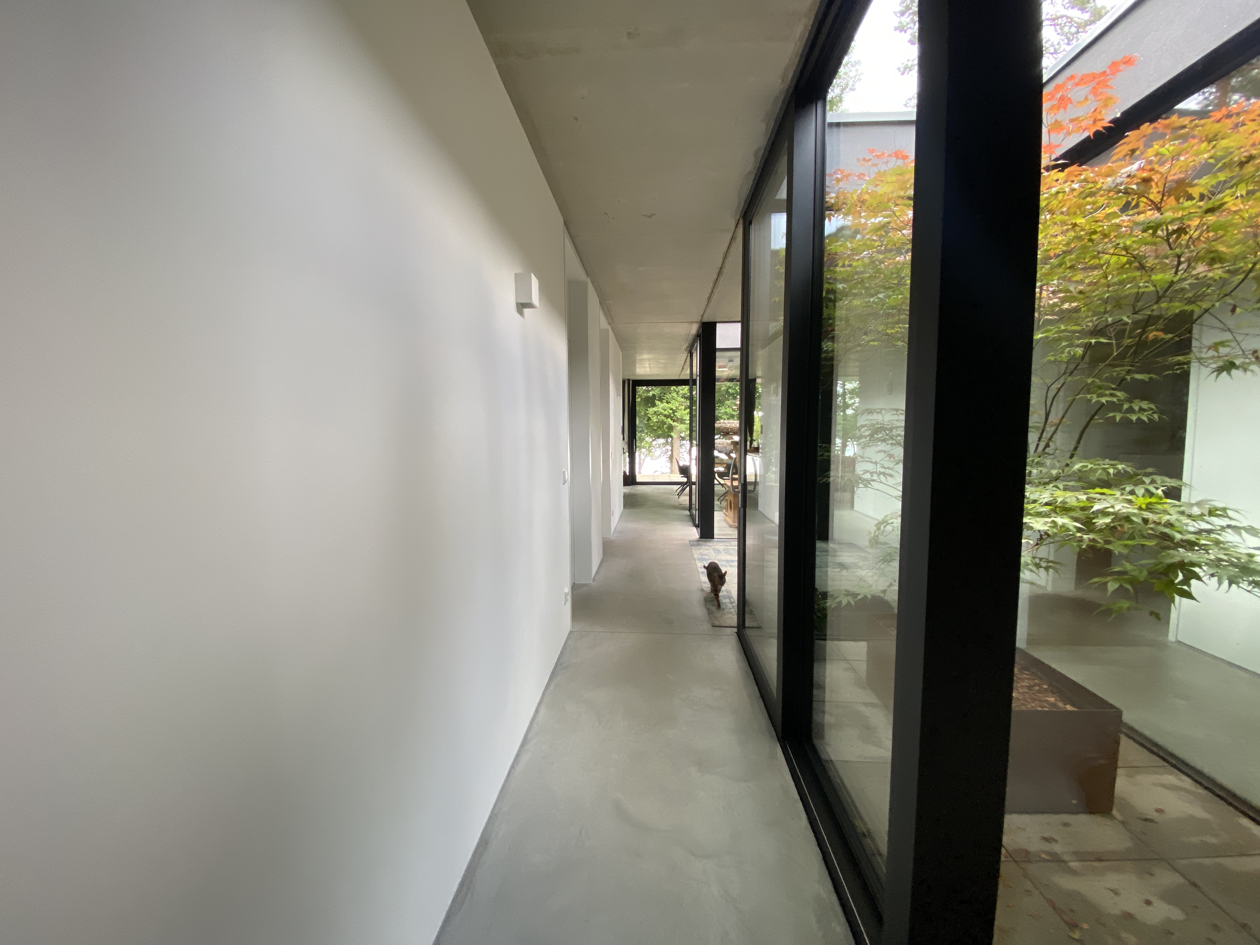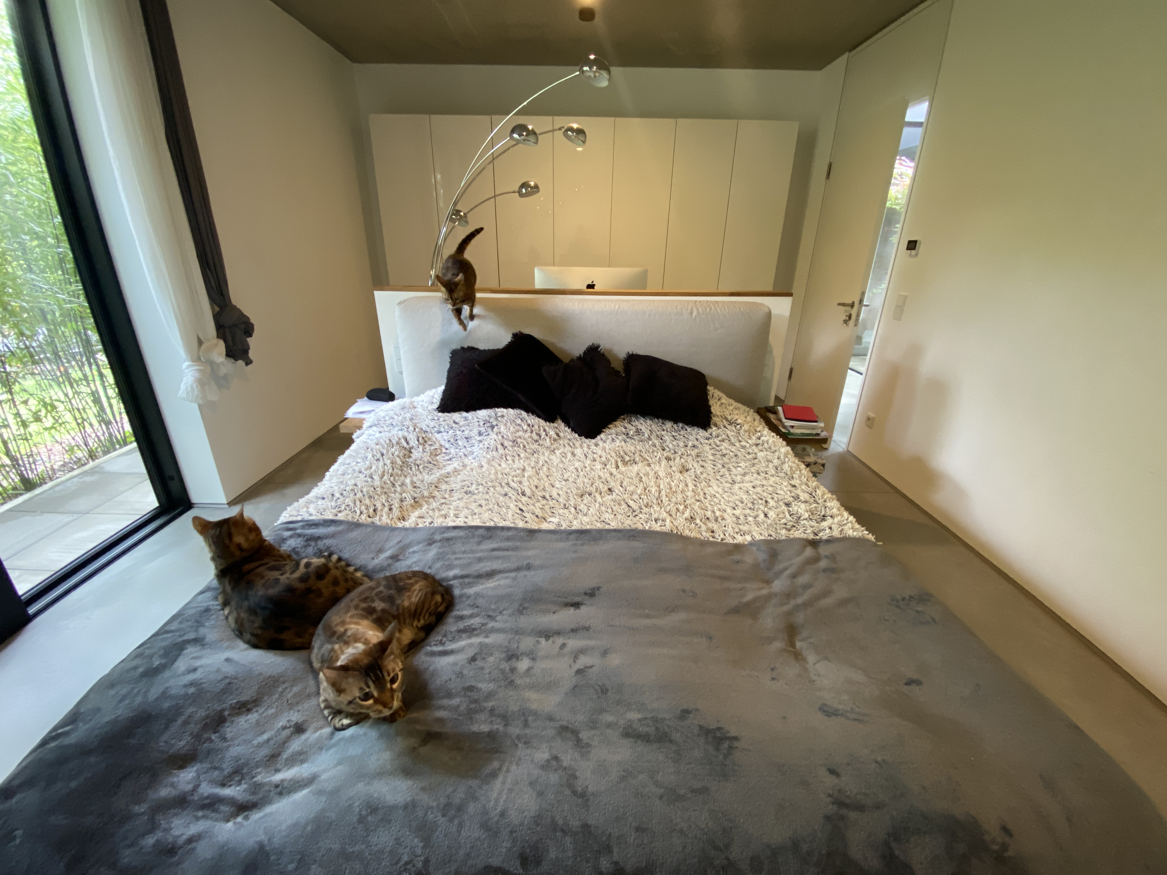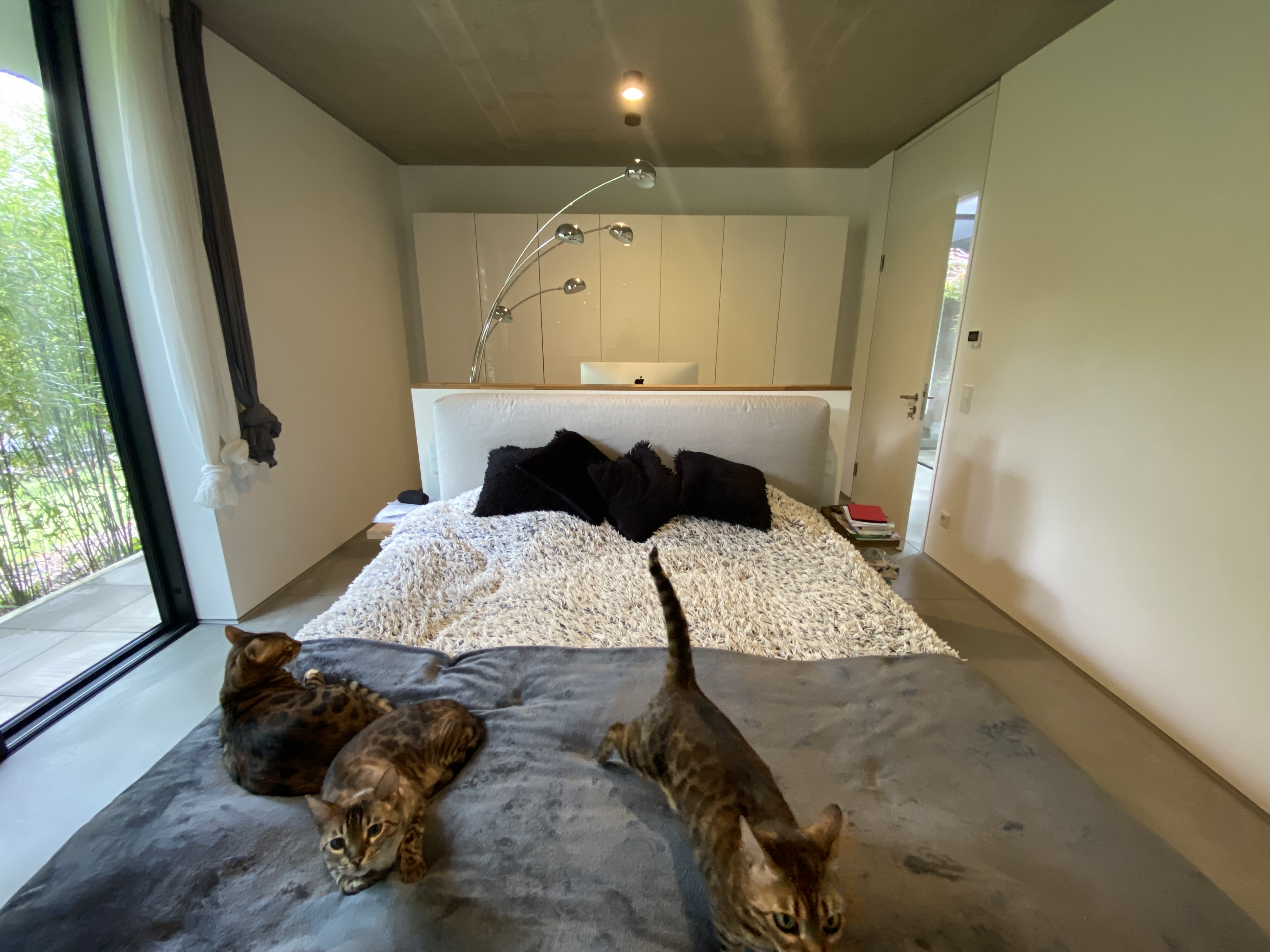 Nestled in a serene forest and bordered by a tranquil lake, this stunning modern home offers a perfect blend of natural beauty and architectural elegance. The house features expansive glass walls that provide unobstructed views of the lush greenery and silhouetted sunset over the lake, creating an environment of peace and calm. This home is designed with a modern minimalistic approach, integrating high-end finishes like polished wood, sleek kitchen appliances, and large, airy spaces that blend seamlessly with the outdoor surroundings.