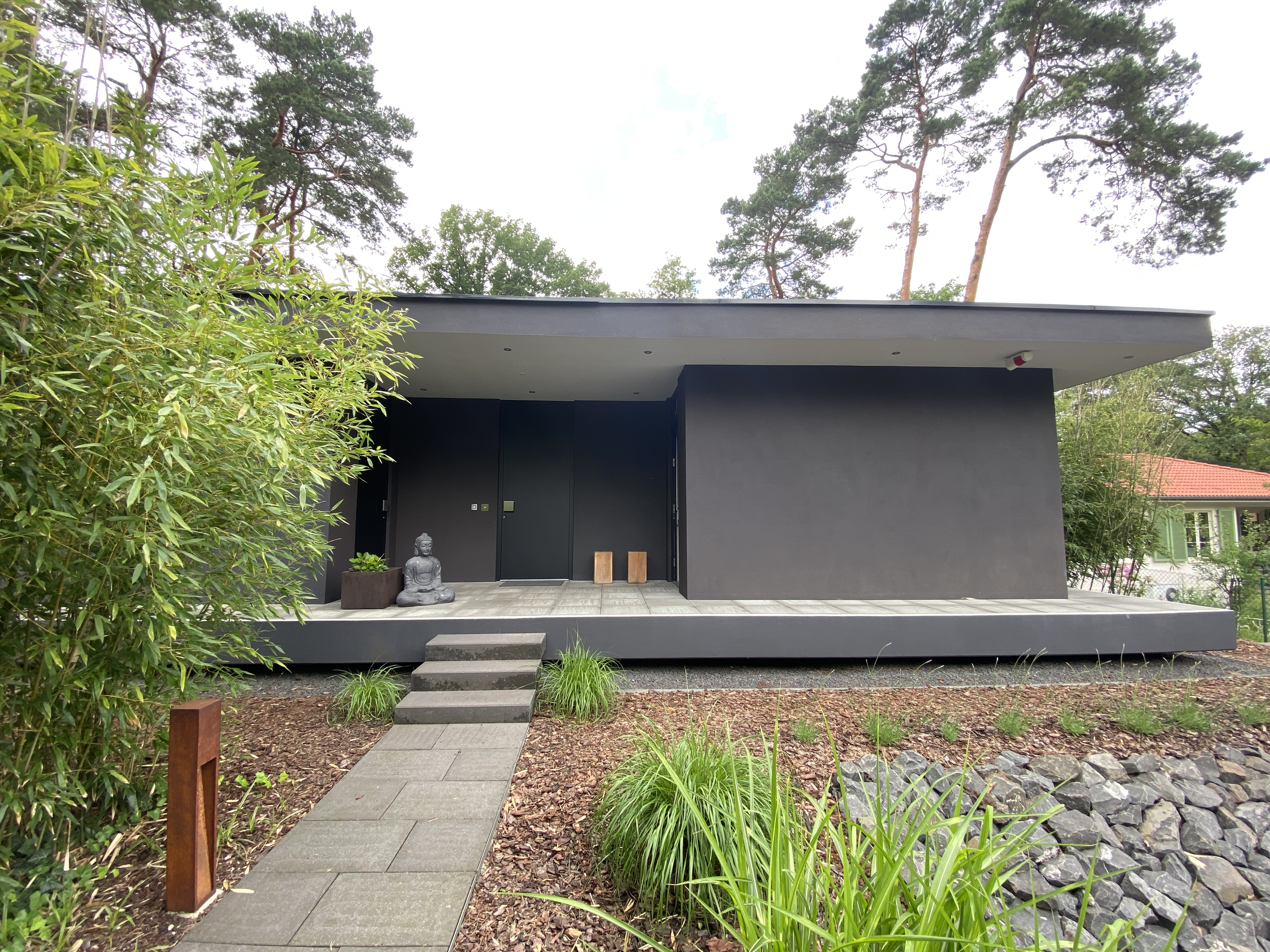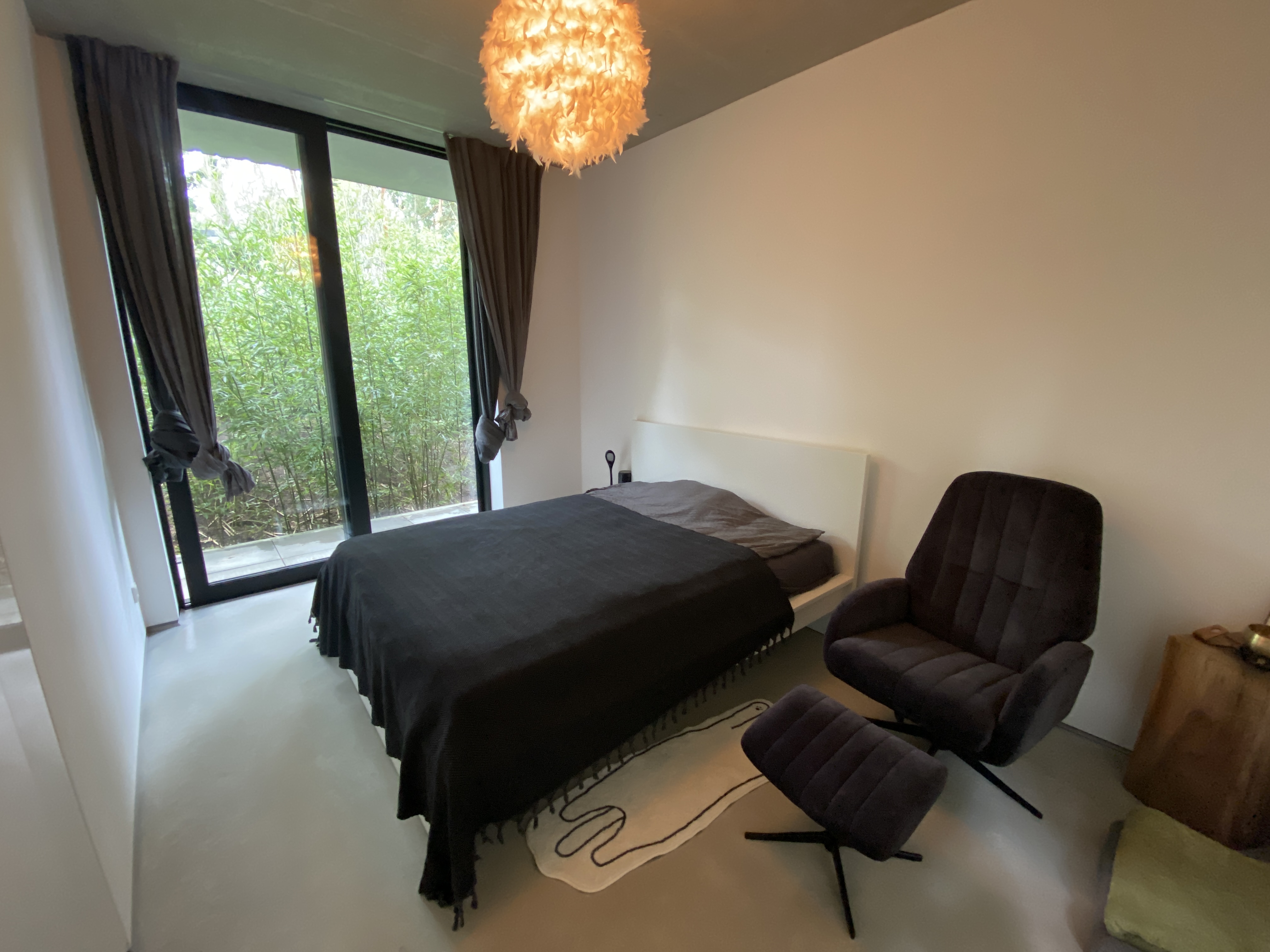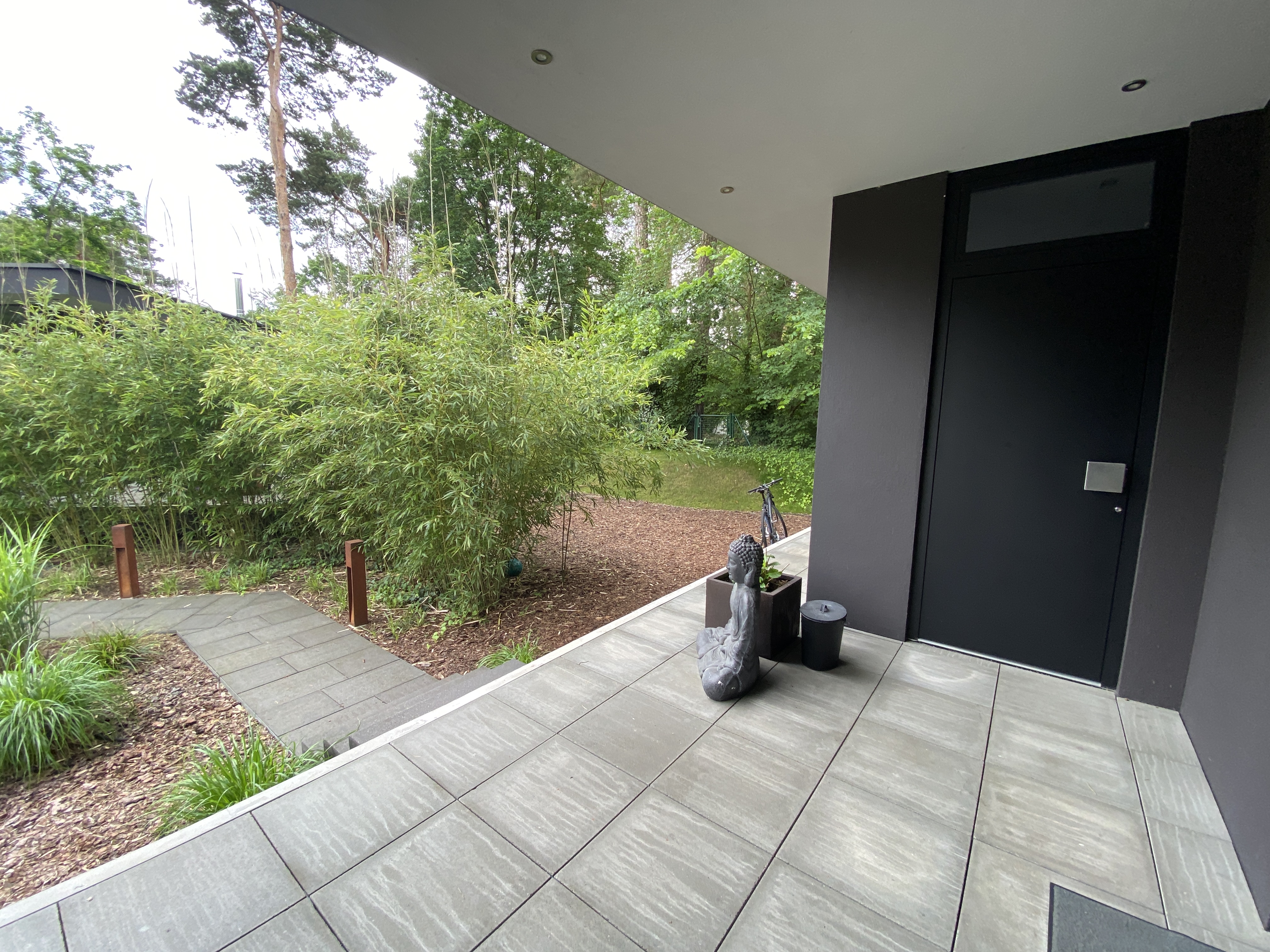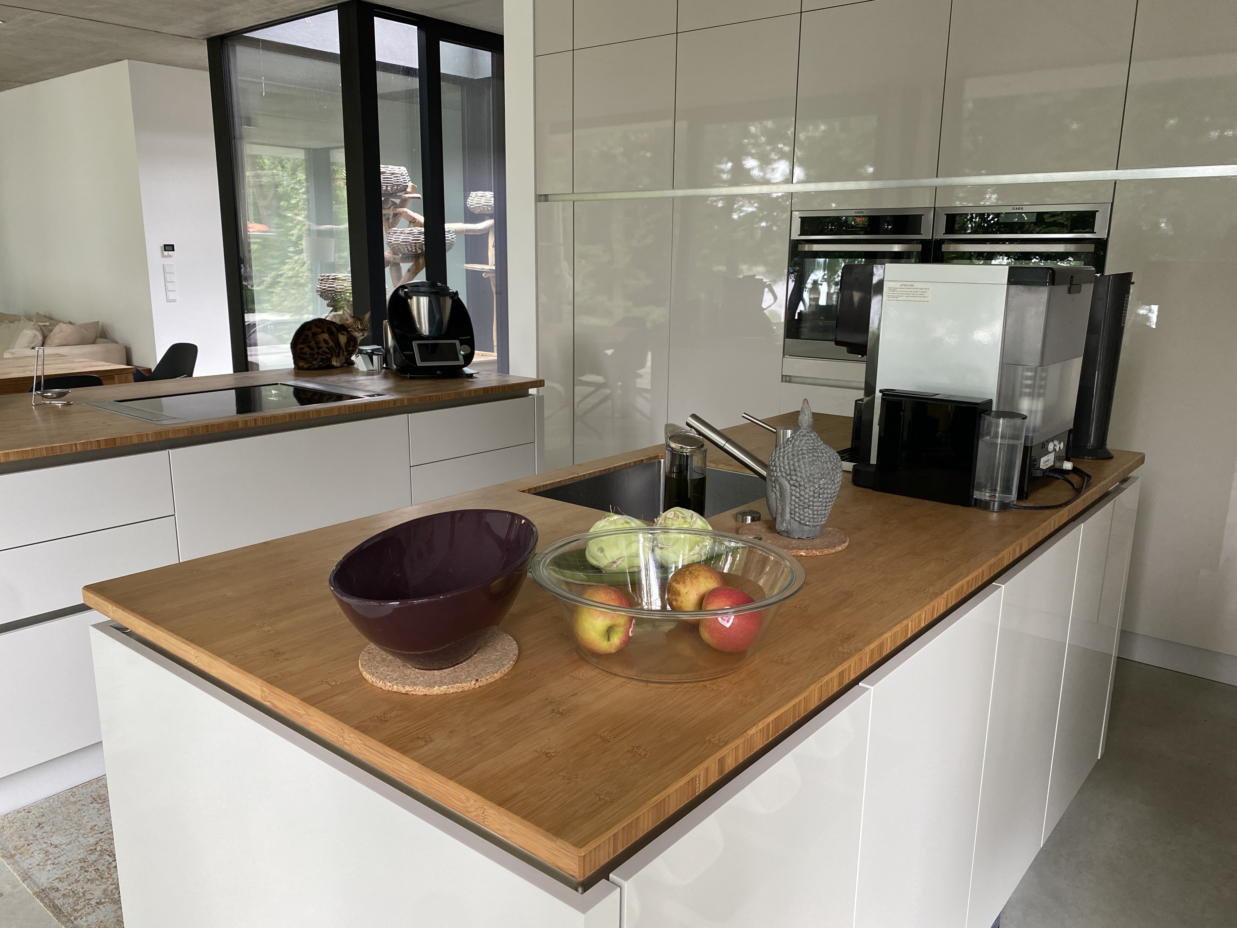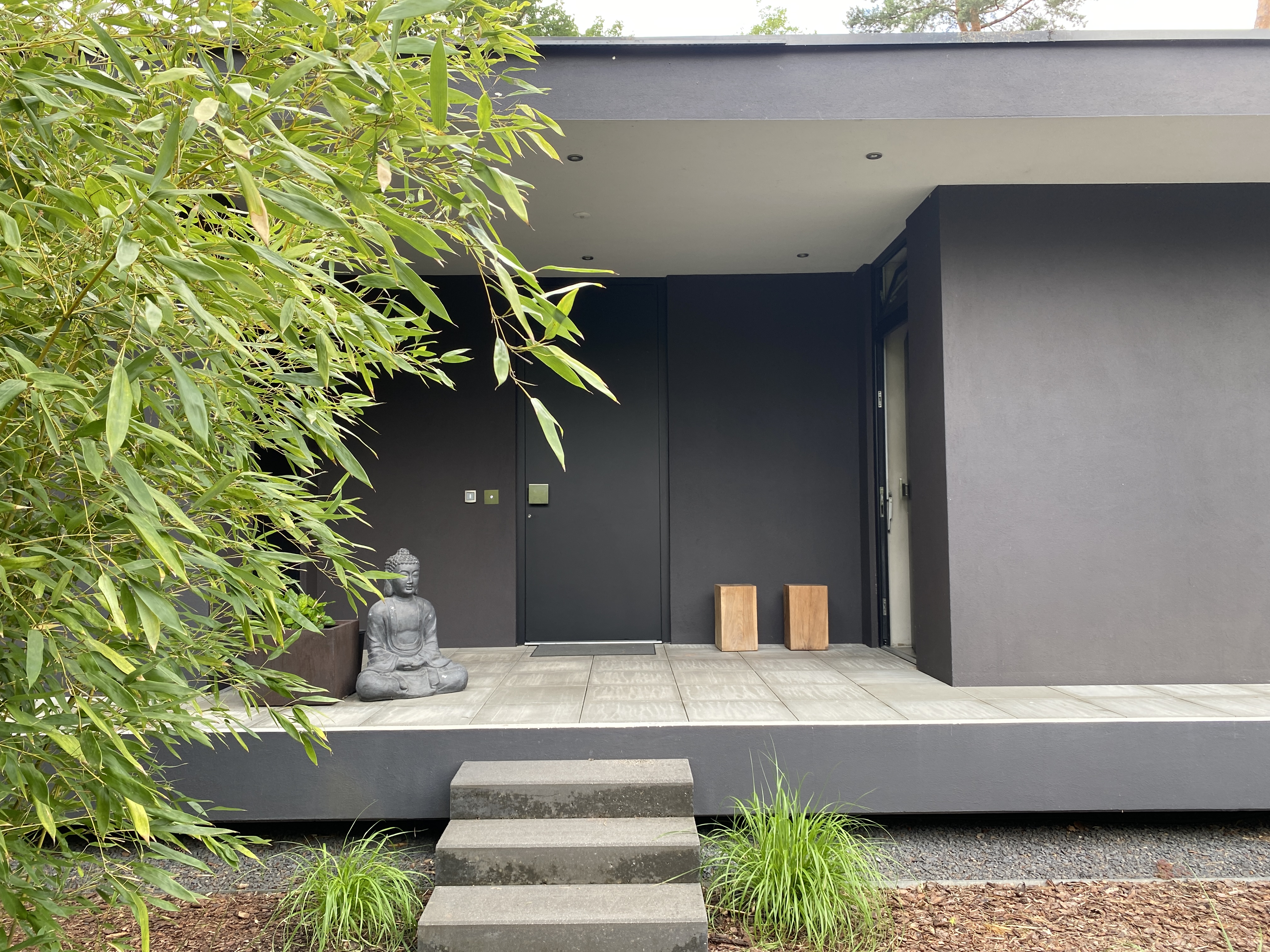 Nestled in a serene forest and bordered by a tranquil lake, this stunning modern home offers a perfect blend of natural beauty and architectural elegance. The house features expansive glass walls that provide unobstructed views of the lush greenery and silhouetted sunset over the lake, creating an environment of peace and calm. This home is designed with a modern minimalistic approach, integrating high-end finishes like polished wood, sleek kitchen appliances, and large, airy spaces that blend seamlessly with the outdoor surroundings.
