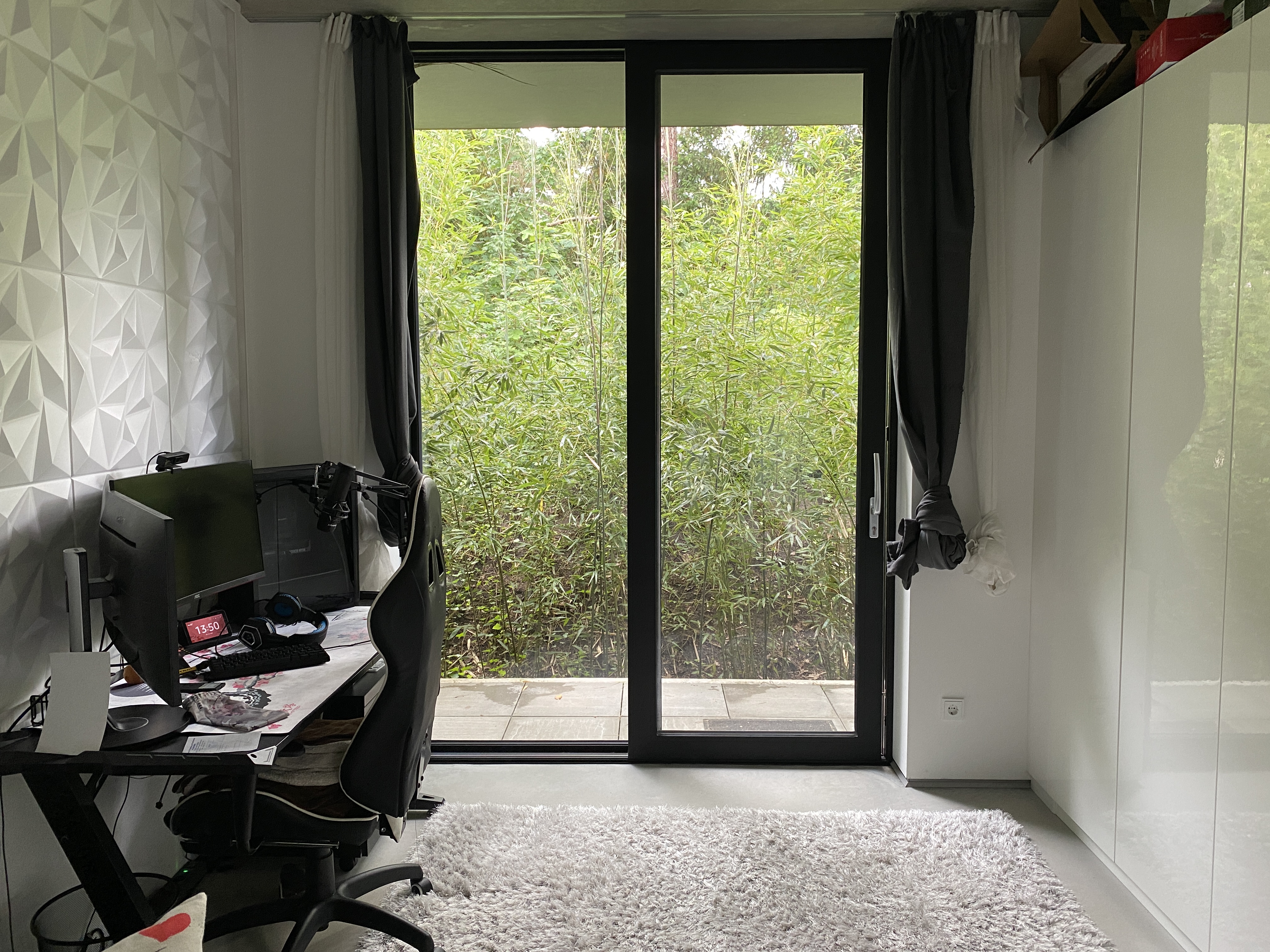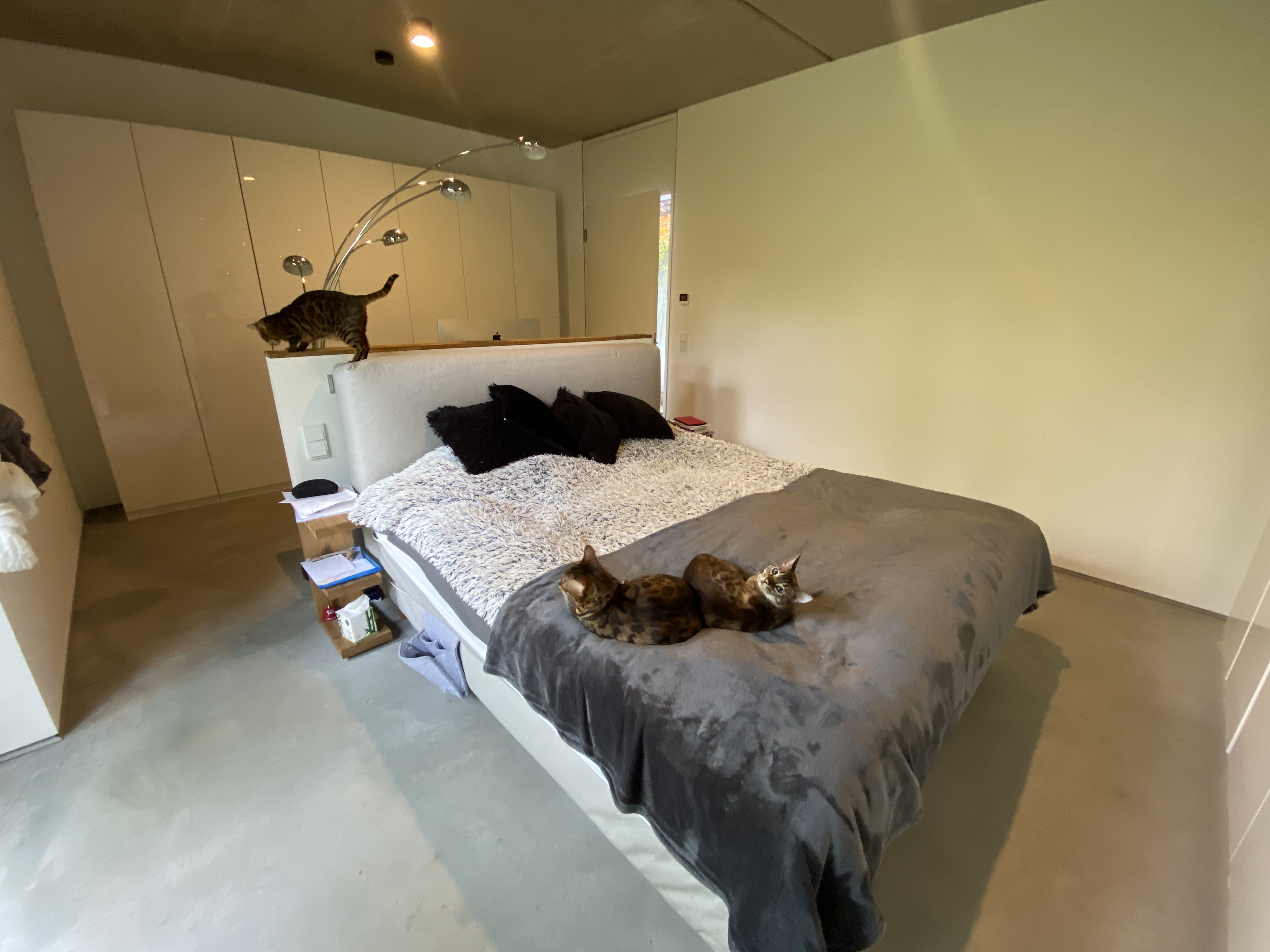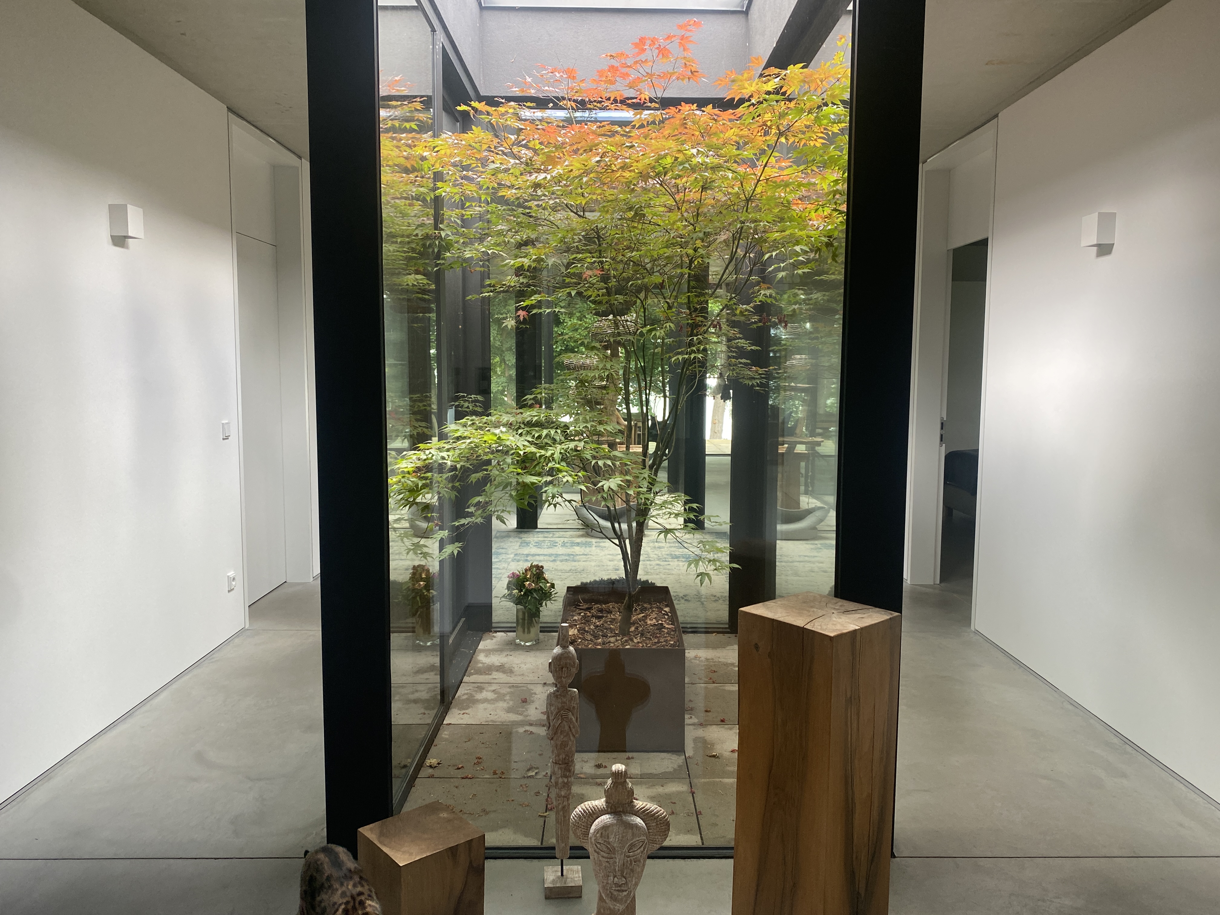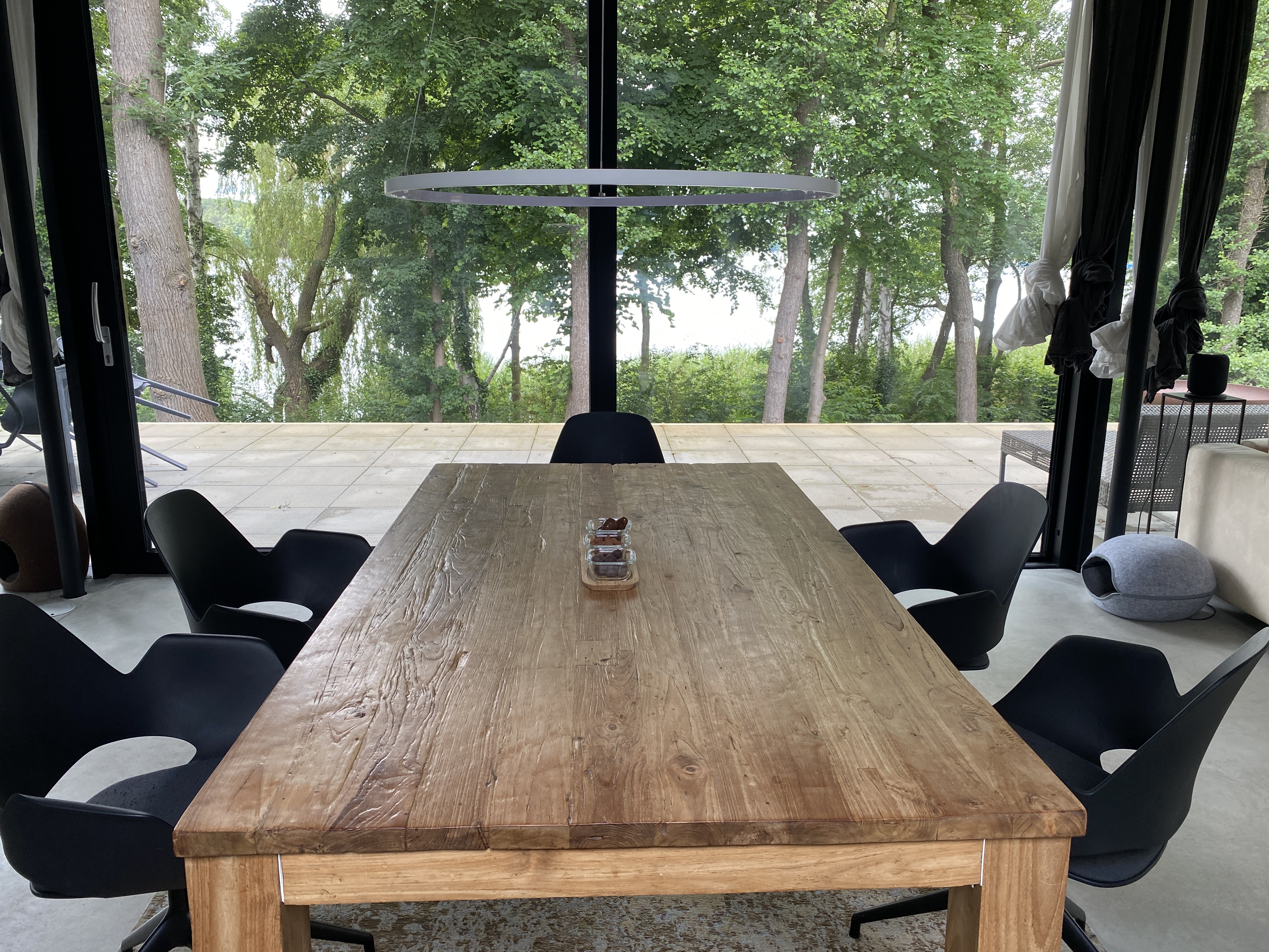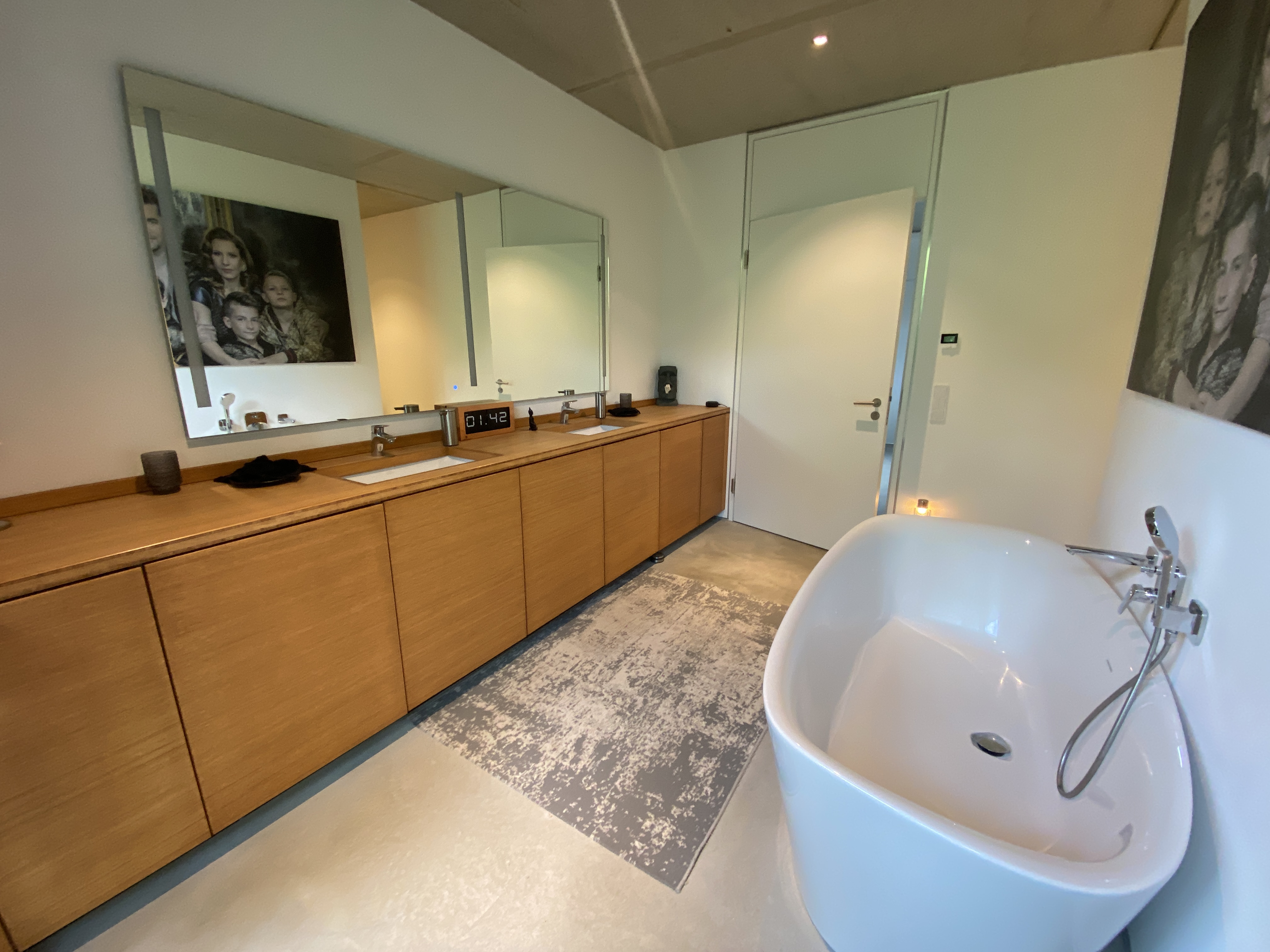 Nestled in a serene forest and bordered by a tranquil lake, this stunning modern home offers a perfect blend of natural beauty and architectural elegance. The house features expansive glass walls that provide unobstructed views of the lush greenery and silhouetted sunset over the lake, creating an environment of peace and calm. This home is designed with a modern minimalistic approach, integrating high-end finishes like polished wood, sleek kitchen appliances, and large, airy spaces that blend seamlessly with the outdoor surroundings.