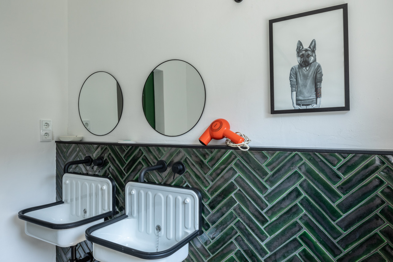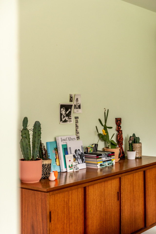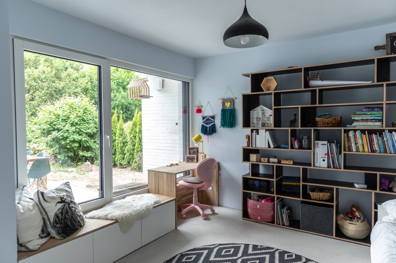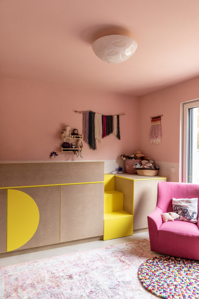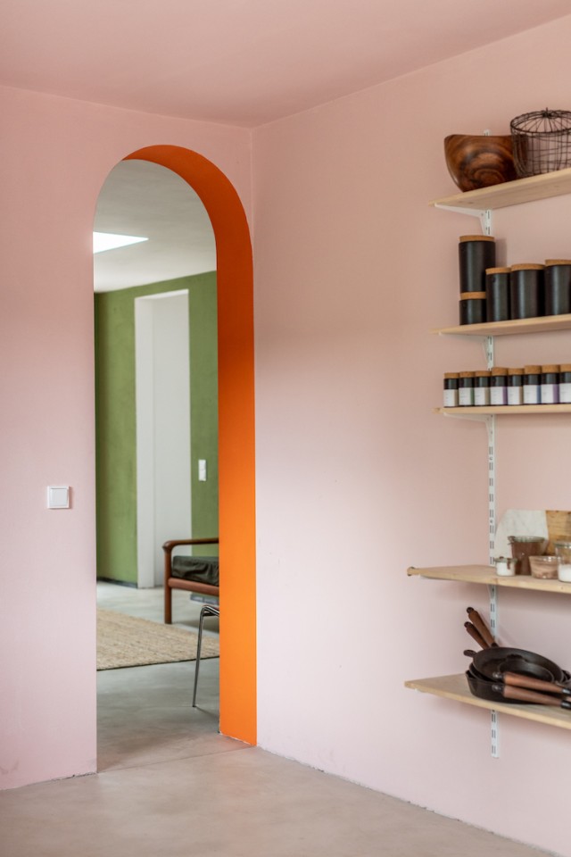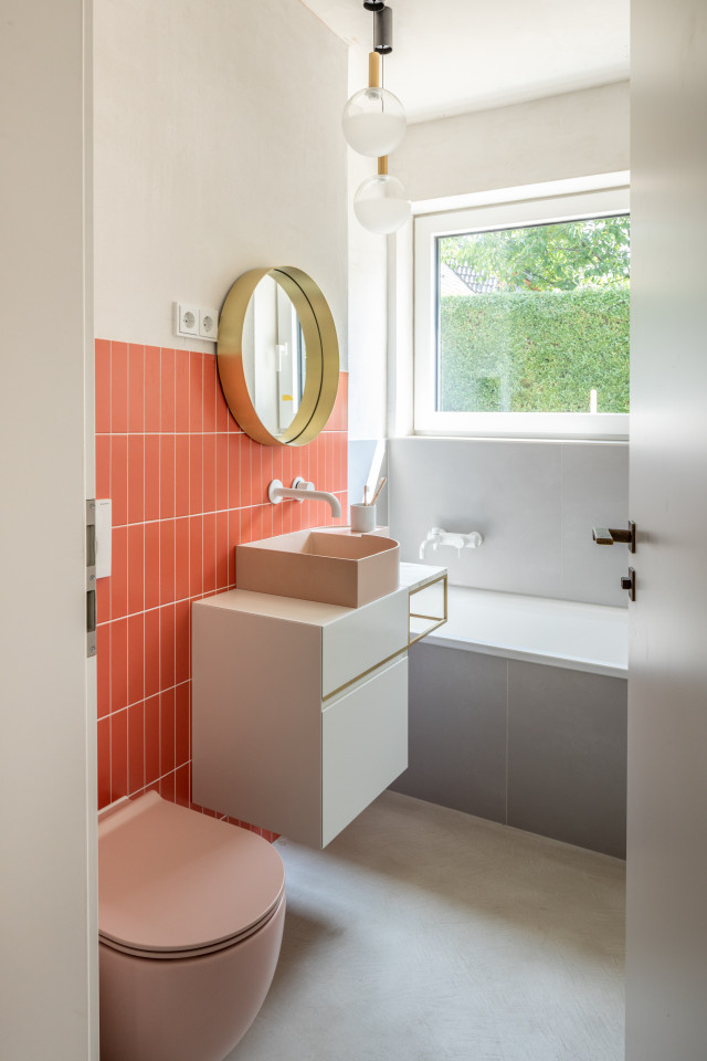 This happy, colorful bungalow was built in 1969 and then fully renovated by their new owners in 2020. While staying true to the late 60s style in some details of the house, the focus was also to create a sustainable living space with a healthy air climate. The bungalow is located in the beautiful Villenviertel of Bergedorf, Hamburg. The garden is 770sqm and fully enclosed by trees and plants. The large terrace is facing South, while the smaller terrace is facing North. Besides an open living, eating, and kitchen area, the house has 4 bedrooms and 2 bathrooms. A small little Gartenlaube (garden hut) is furnished as an office.