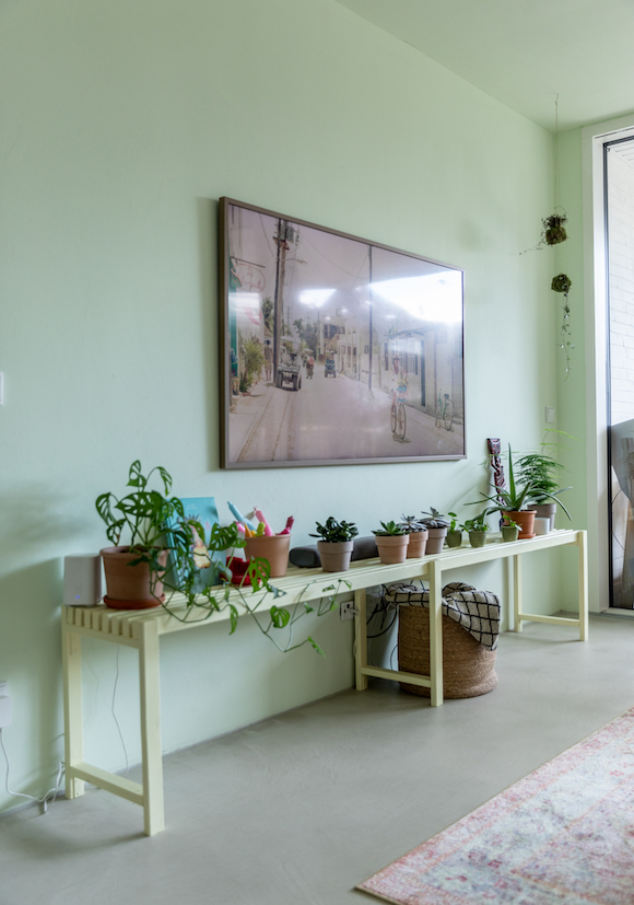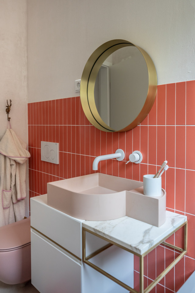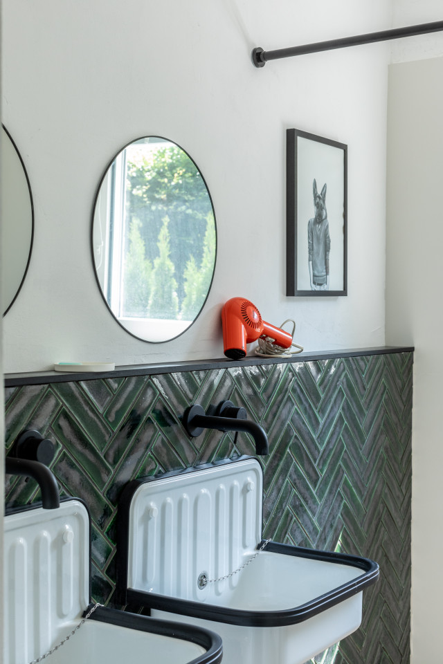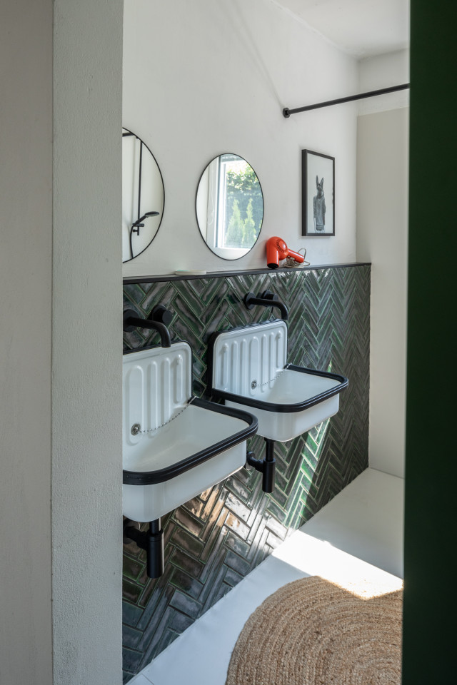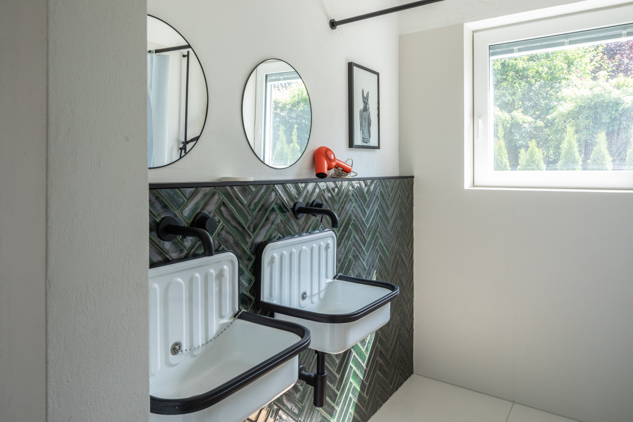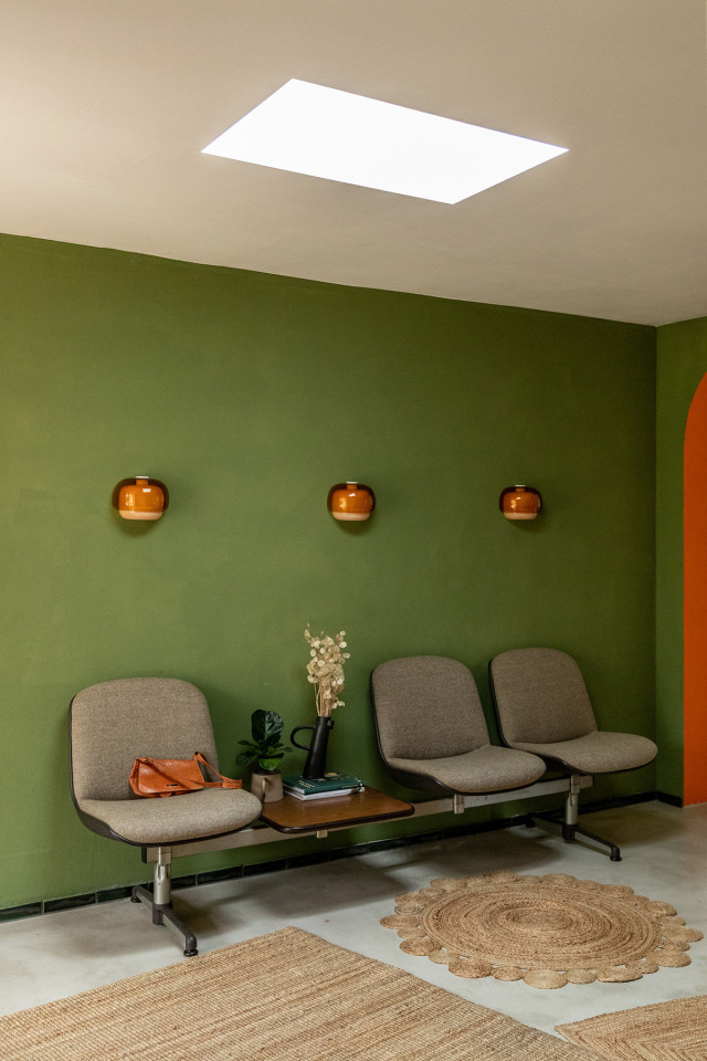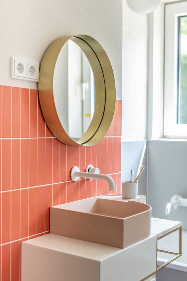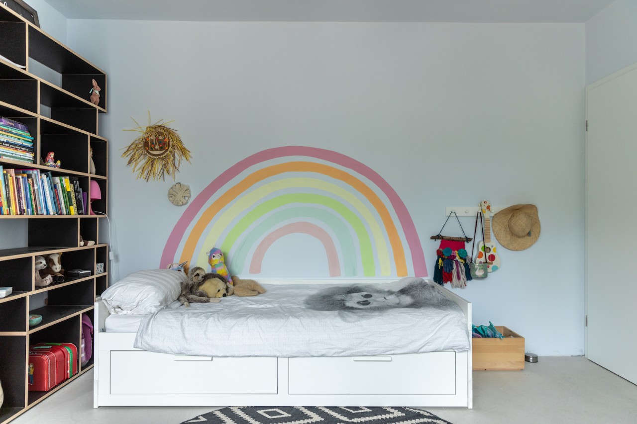 This happy, colorful bungalow was built in 1969 and then fully renovated by their new owners in 2020. While staying true to the late 60s style in some details of the house, the focus was also to create a sustainable living space with a healthy air climate. The bungalow is located in the beautiful Villenviertel of Bergedorf, Hamburg. The garden is 770sqm and fully enclosed by trees and plants. The large terrace is facing South, while the smaller terrace is facing North. Besides an open living, eating, and kitchen area, the house has 4 bedrooms and 2 bathrooms. A small little Gartenlaube (garden hut) is furnished as an office.