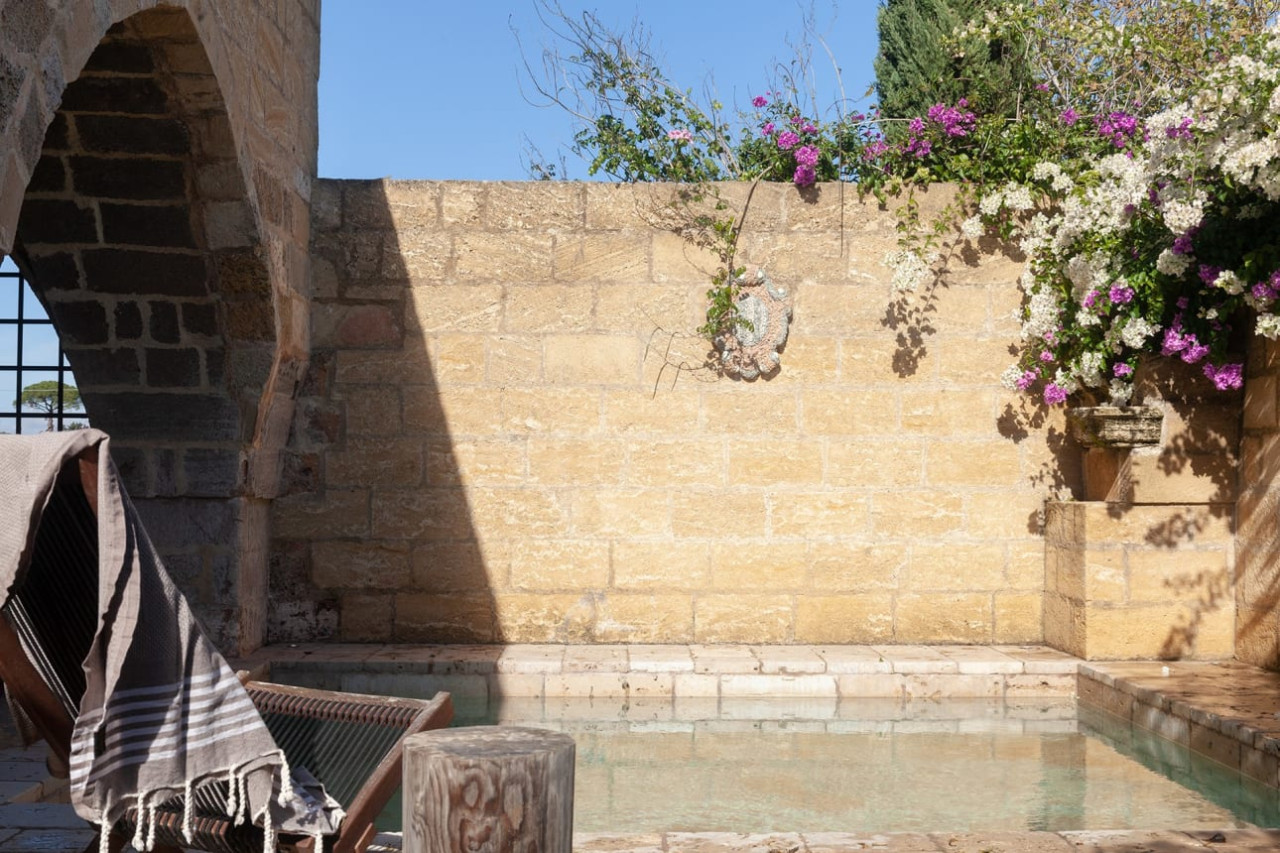 Located among olive trees and sun-soaked stone courtyards, the property features beautifully restored historic architecture, complete with vaulted ceilings, arched doorways, and limestone walls. The interiors are decorated with curated antique furnishings, handwoven textiles, and artistic accents that reflect the rich cultural heritage of Southern Italy.