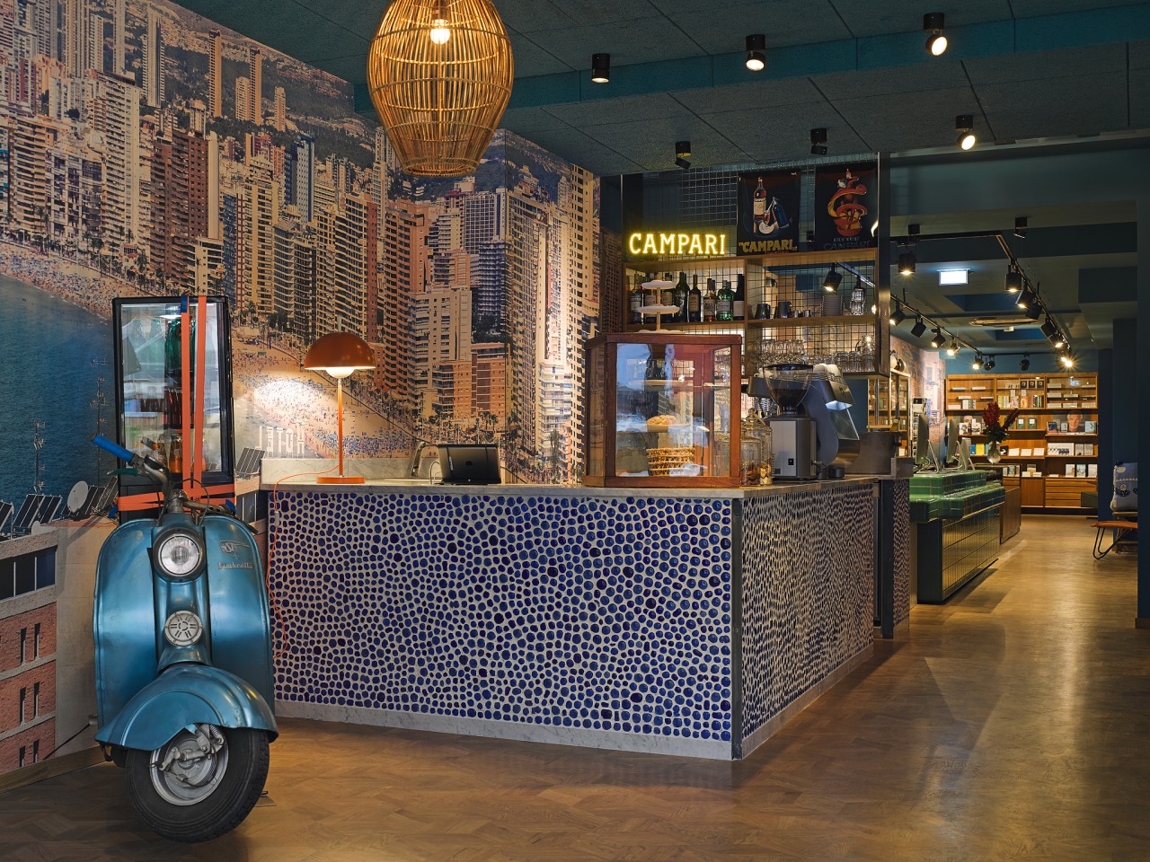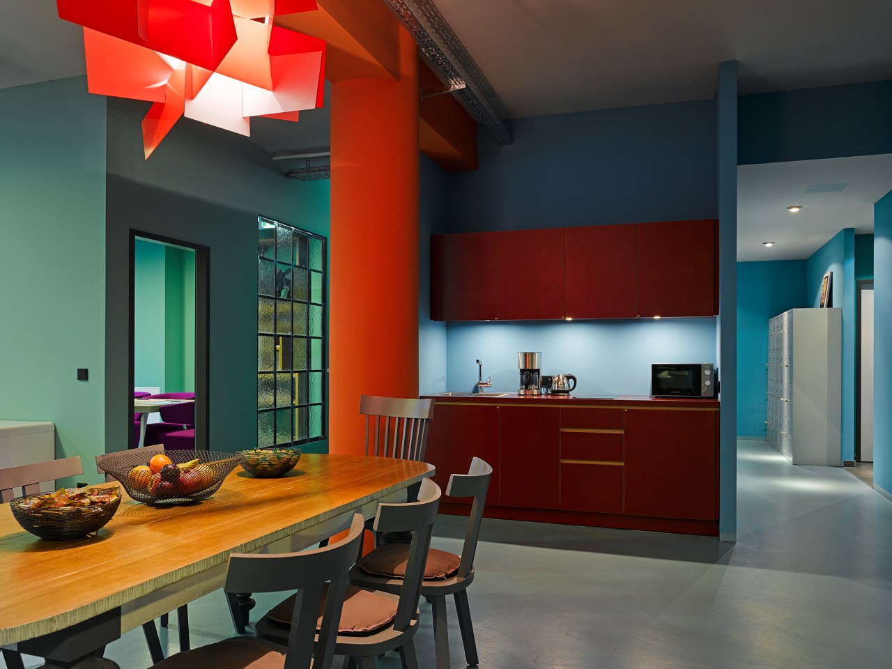 At the BAR SHUKA restaurant, Oriental dishes are brought together on the plate. People from all over the world tell their stories in the Bollywood room, the Italian Caffé Bomba and the Japanese SHUKA bar. The shared workspace in Studio 54 can be used for longer or shorter stays.