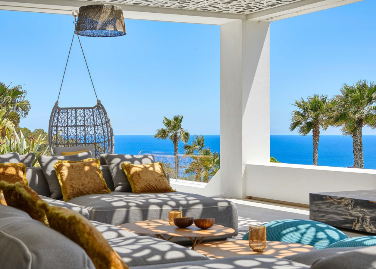 The Ibiza Kiss Villa is a splendid estate located 130m above sea level , offering 100% privacy and 180o panoramic views with nonetheless 5 minutes drive to Ibiza Town and famous Marina Botafoc. This state of the art eye elegant villa is located in the sought-after area of S ́Estanyol / Jesus, only 5 minutes away from Ibiza town and the harbour of Marina Botafoc. It offers breathtaking 300 ° views of the sea, Ibiza town, the